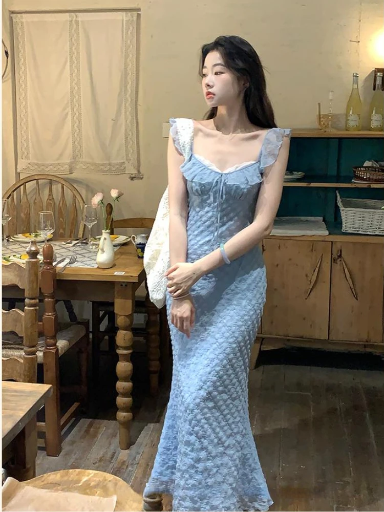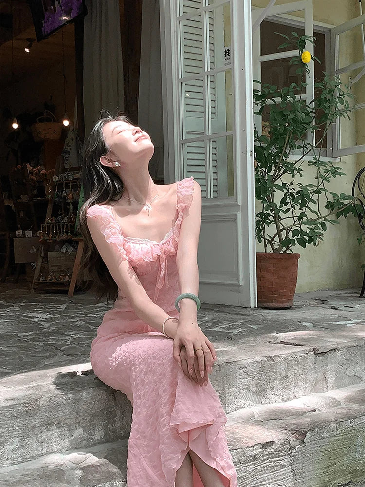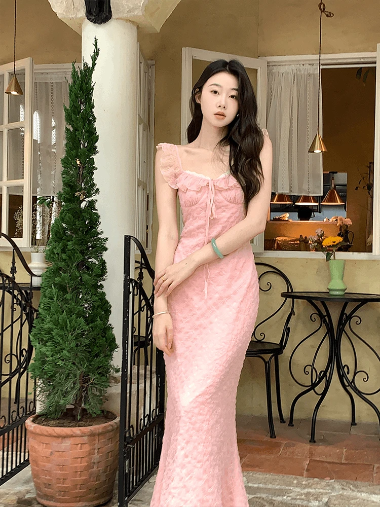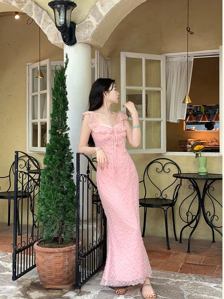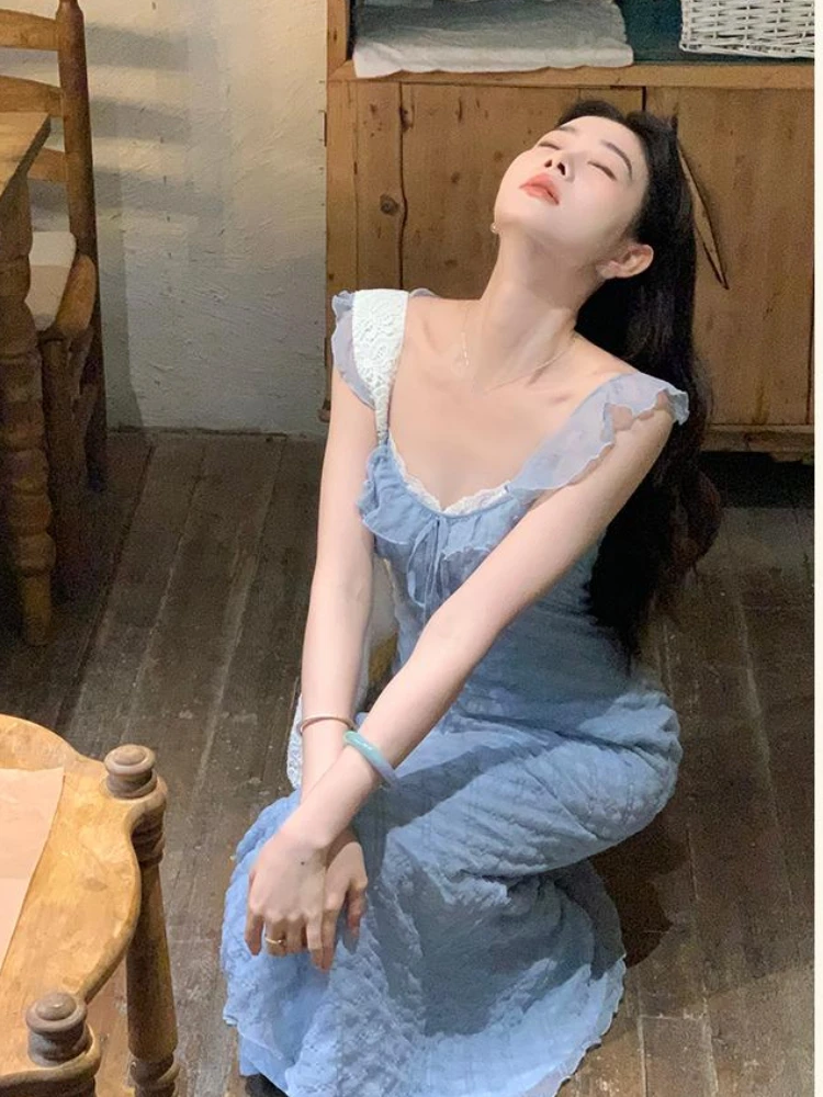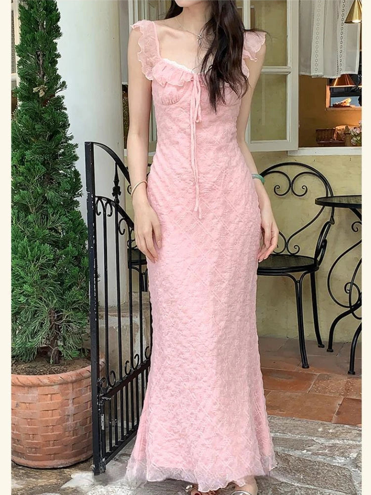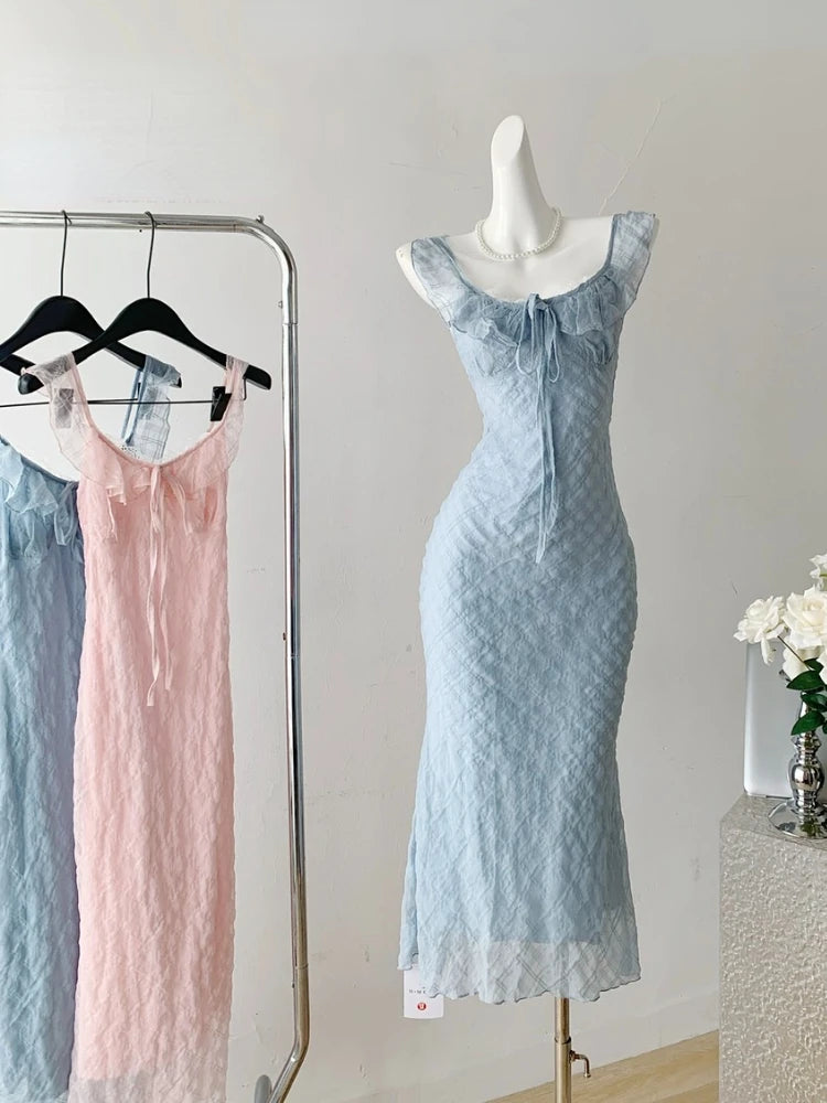 French Elegant Midi Dress Women Casual Evening Party Beach Dress Korean Bodycon Fashion Chic 2000s Vintage Y2k Clothing Outwear