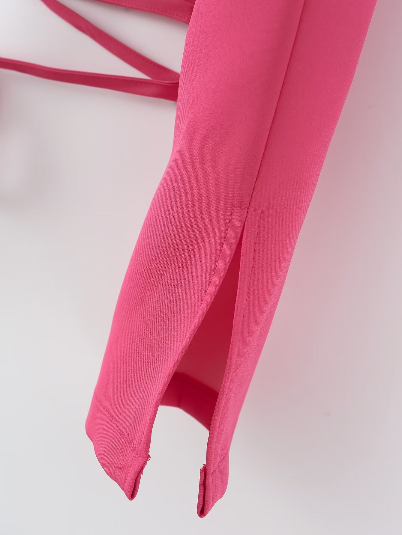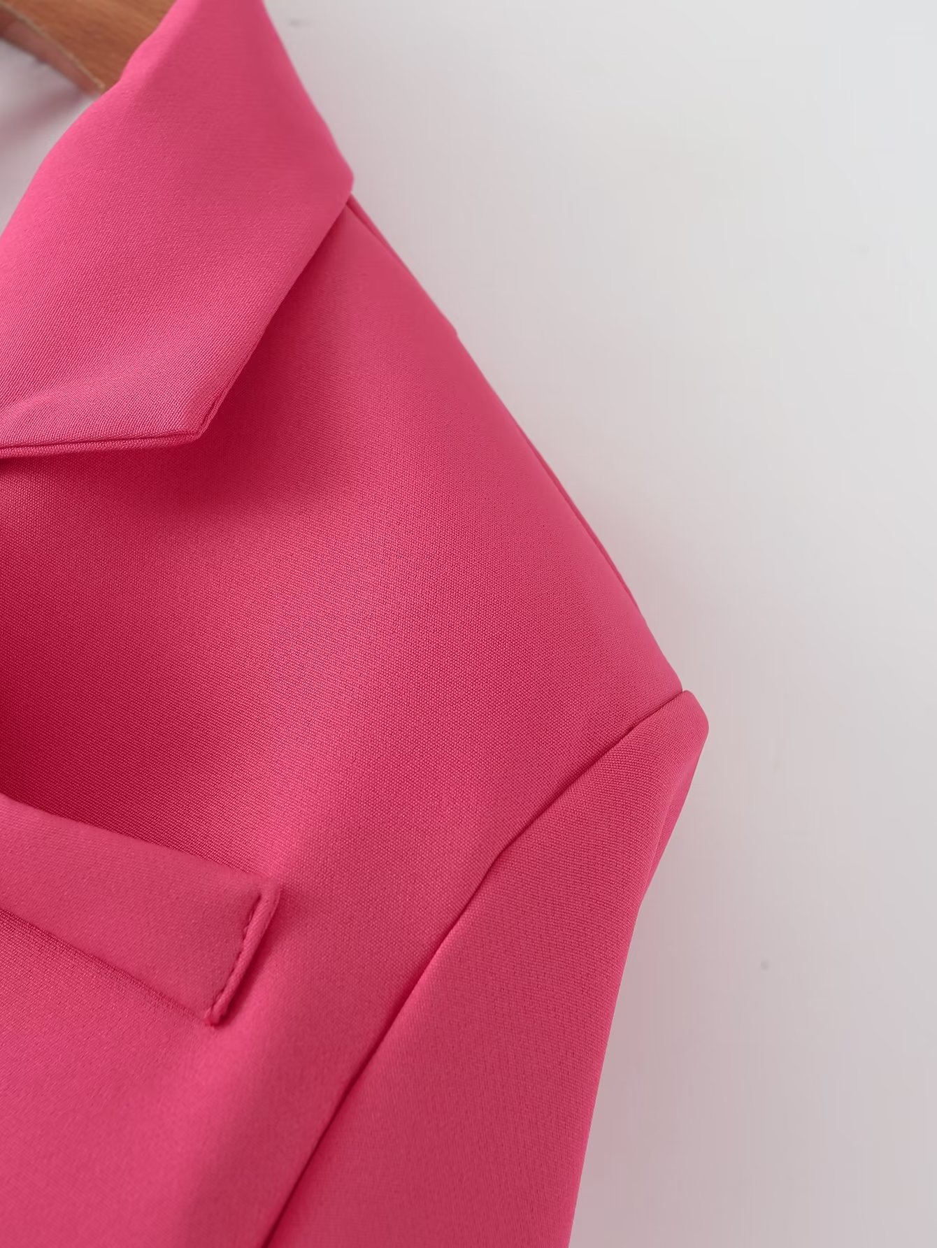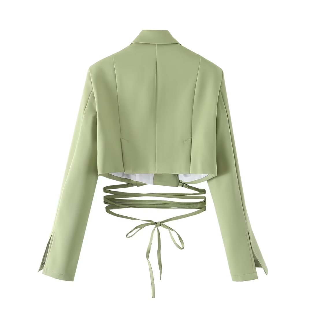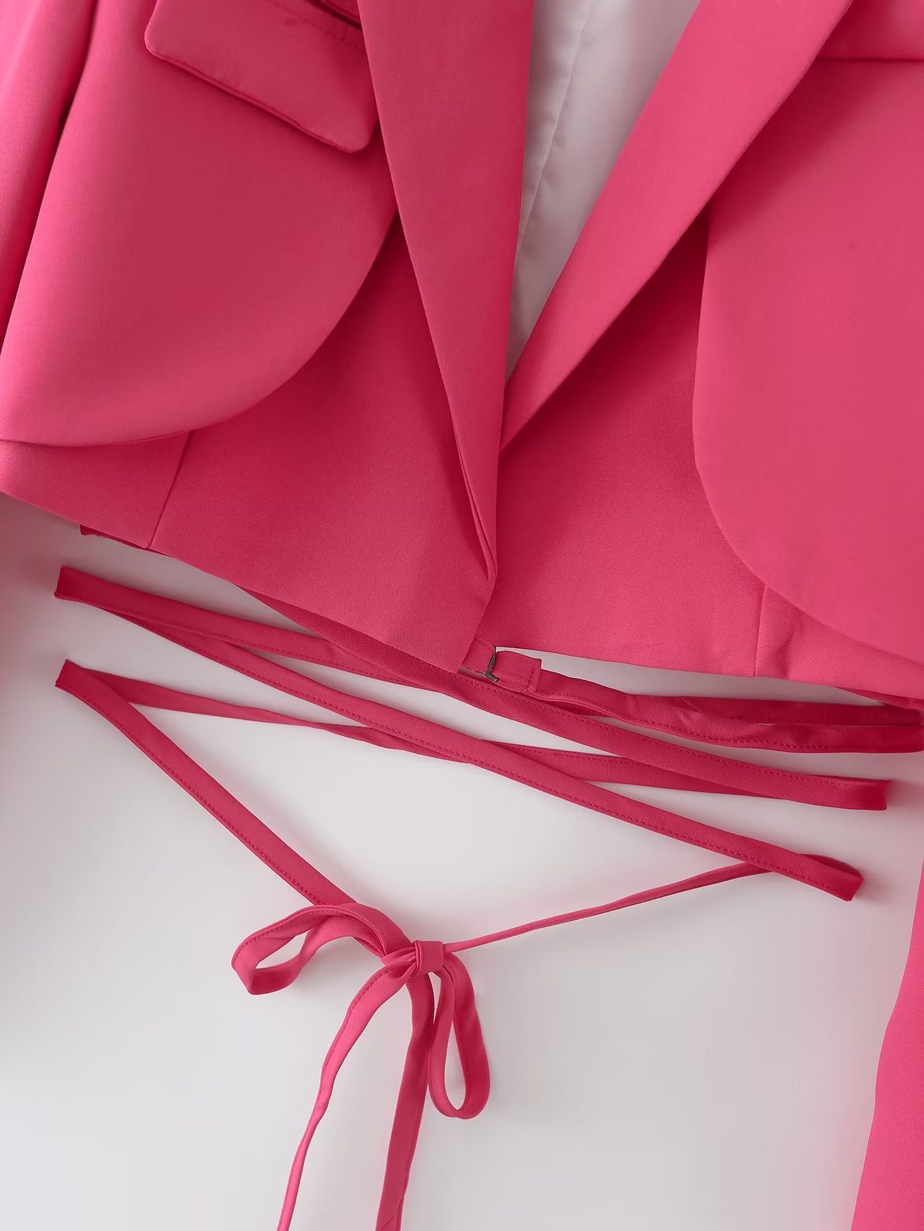 Gray Double Layer Bandage Slim Blazer Desigual Women Long Sleeve Pocket Short Jacket Female Outwear Crop Tops