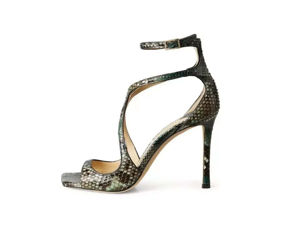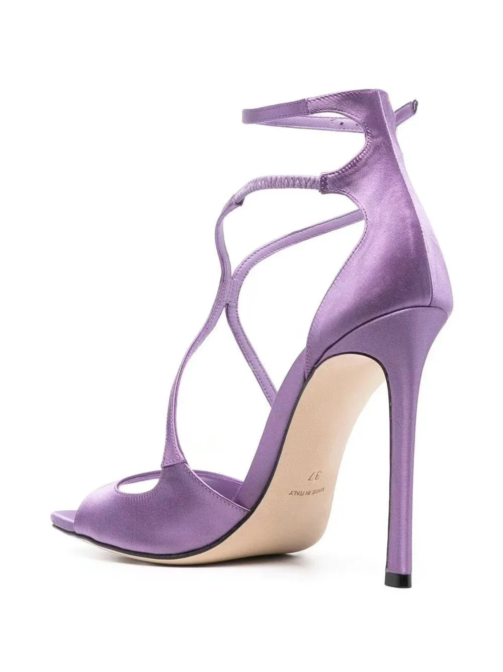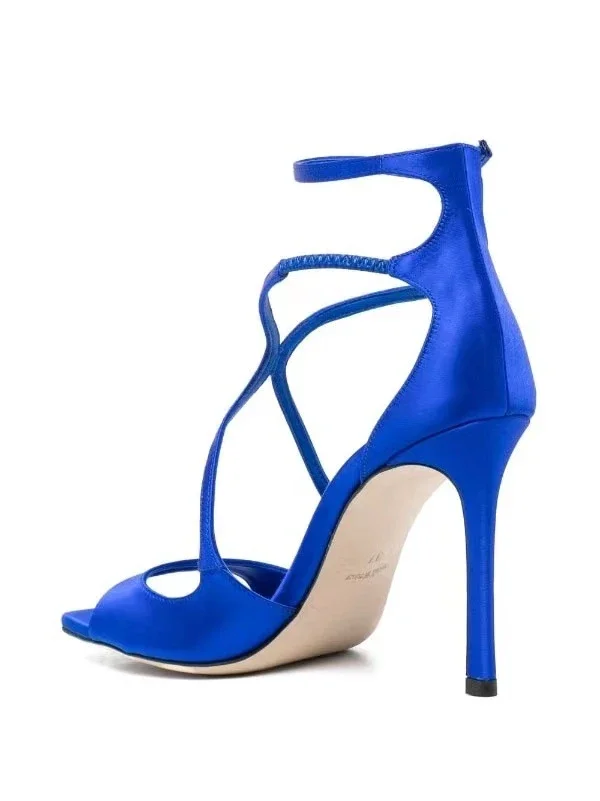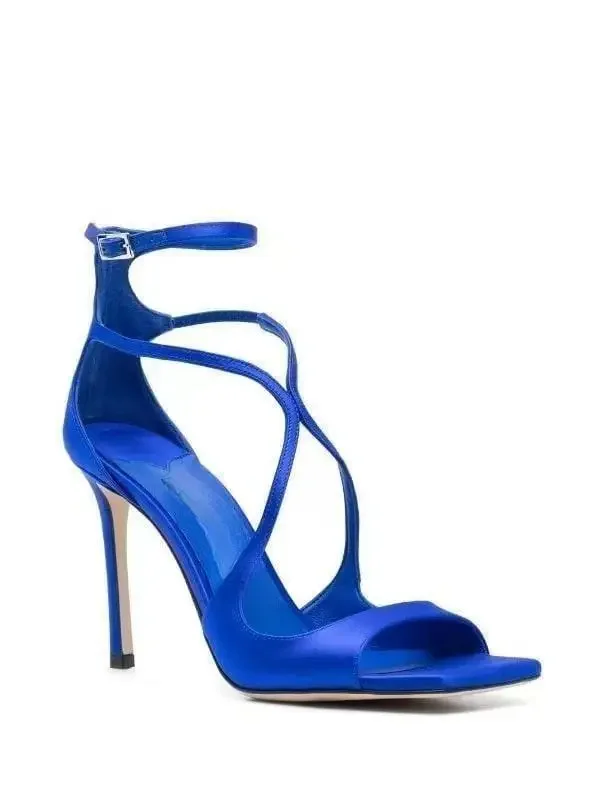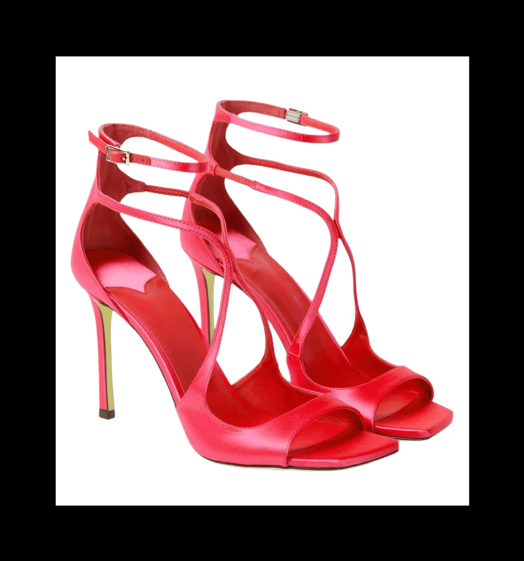 Kylethomasw High-quality Hollow Slim High Heel Fish Mouth Sandals, Women's Silk Buckle Strap Sexy Runway Shoes