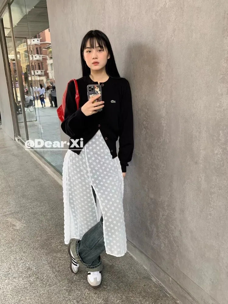 KYLETHOMASW - Loose Thin Dress Floral Embroidery Perspective Skirt Mid-length Lace Halter Dresses Korean Fashion Vestidos Para Mujer