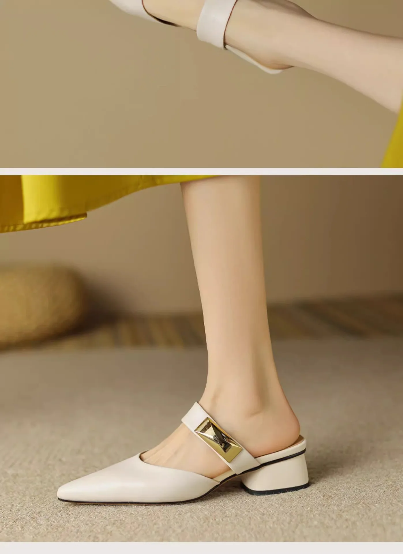 Kylethomasw Luxury Pointed Metal Decorate Women's Muller Shoes Designer Platform Casual Ladies Half Slippers Fashion High Heel Woman Sandals