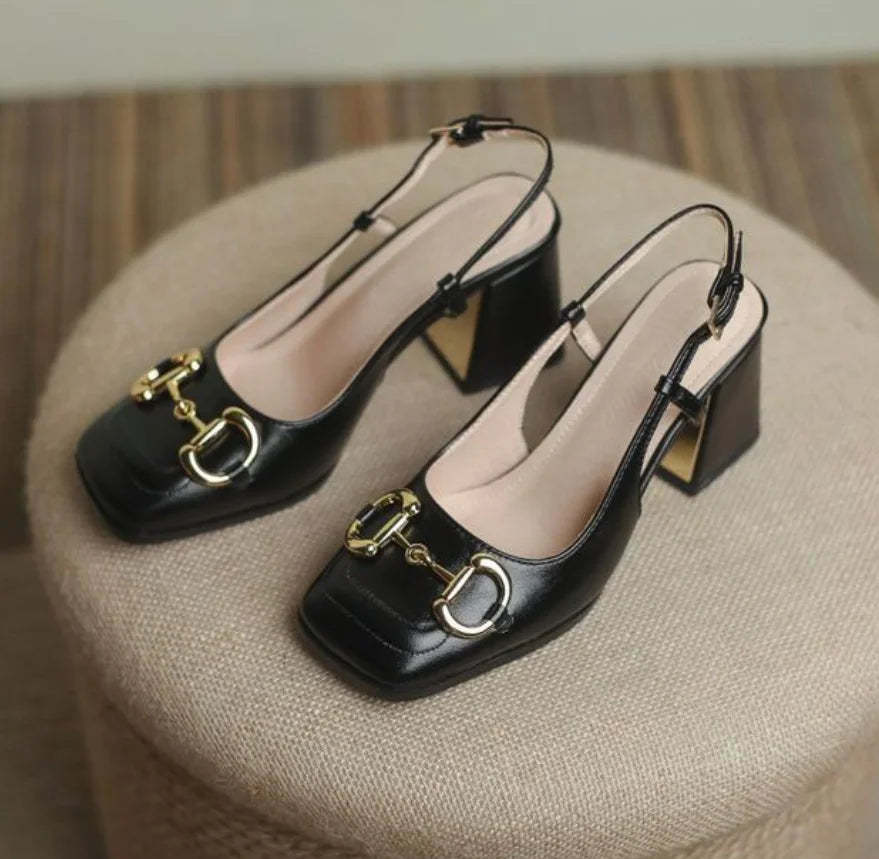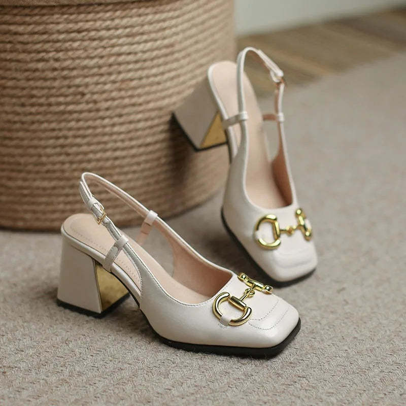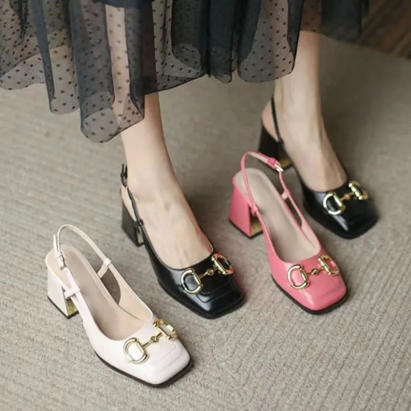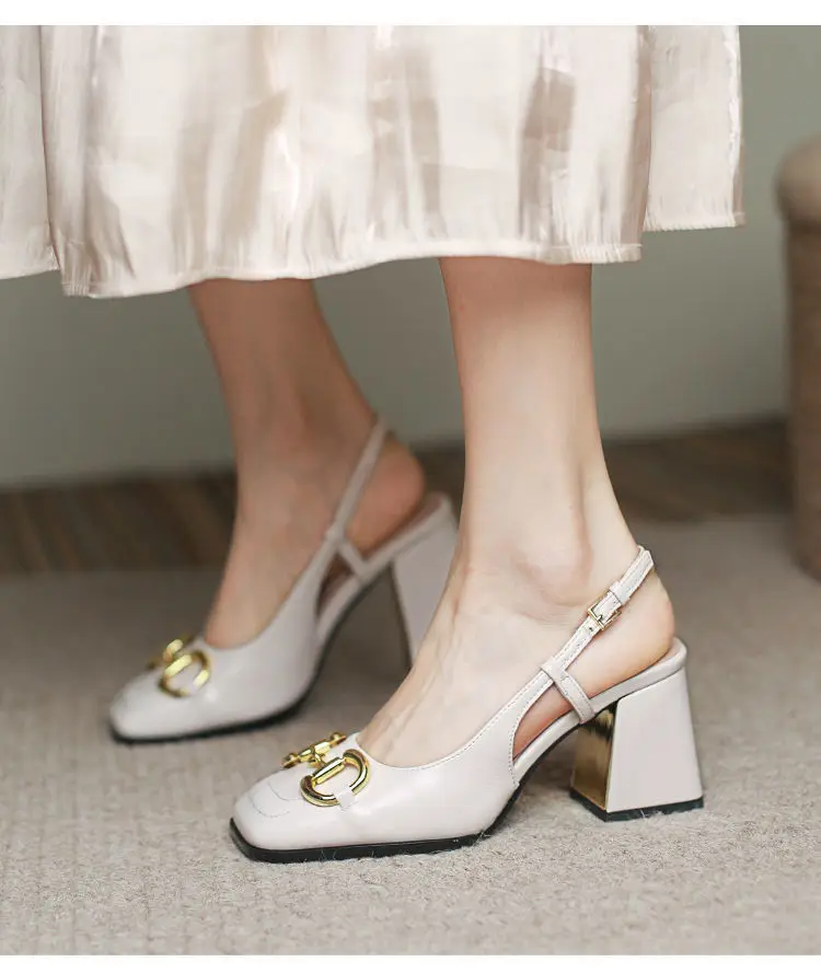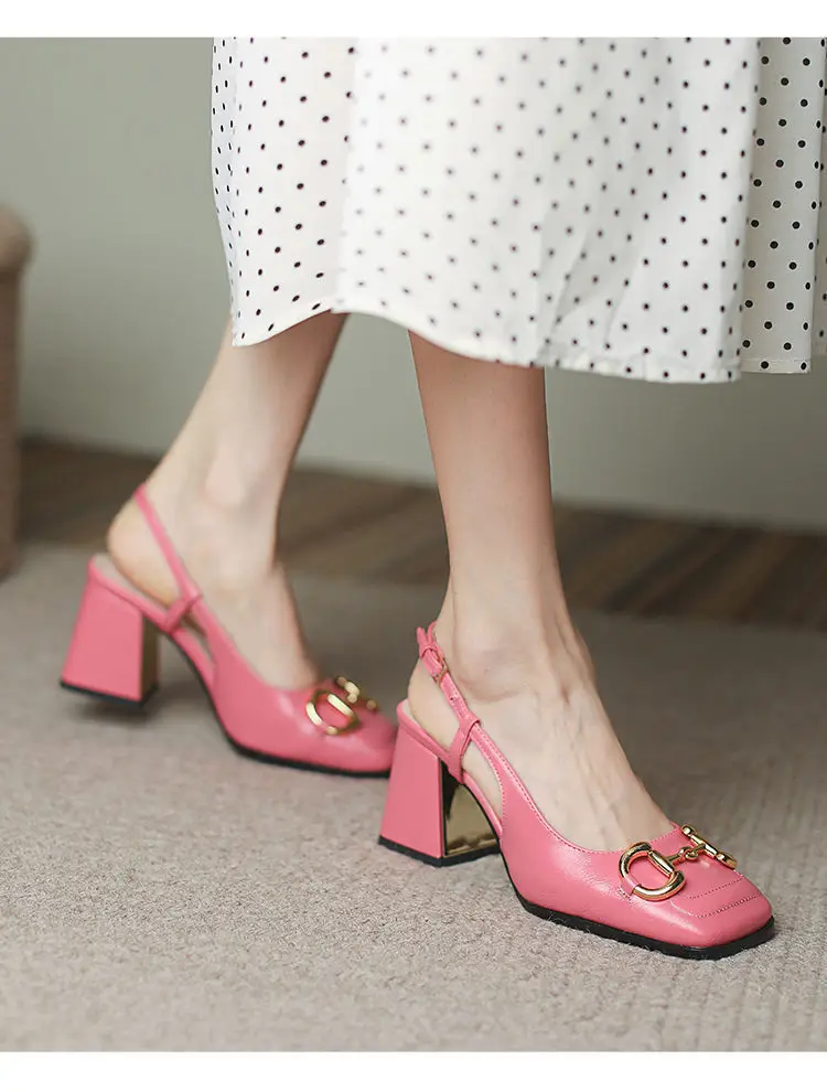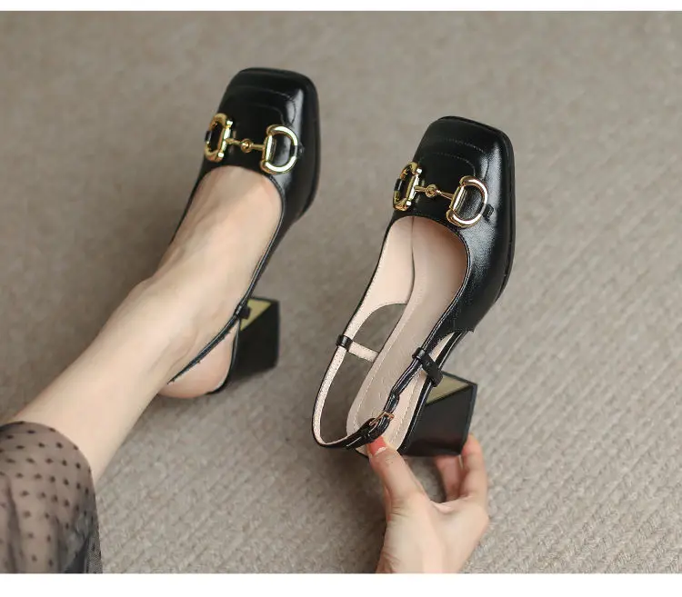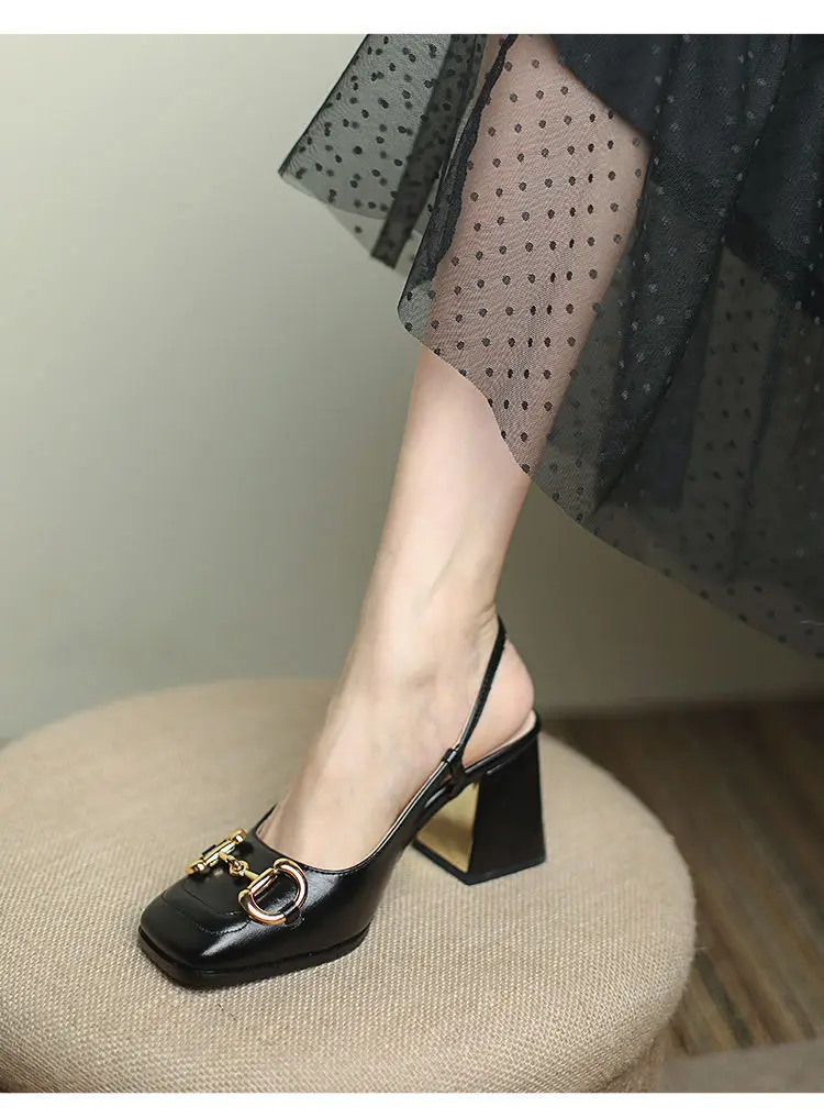 Kylethomasw Mary Jane Women's Shoes 41-43 French Vintage Square Headed Thick Heels High Heels Single Shoes Baotou Letter Sandals