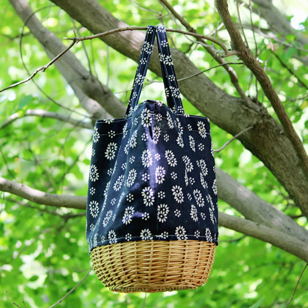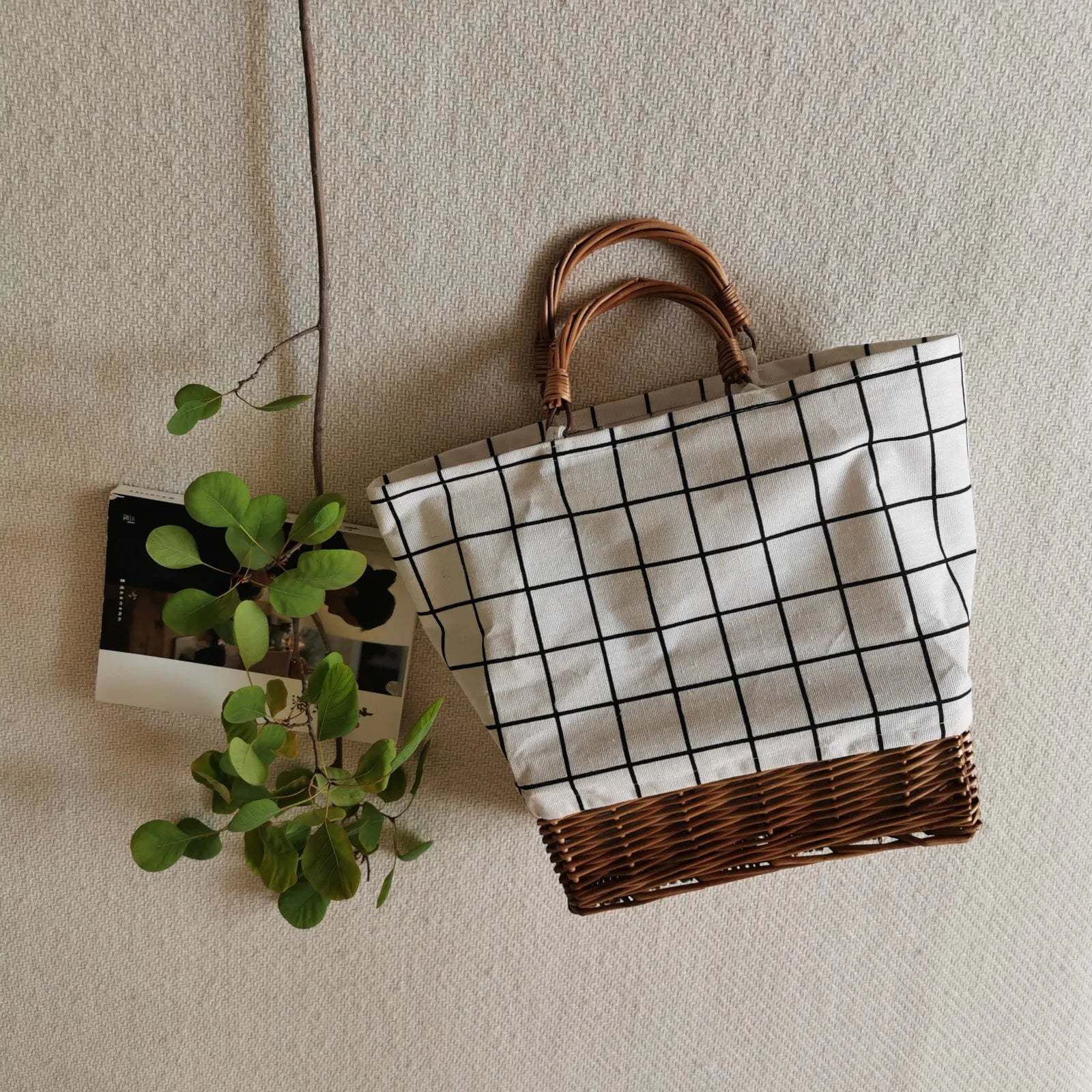New Japanese Wholesale Handbags Korean Straw Woven Linen Splicing Rattan Portable Sail Cloth Bamboo Large Bag Patchwork Girls