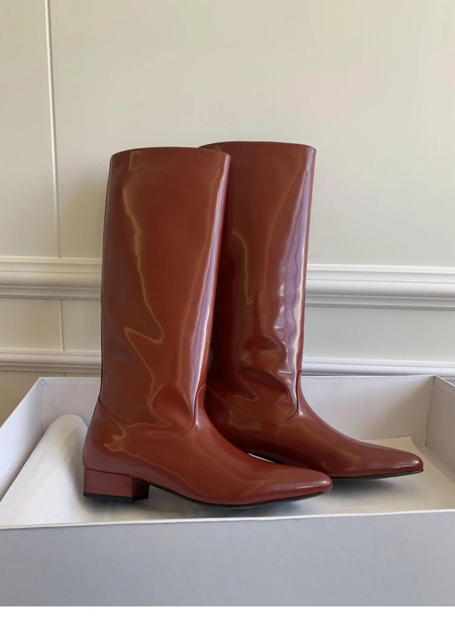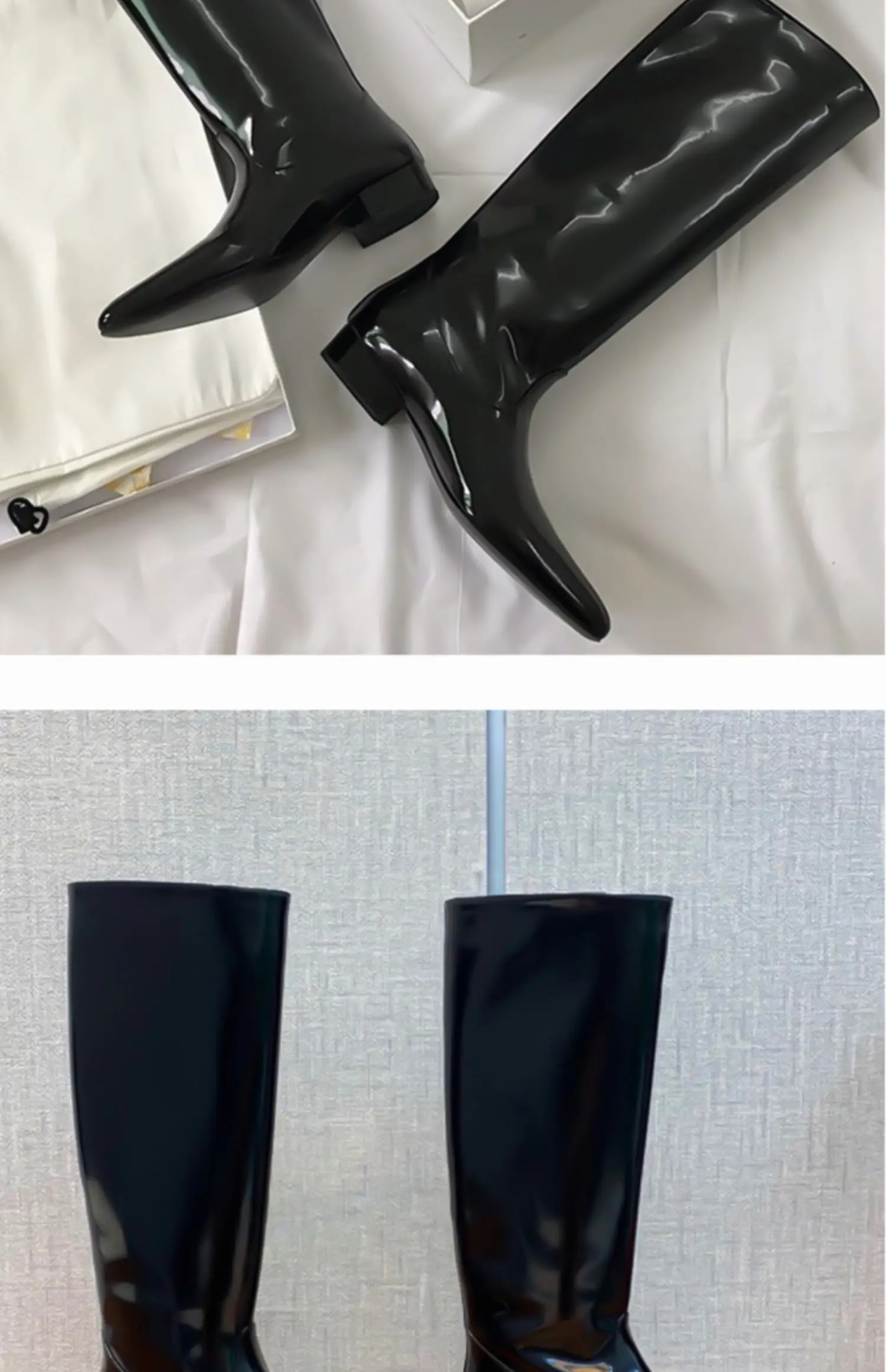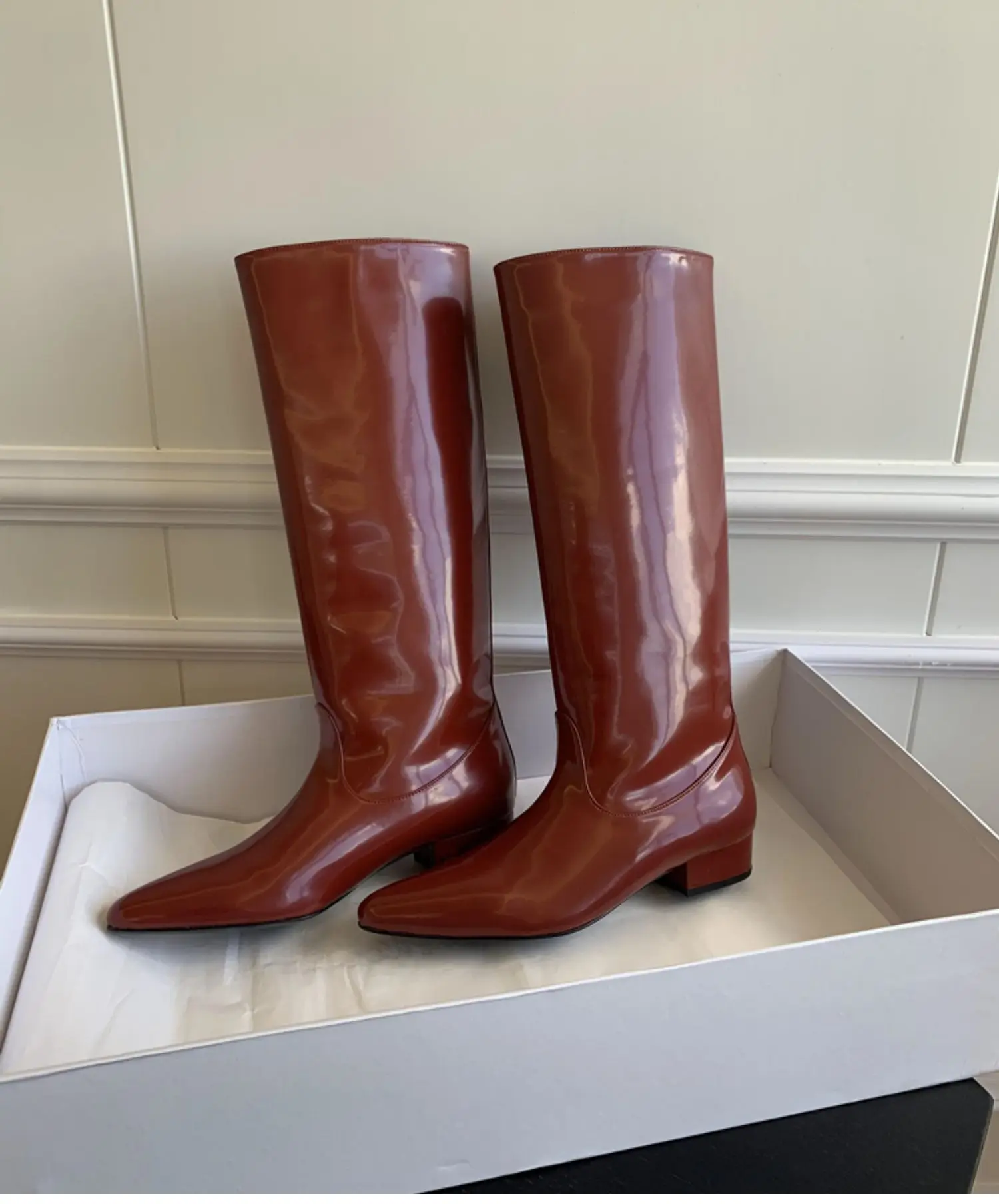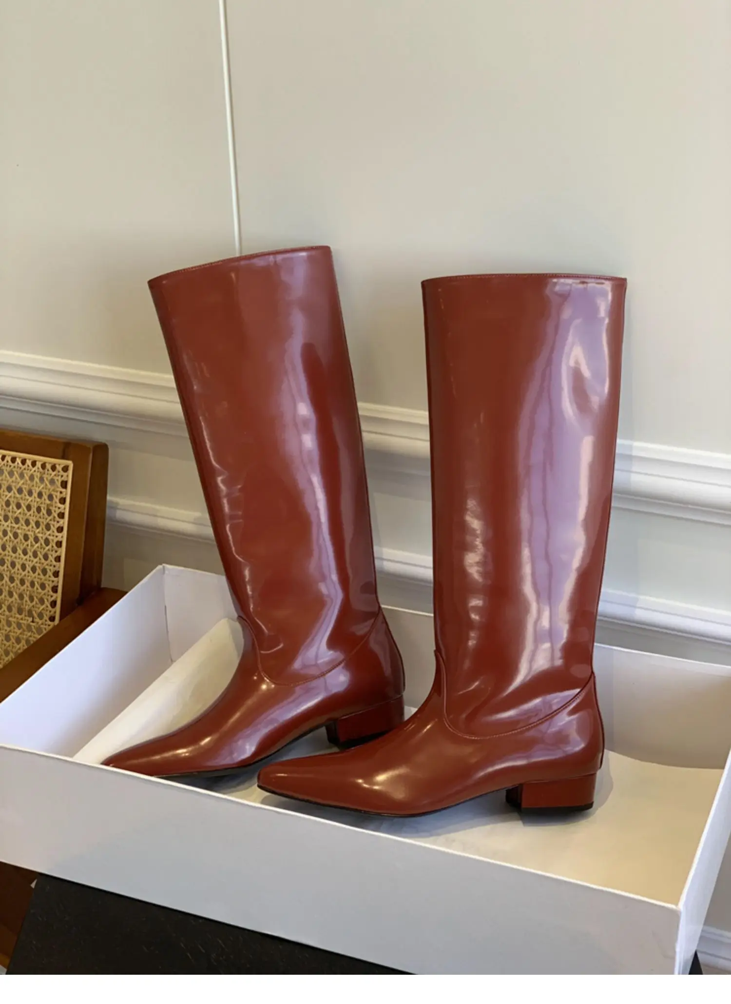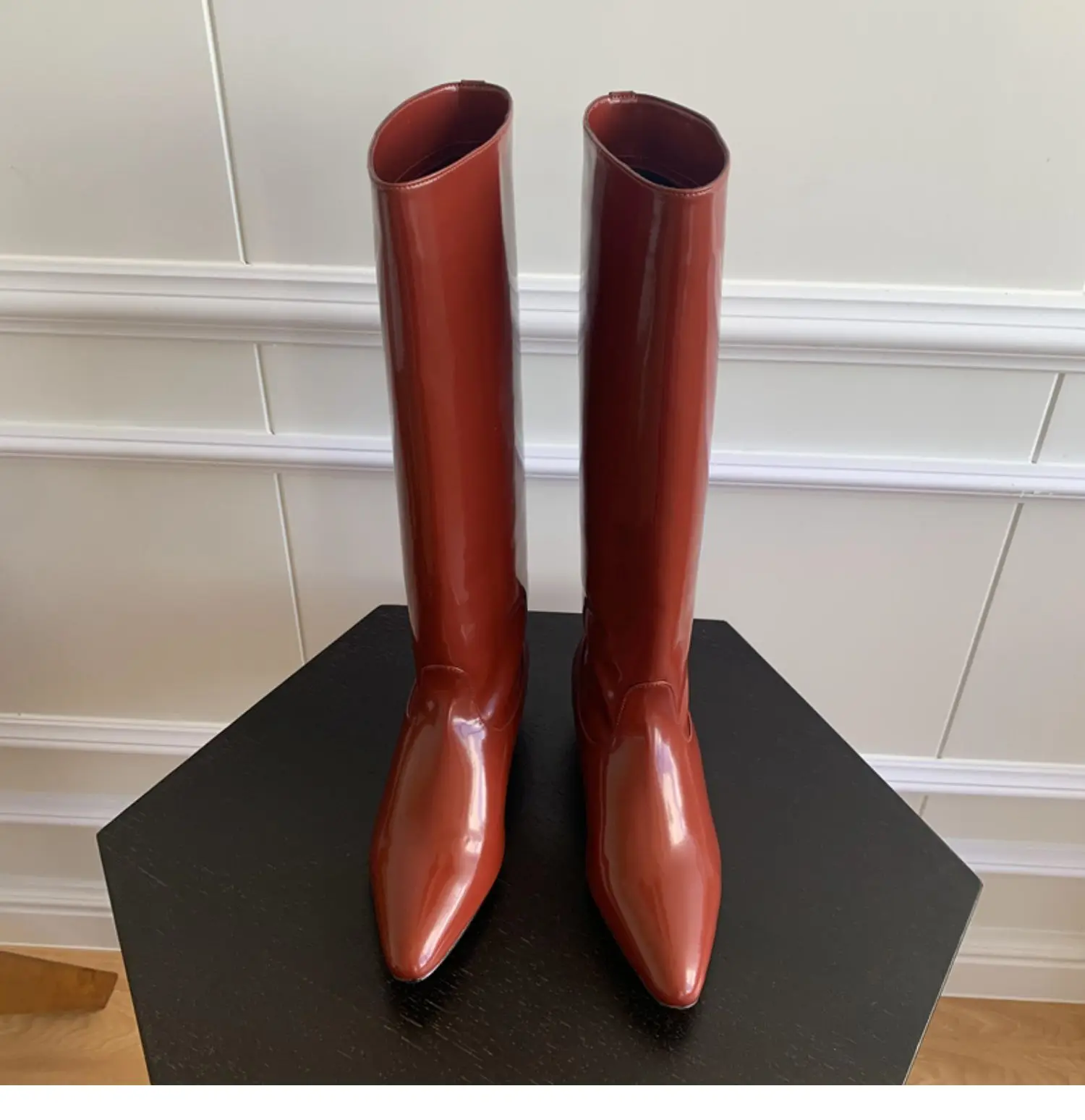 KYLETHOMASW - New Modern Knee High Long Boots For Ladies Red Footwear Female Pointed Toe Fashion Heels Autumn Women Western Boots Shoes