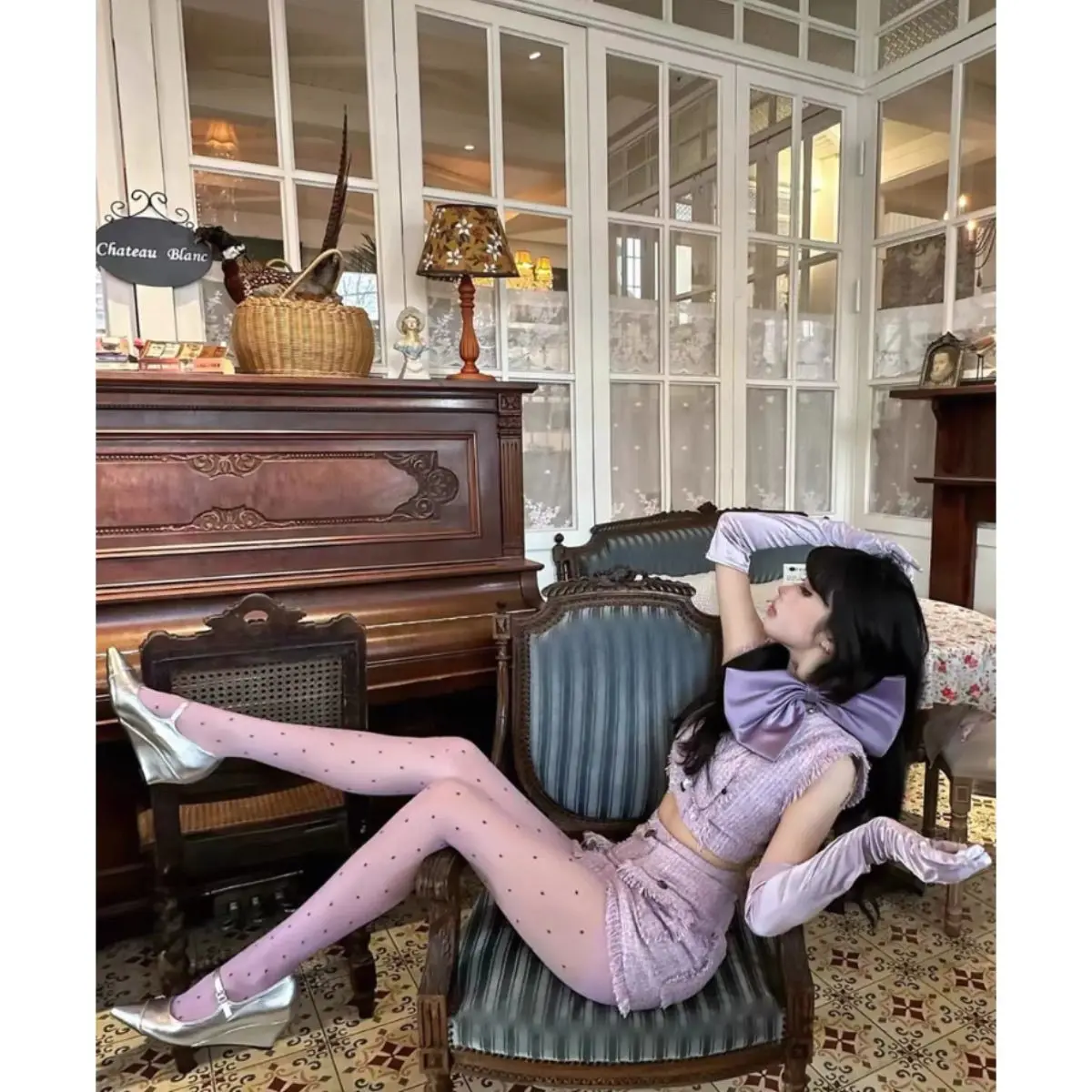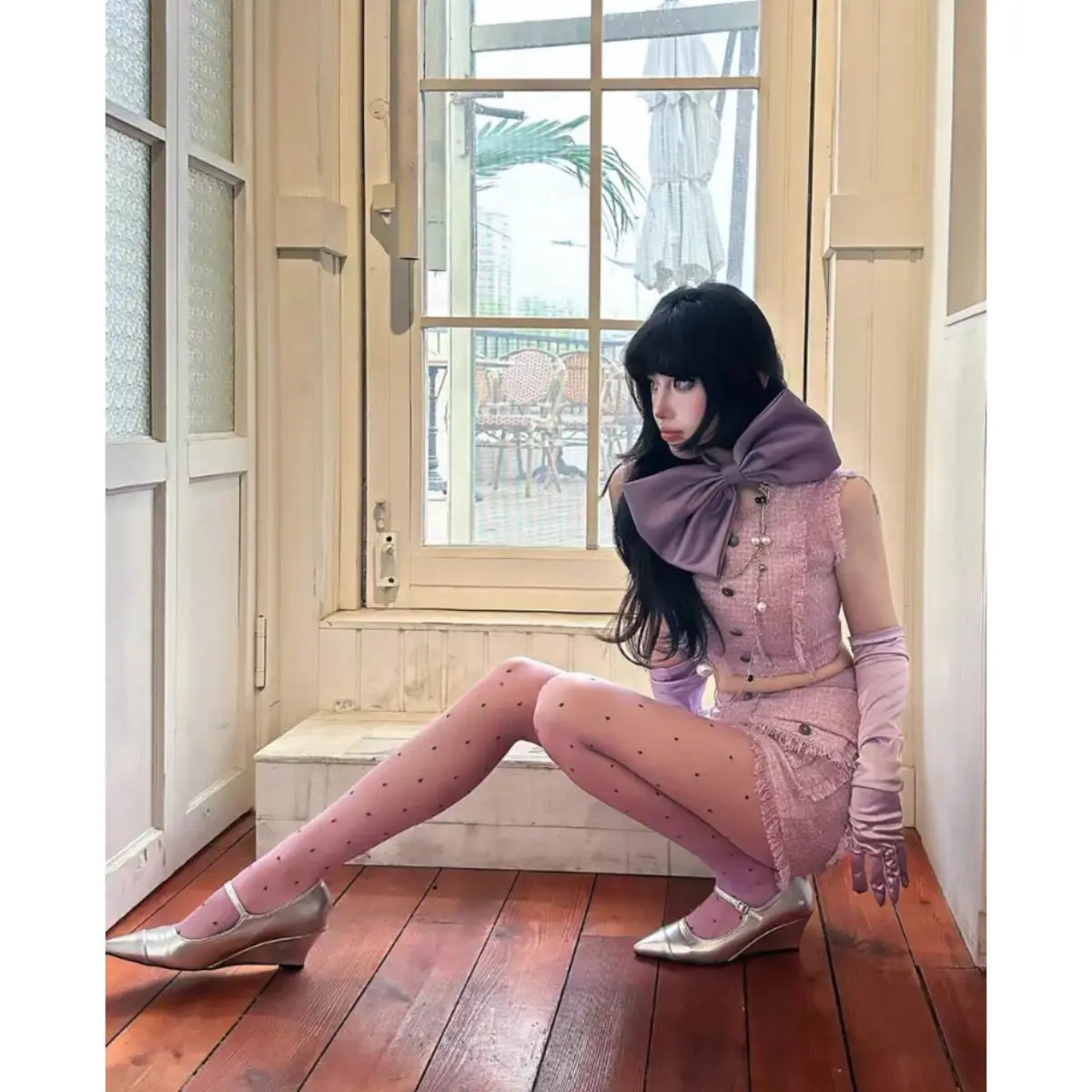 KYLETHOMASW - Purple Polka Dot Silk Socks y2k Sexy Stockings Spring/Summer Thin Thigh High Socks Transparency Black Tights Women Pantyhose