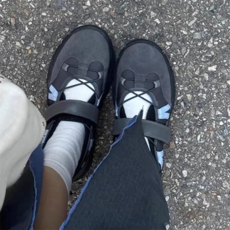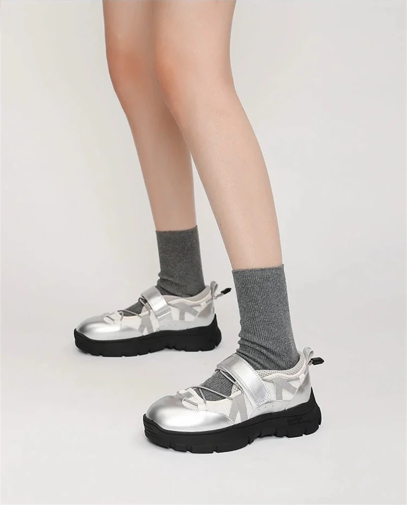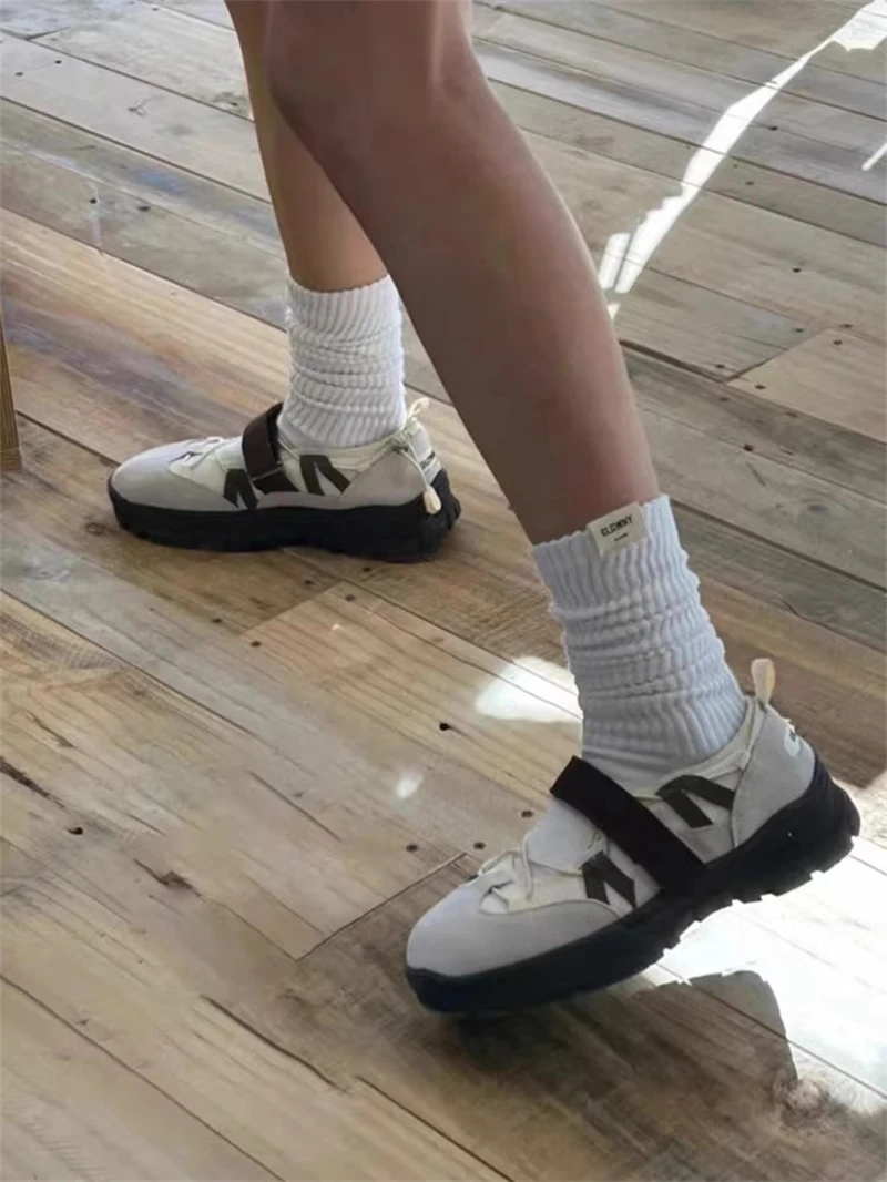 Kylethomasw Retro HOOk&LOOP Thick Bottom Women Sneakers Round Toe Sport Ladies Shoes Elastic Band Design Non-Slip Tenis Femininos Shoes