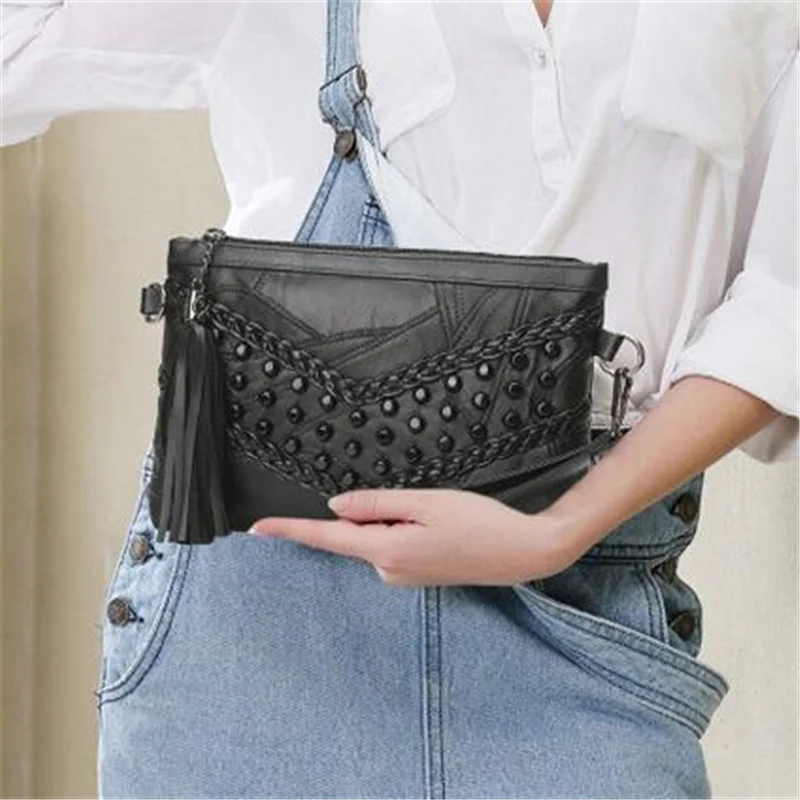 Kylethomasw Retro Rivet Envelope Shoulder Bags for Women Small Messenger Bag PU Leather Lady Pouch Bag Black bolsos mujer Purse