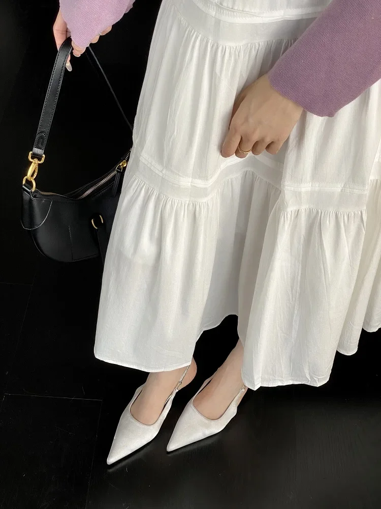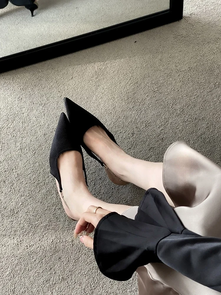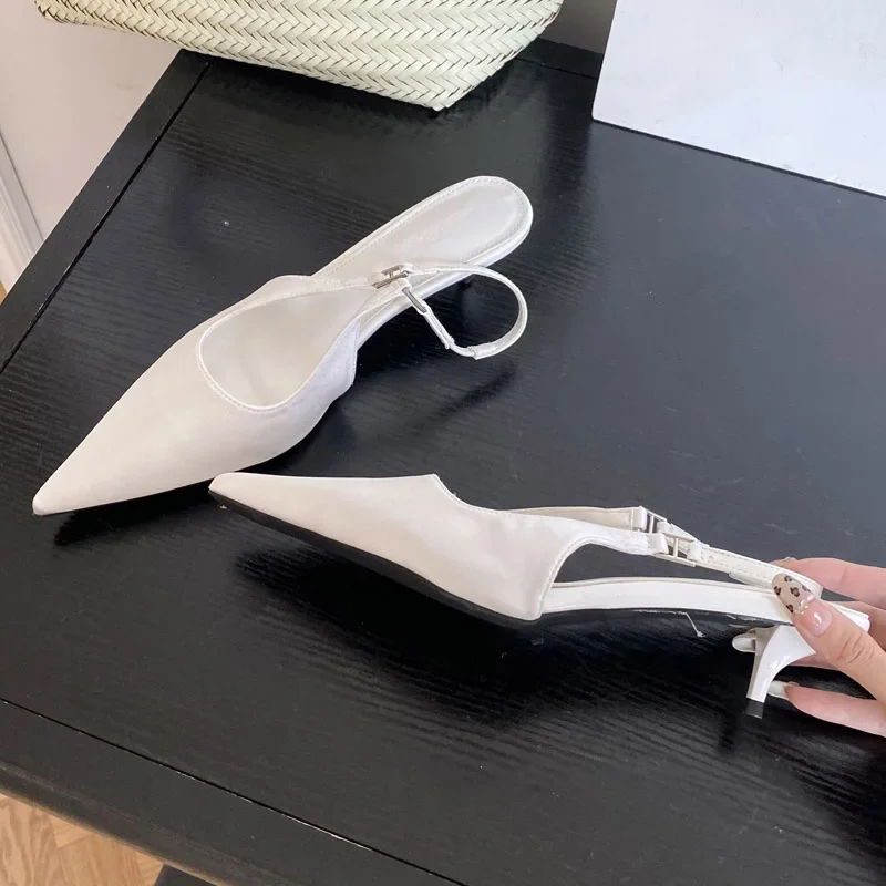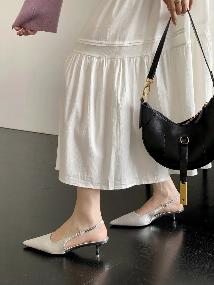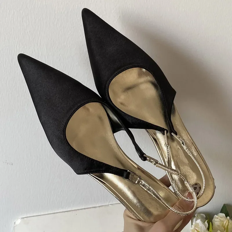 KYLETHOMASW - Satin Pointed Toe Mules Women Pumps Sandals 2025 Spring High Quality Shallow Thin Low Heels Female Shoes