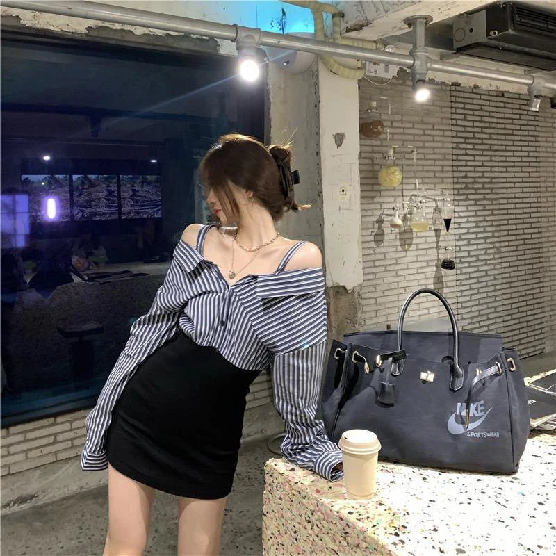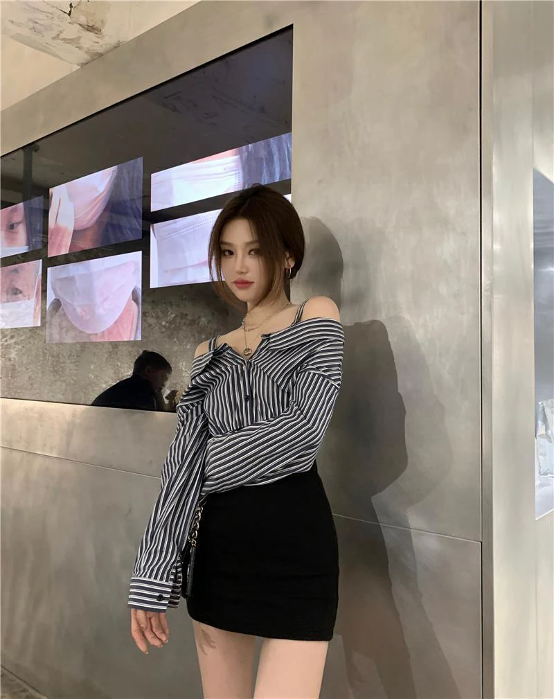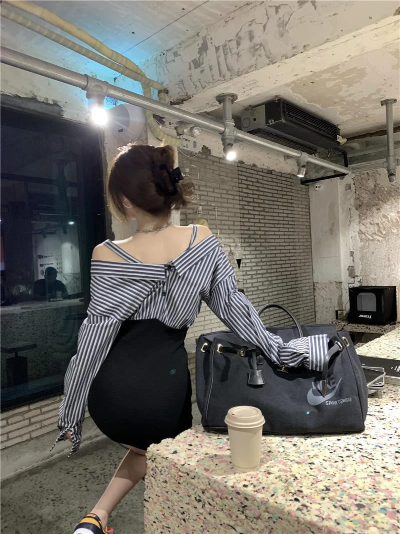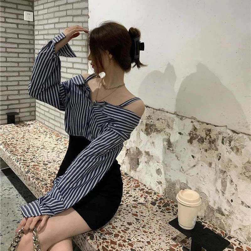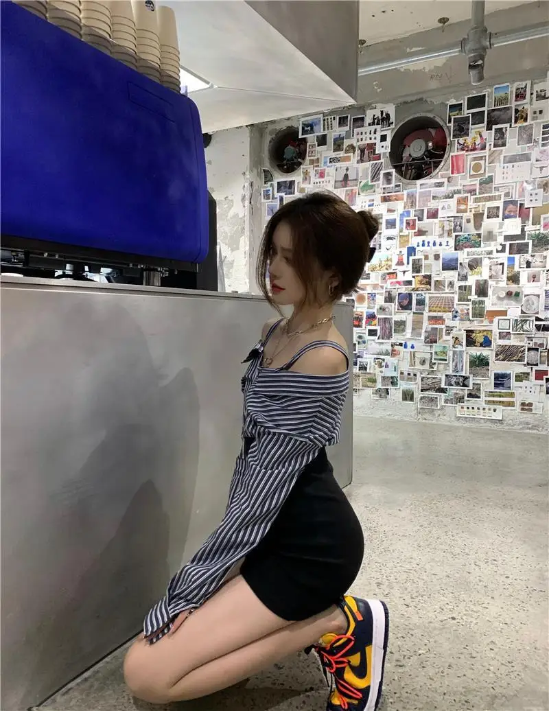 Kylethomasw Slash Neck Mini Dress Women Korean Striped Patchwork Hip Wrap Dresses Fashion Streetwear Long Sleeve Bodycon Design Vestidos New