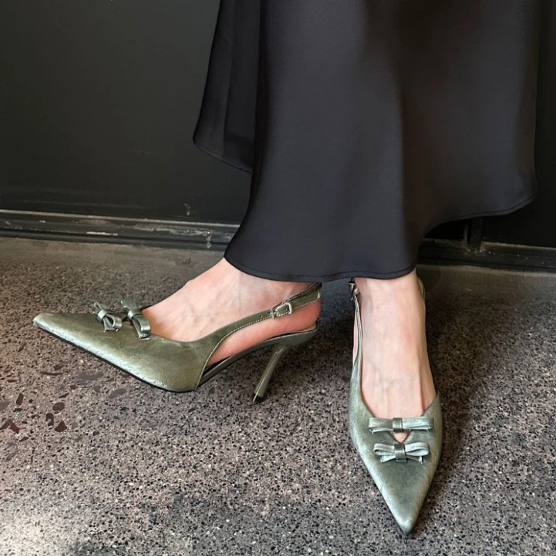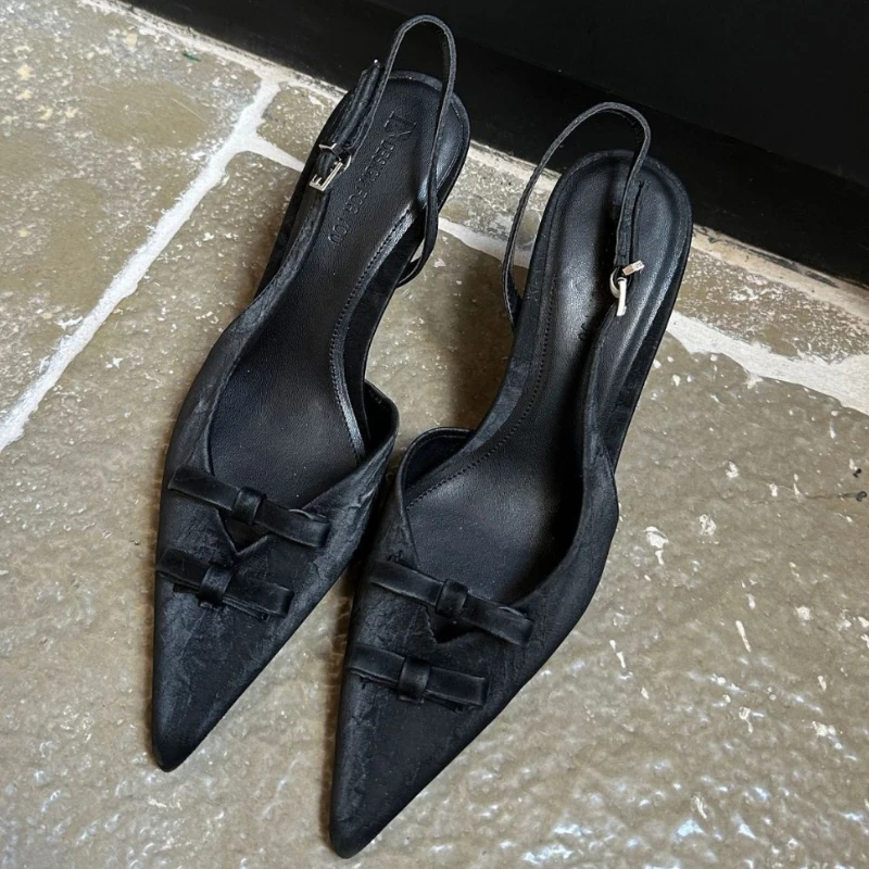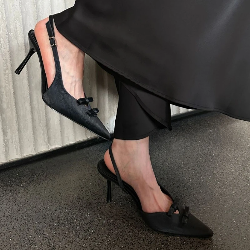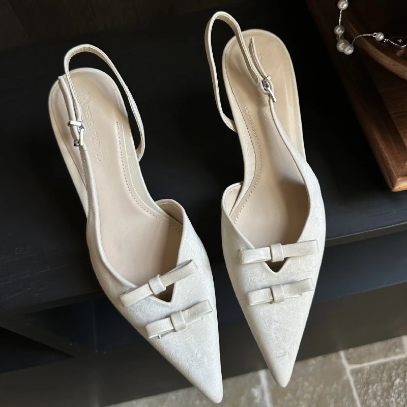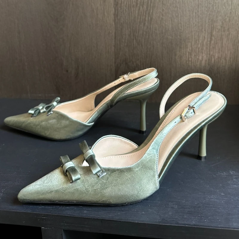 Kylethomasw Spring Bowknot Strap Women Thin Heeled Shoes Fashion Hollow Pointed Fine High Heels Wedding Banquet Shallow Mouth Female Sandals
