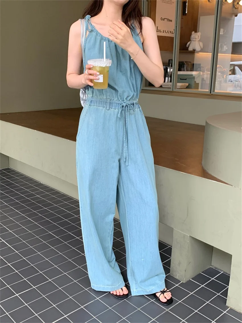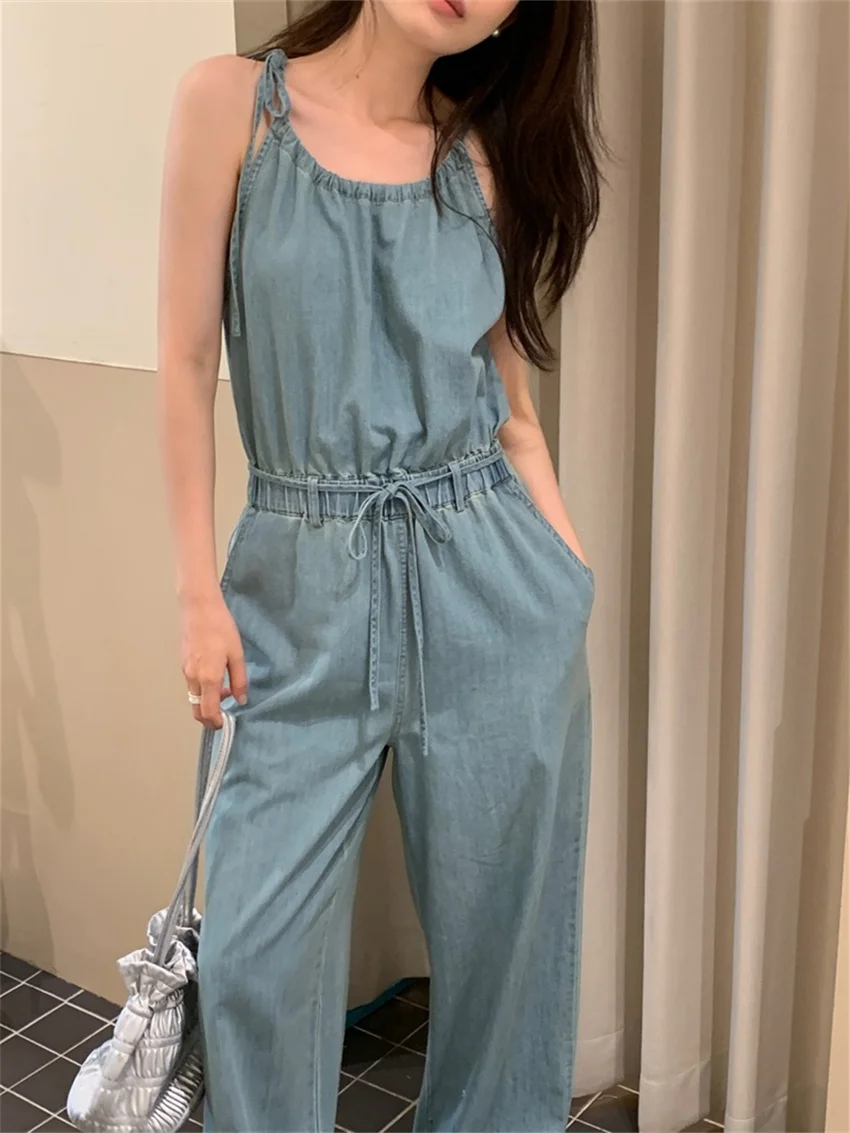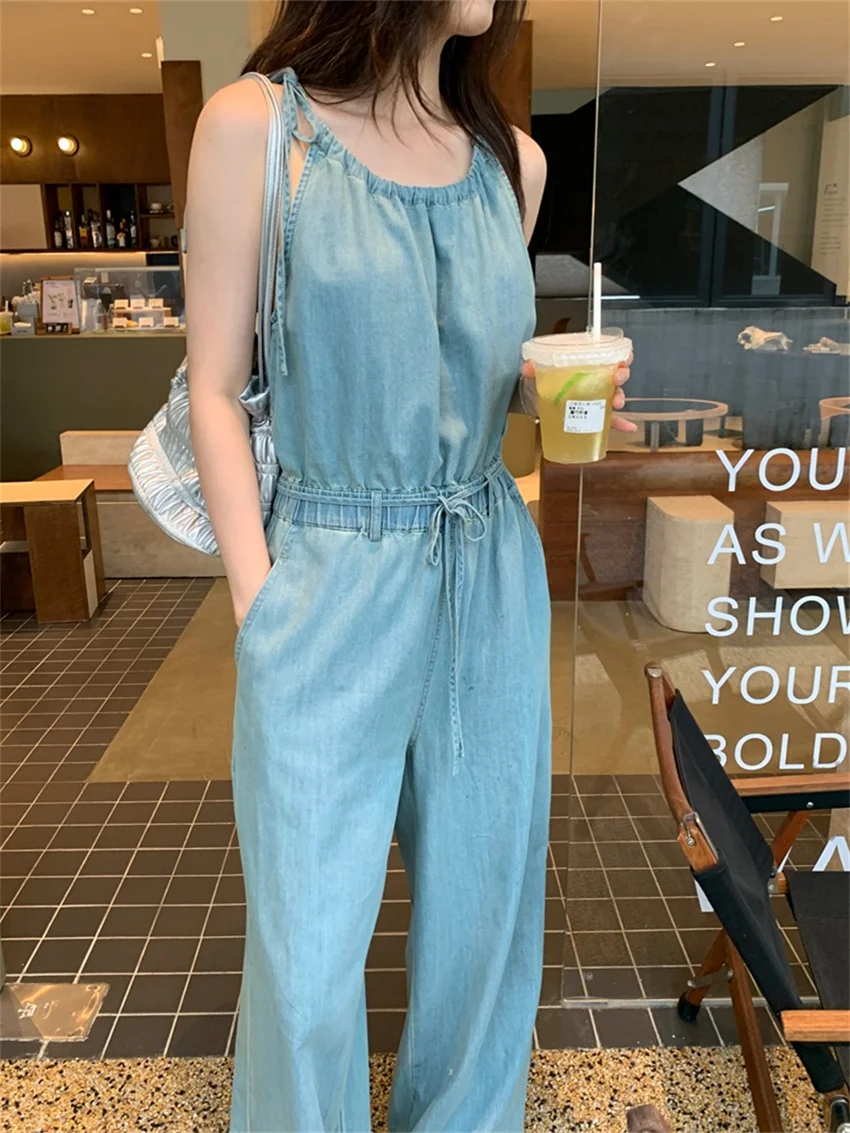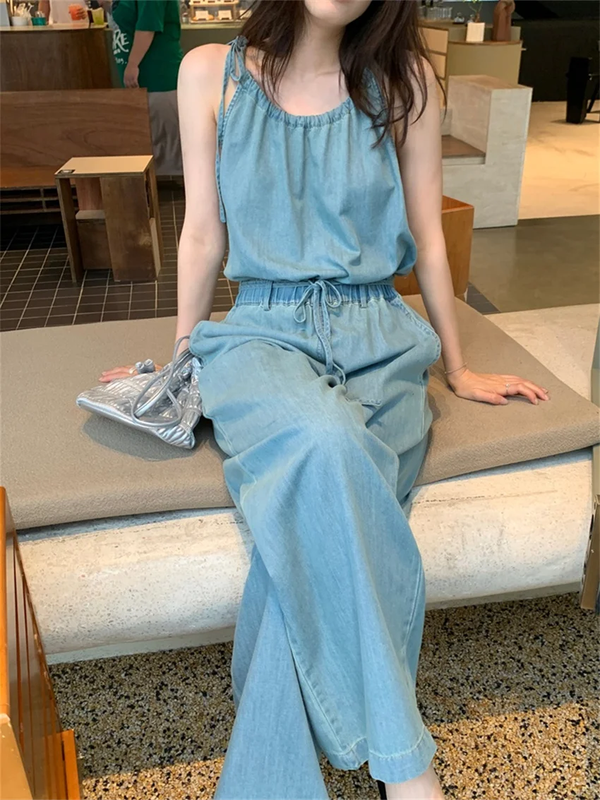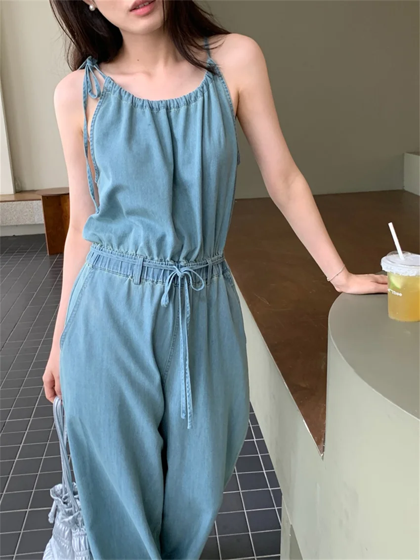 KYLETHOMASW - Stylish Women Rompers Chic Loose High Street Summer Mujer Office Lady Halter Casual Slim Elegant New Jeans Jumpsuits