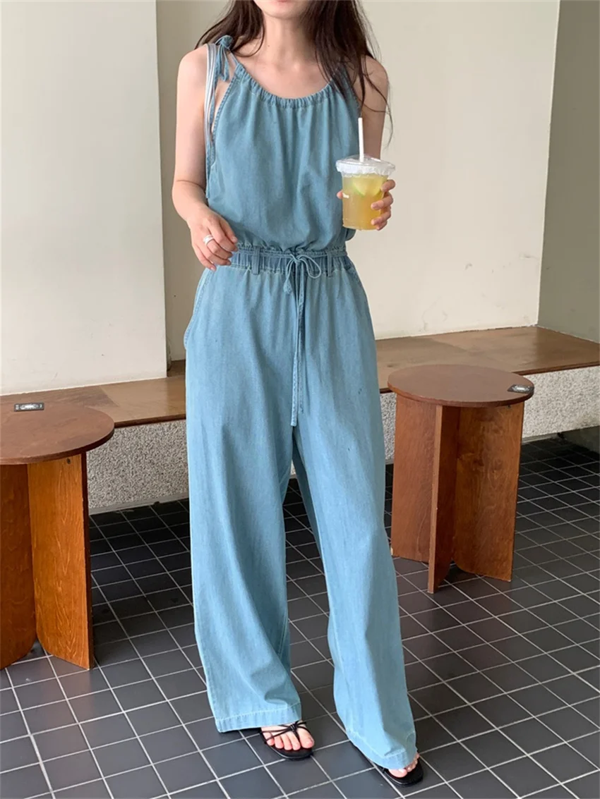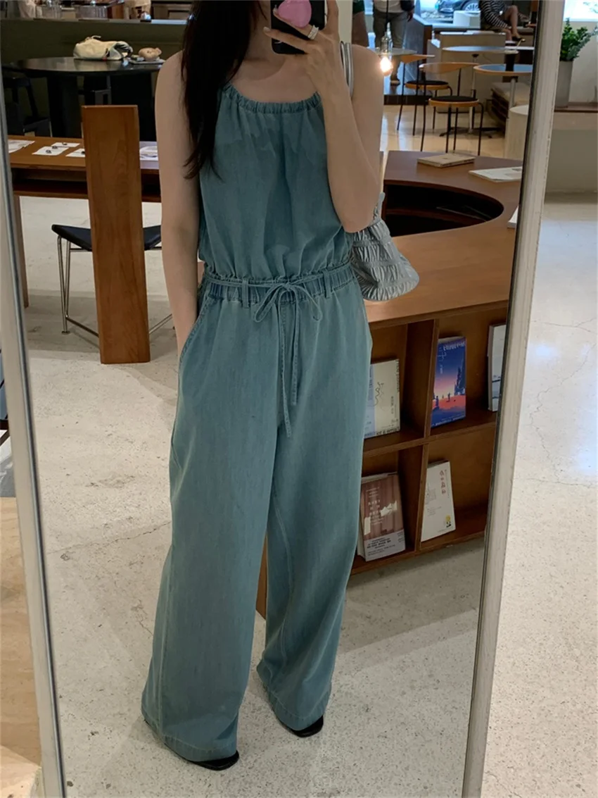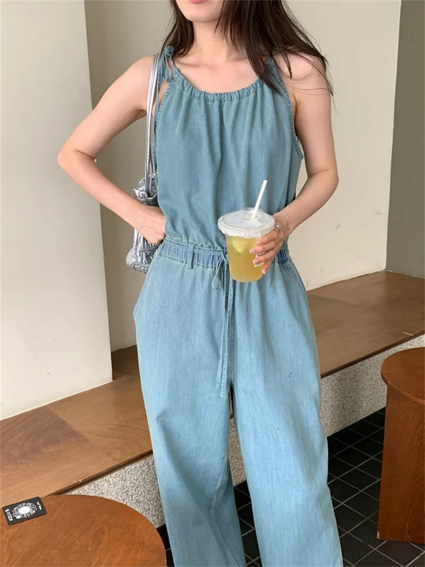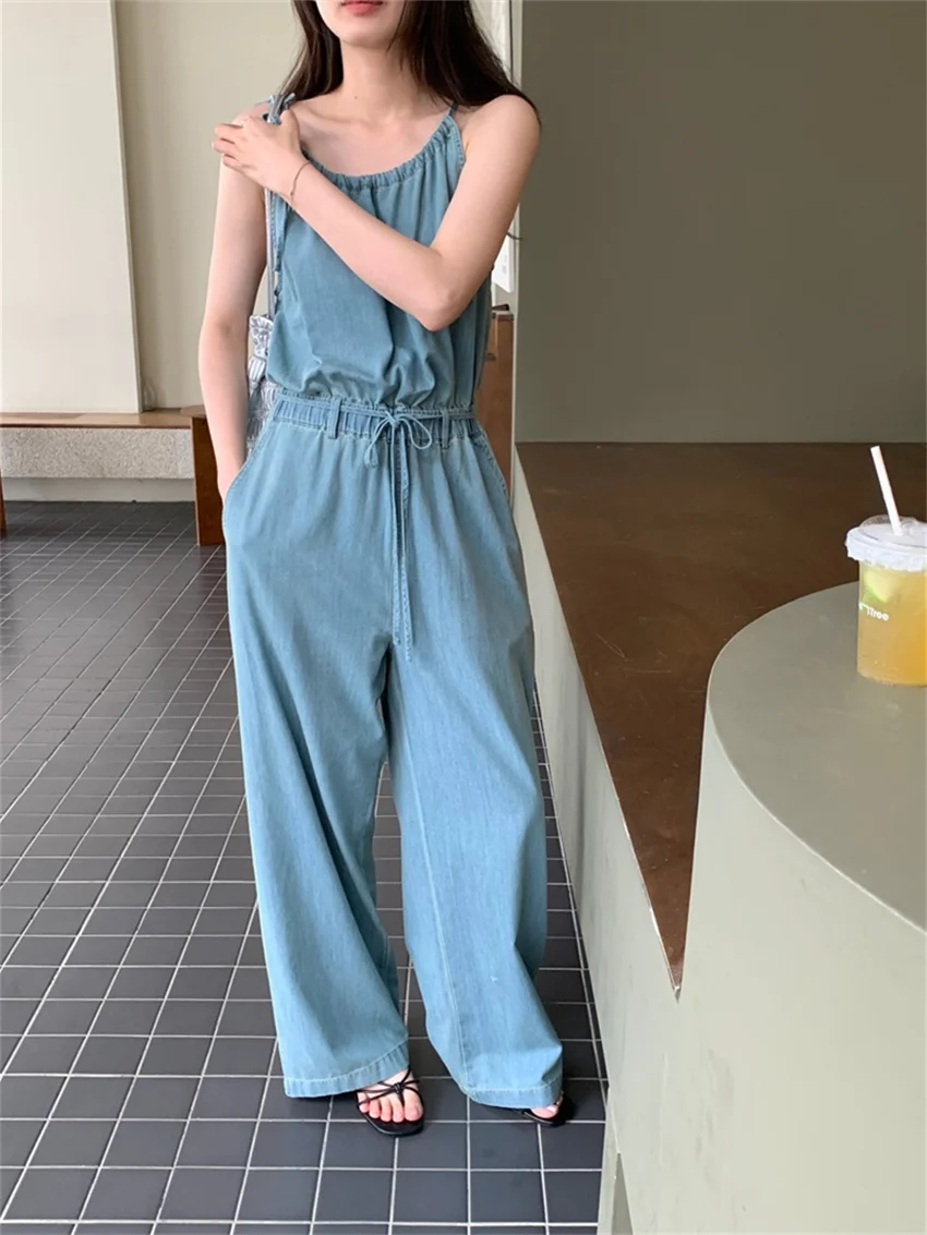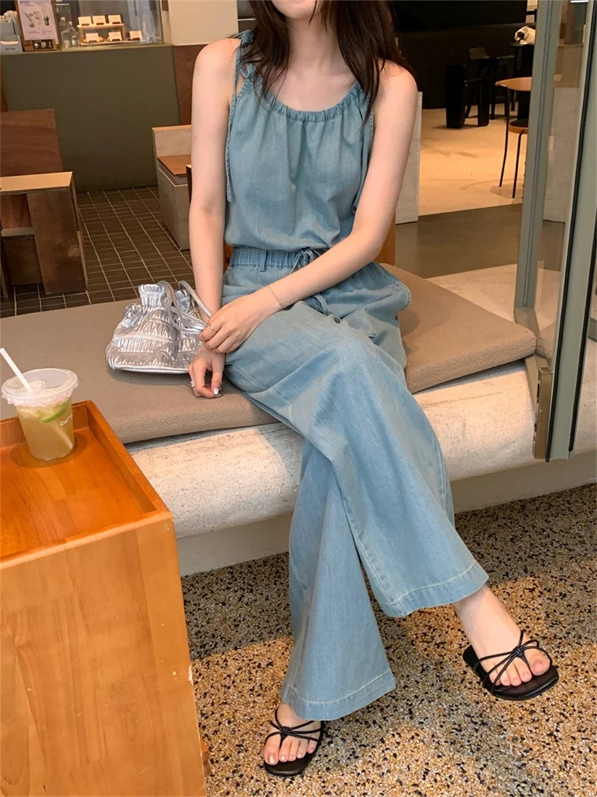 KYLETHOMASW - Stylish Women Rompers Chic Loose High Street Summer Mujer Office Lady Halter Casual Slim Elegant New Jeans Jumpsuits