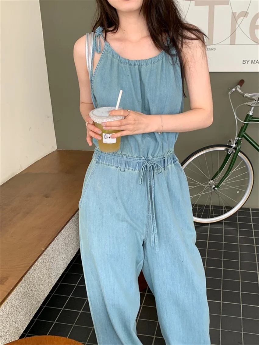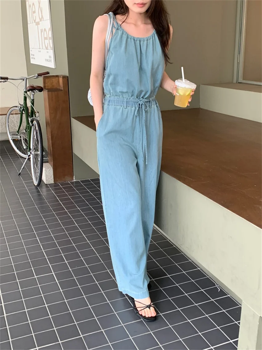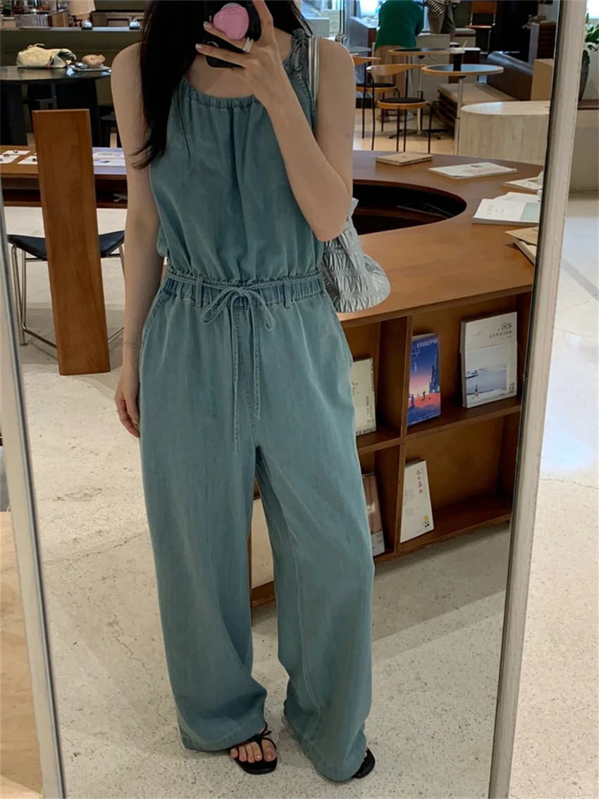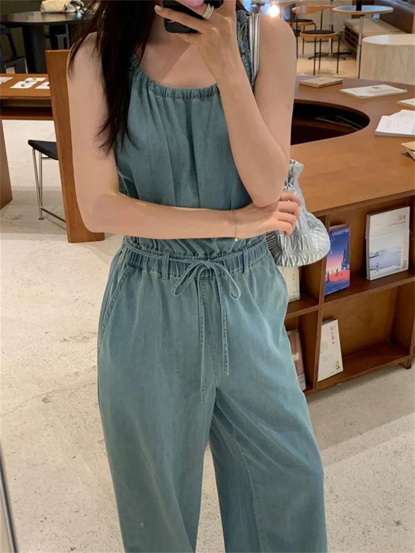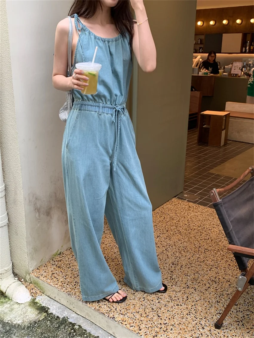 KYLETHOMASW - Stylish Women Rompers Chic Loose High Street Summer Mujer Office Lady Halter Casual Slim Elegant New Jeans Jumpsuits