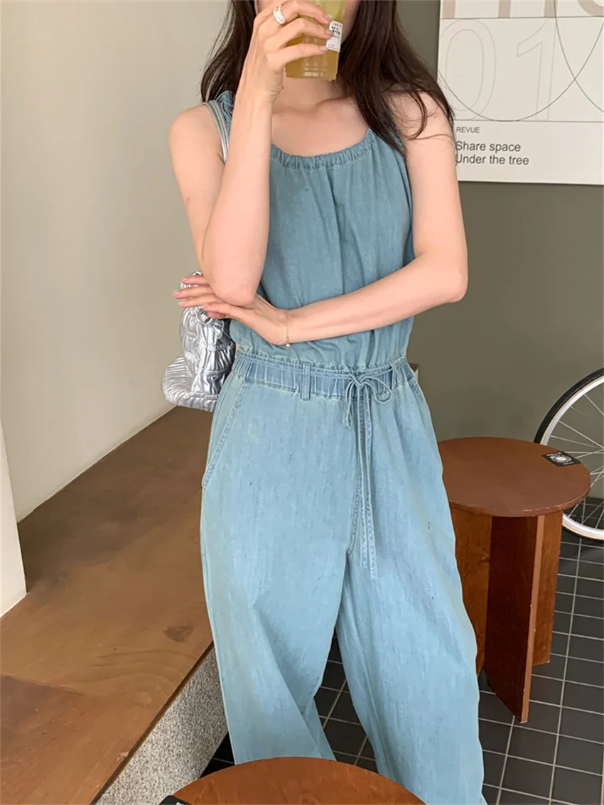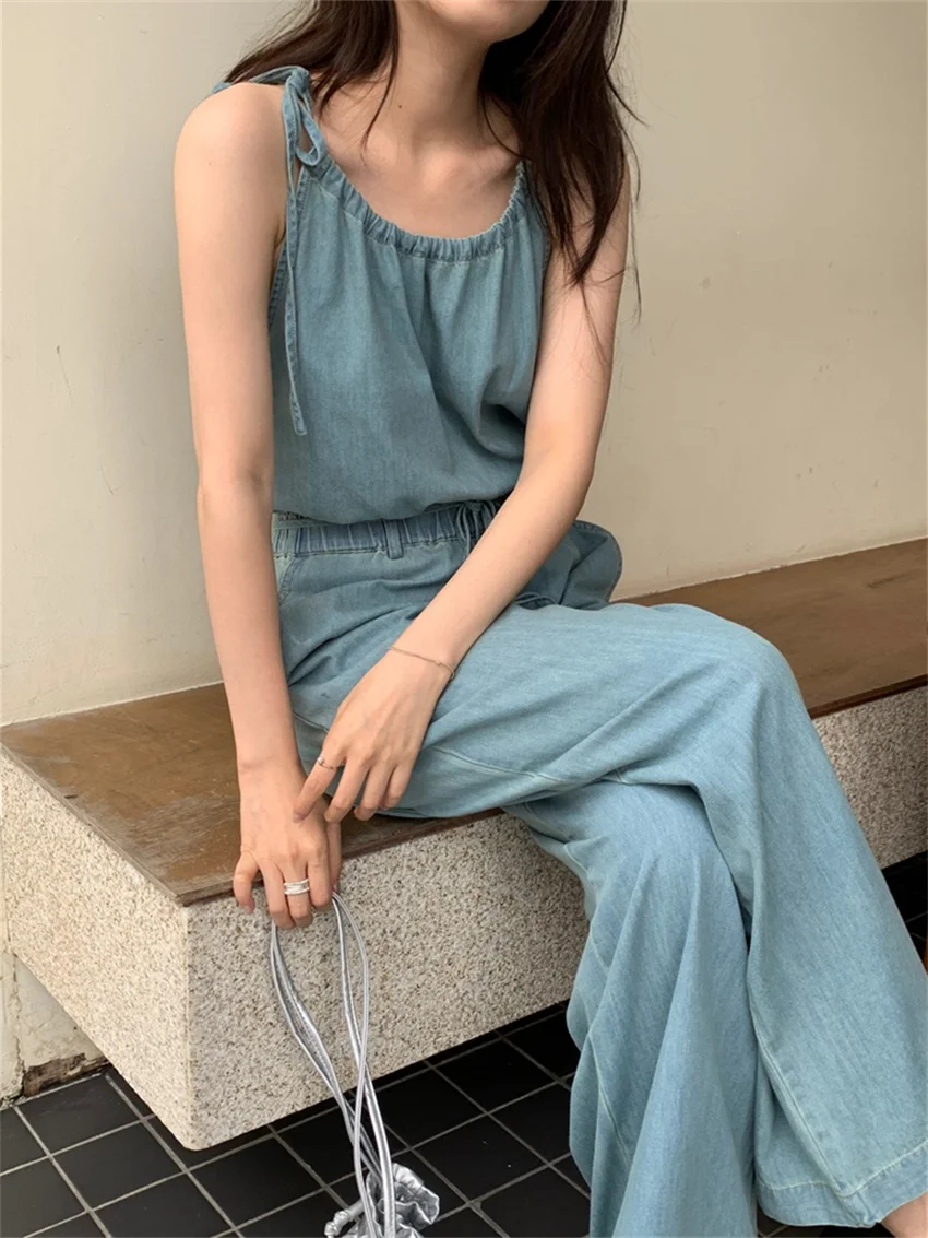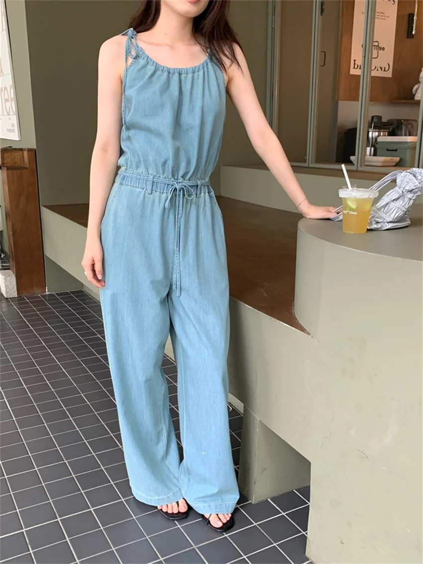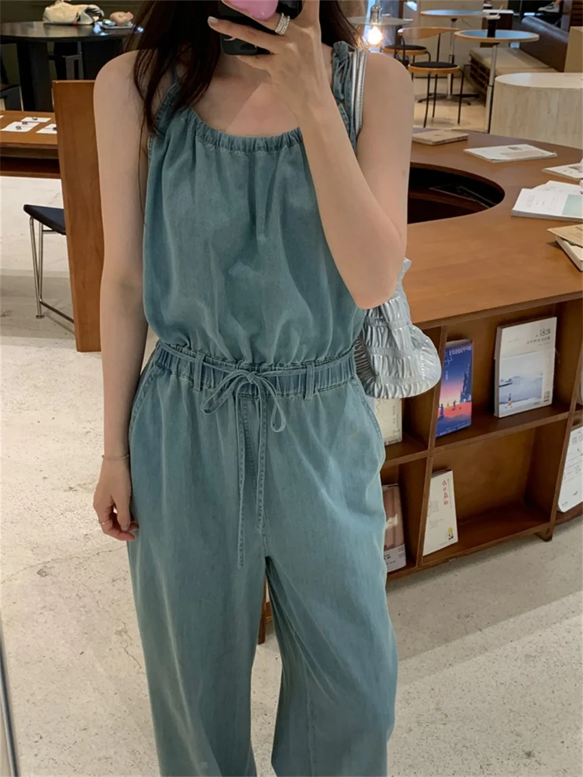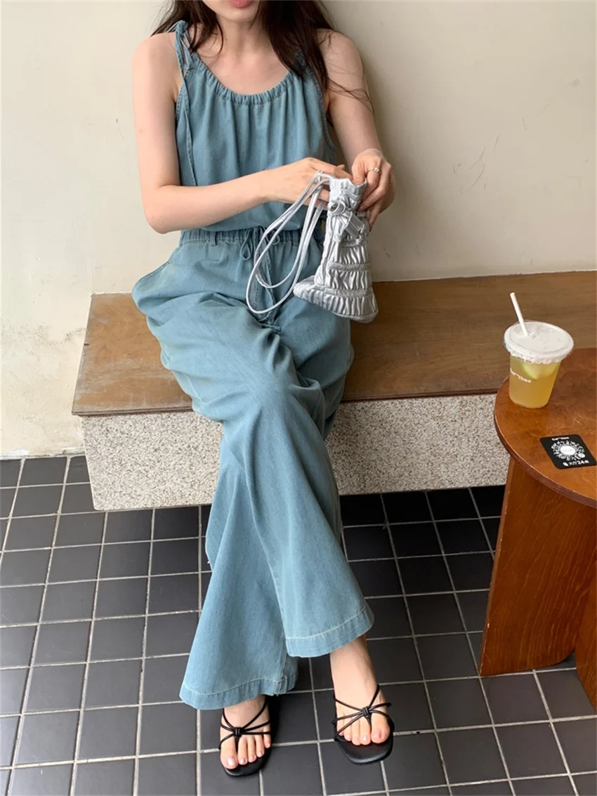 KYLETHOMASW - Stylish Women Rompers Chic Loose High Street Summer Mujer Office Lady Halter Casual Slim Elegant New Jeans Jumpsuits