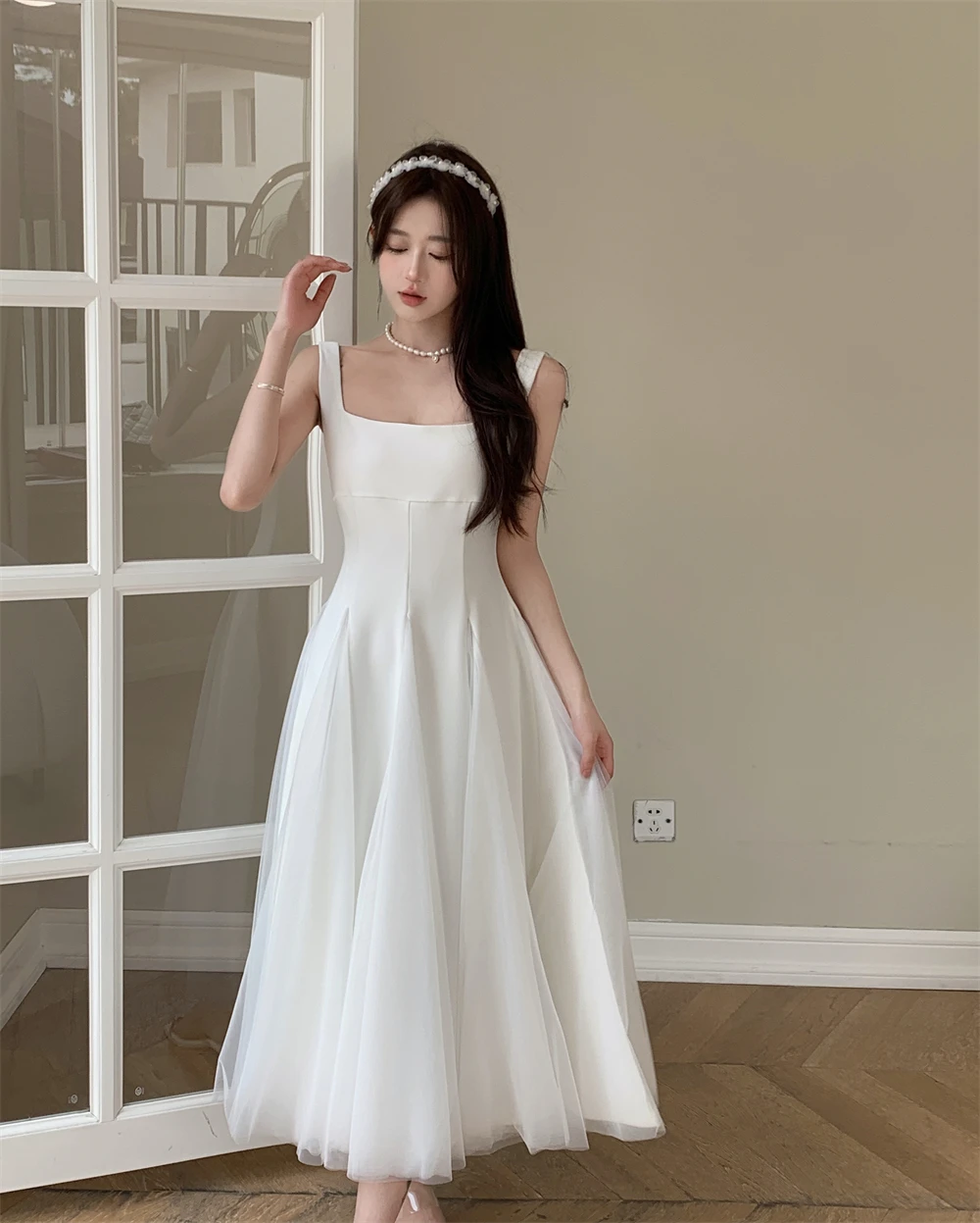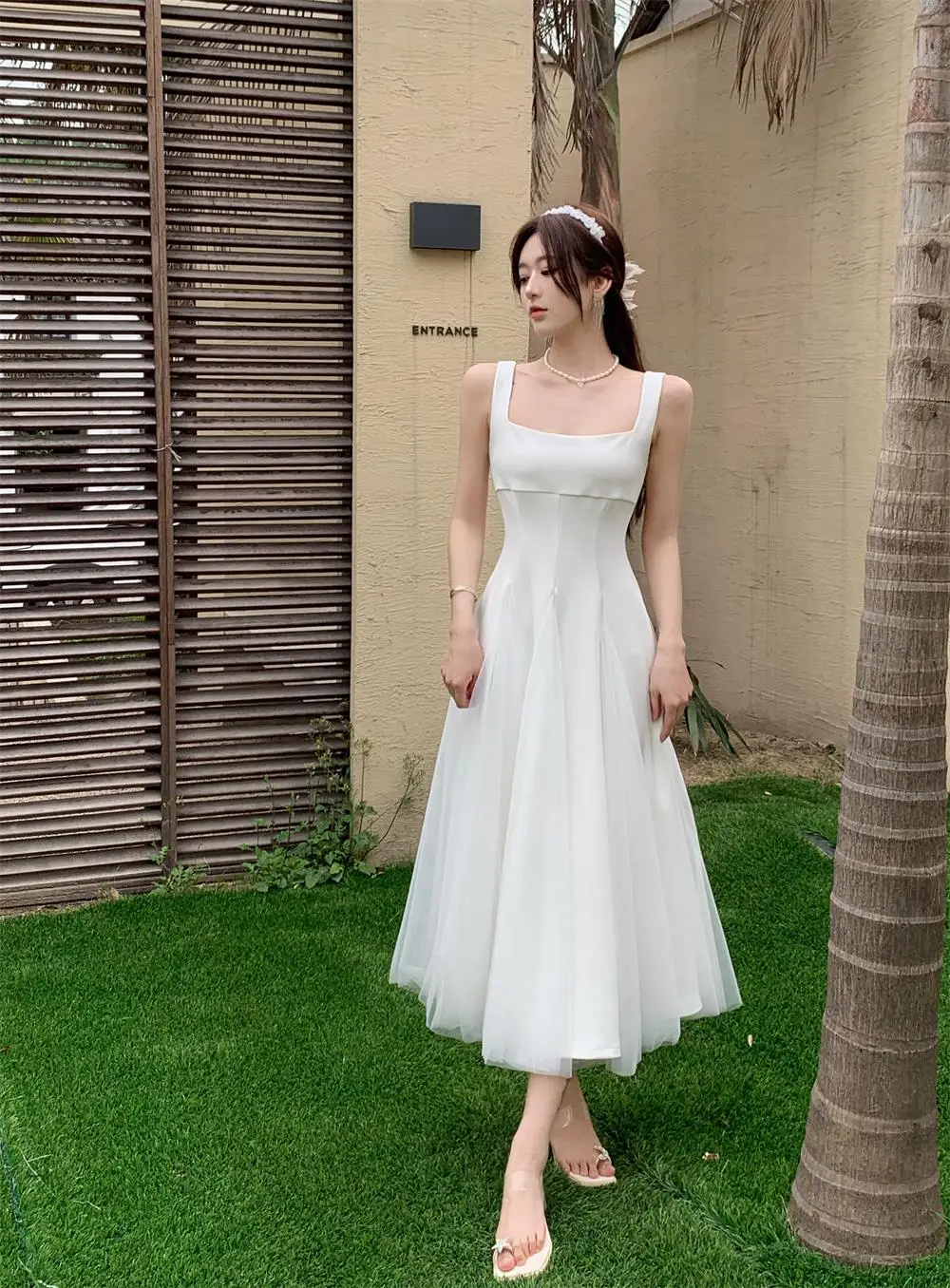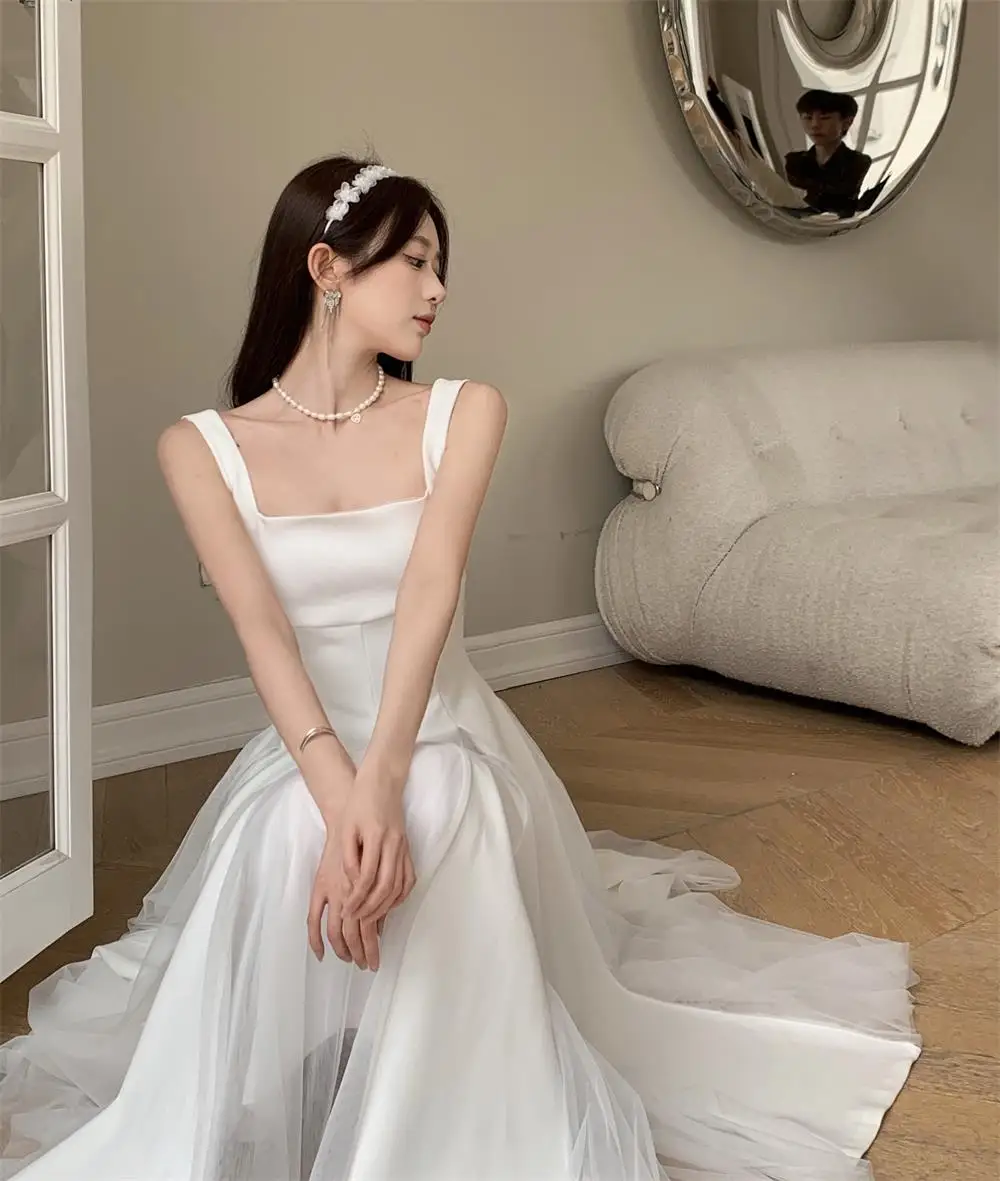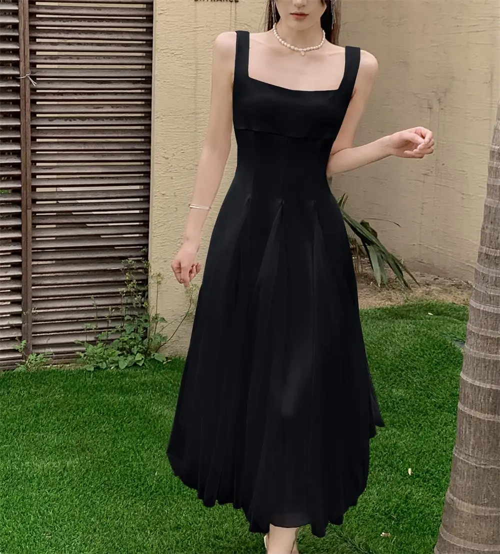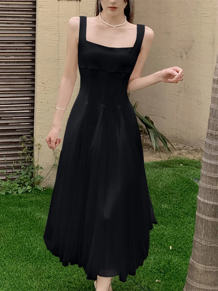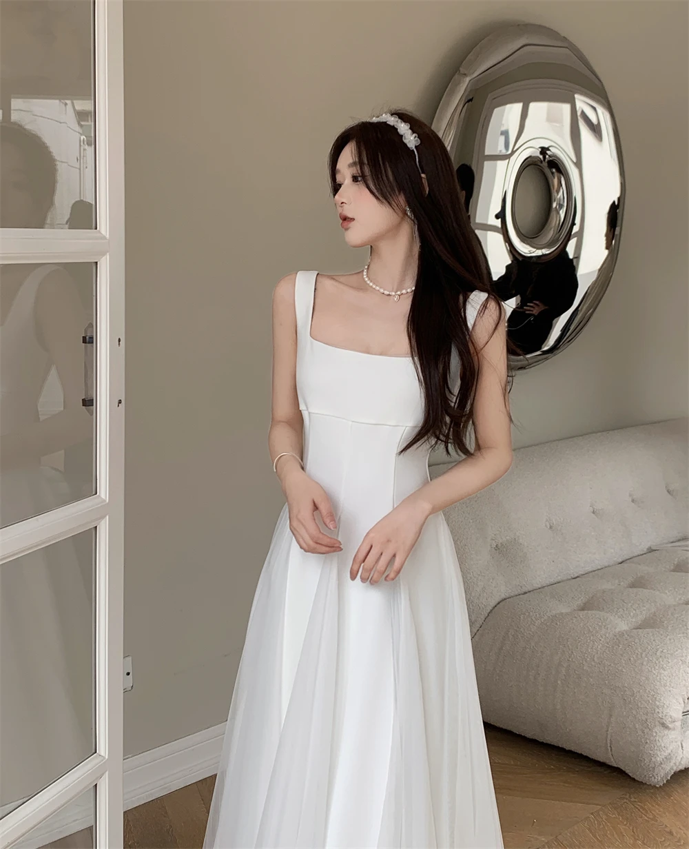 KYLETHOMASW - Summer Spring Fairy Womens Dresses Elegant Mesh Patchwork Square Collar Sleeveless Evening Party Midi Dress Female Vestidos Robe