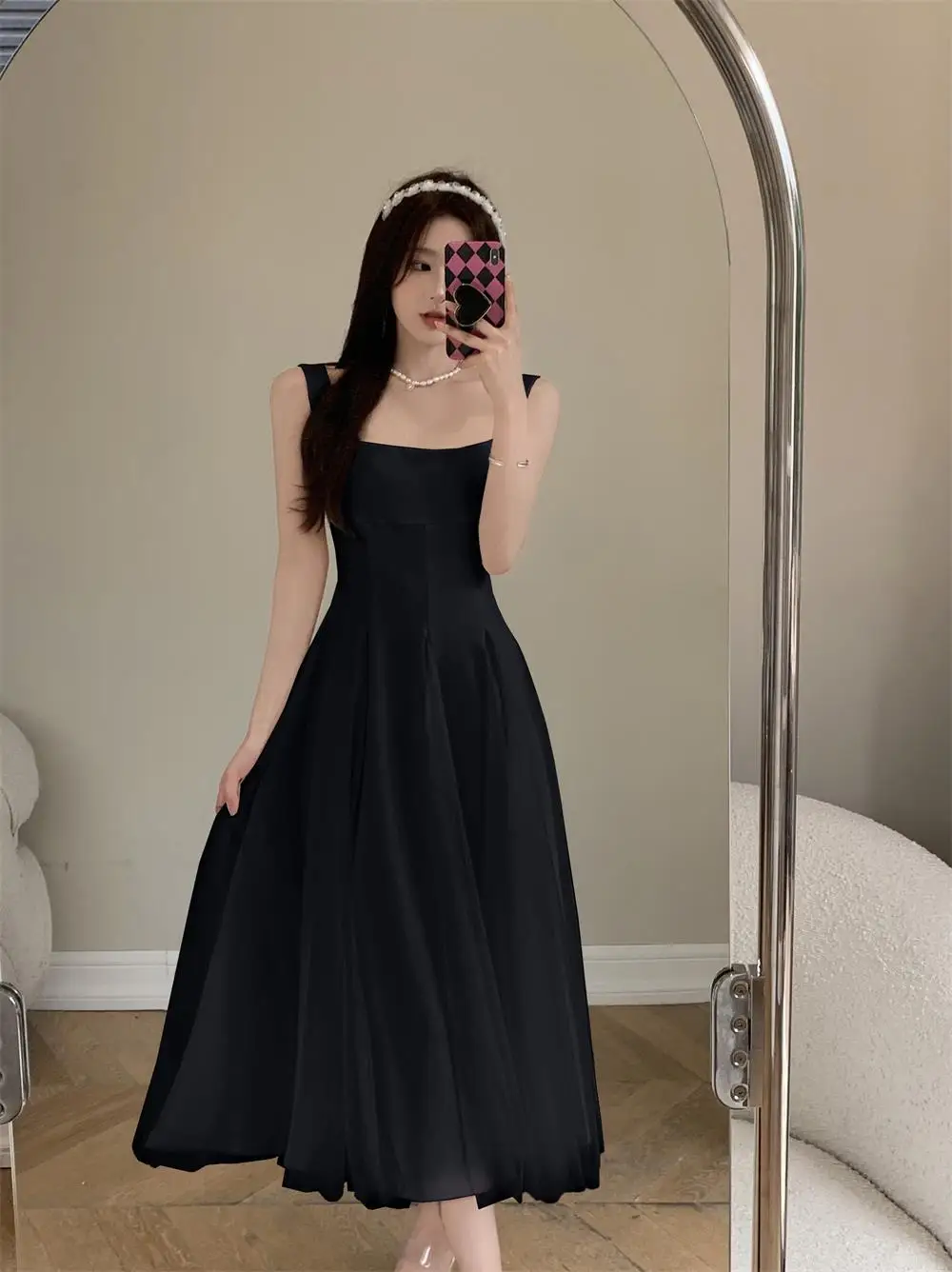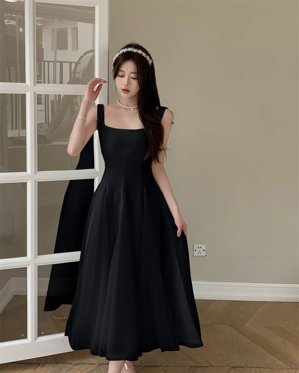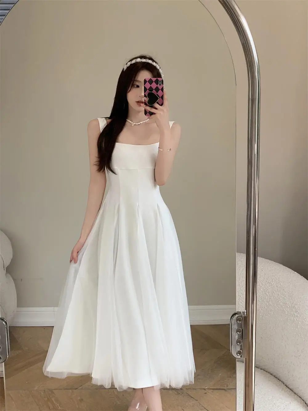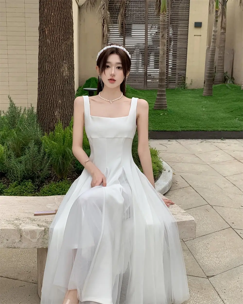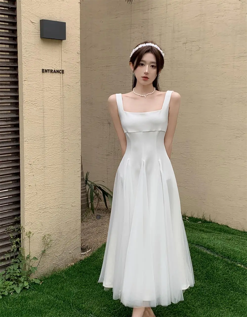 KYLETHOMASW - Summer Spring Fairy Womens Dresses Elegant Mesh Patchwork Square Collar Sleeveless Evening Party Midi Dress Female Vestidos Robe