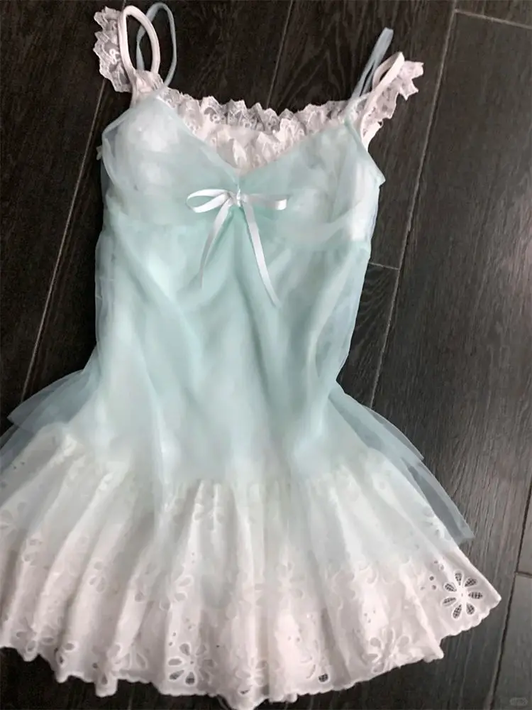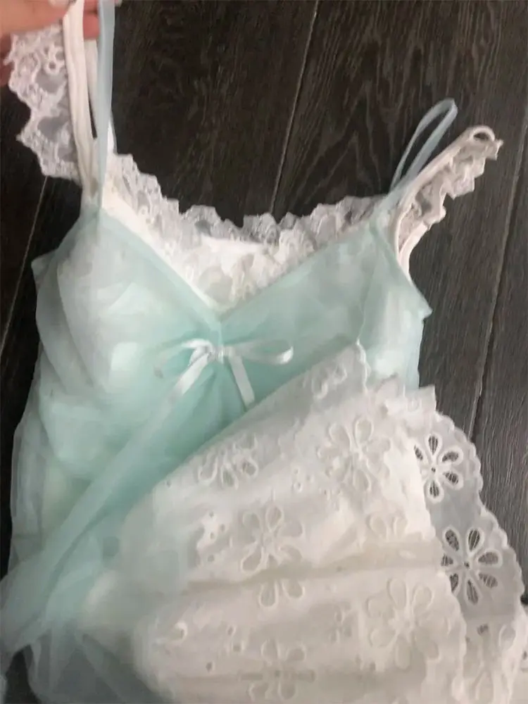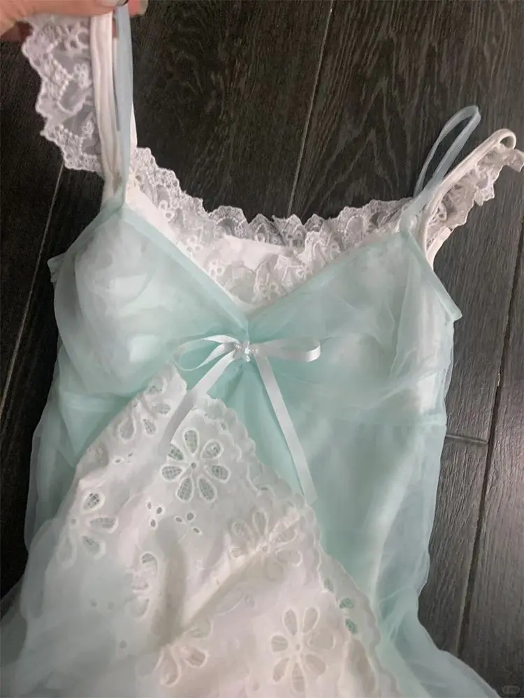 KYLETHOMASW - Summer Sweet Bow Hollow Out Vest Dresses+ Y2k Lace Patchwork Slim Waist Camisole Dress 2025 Summer New Two Piece Sets