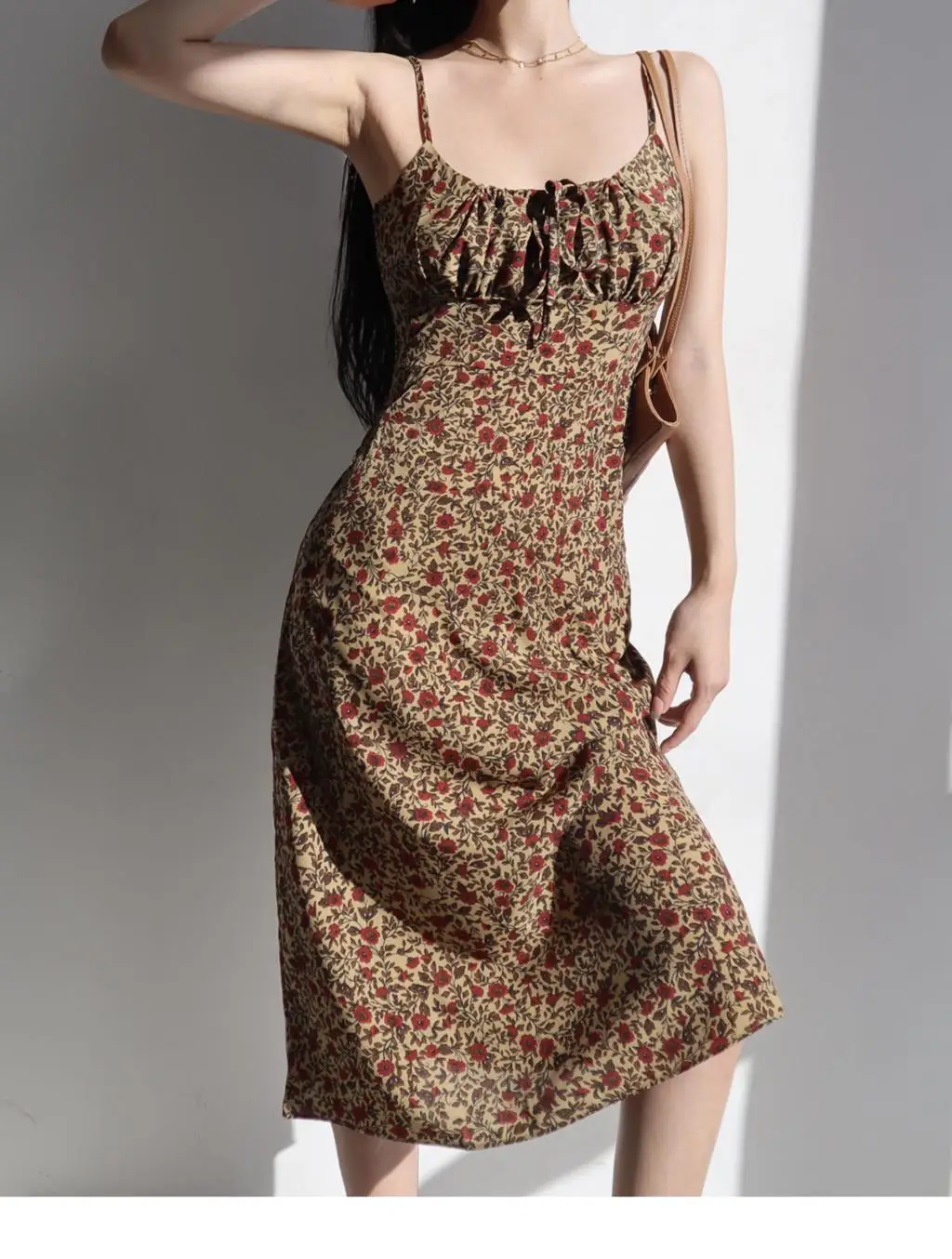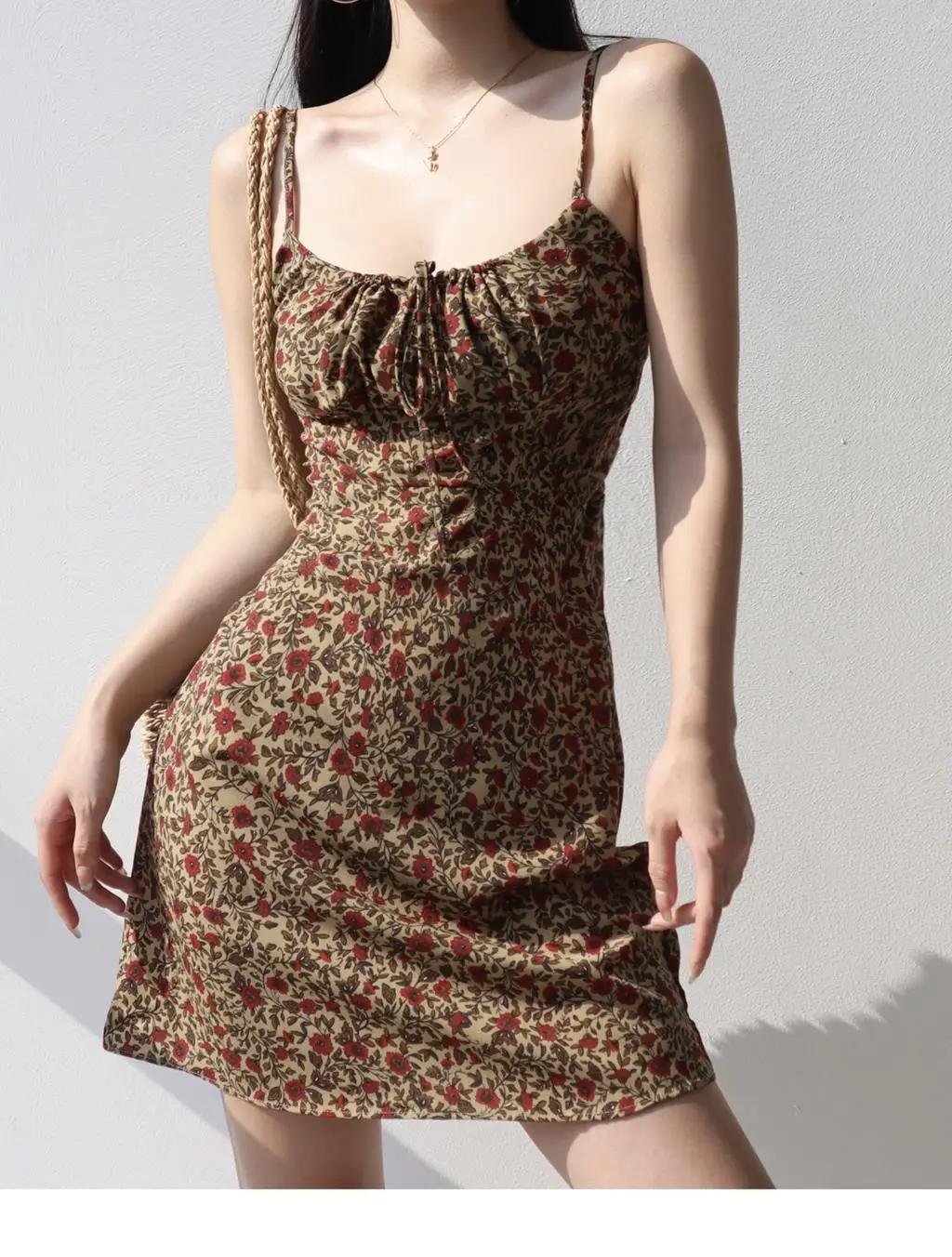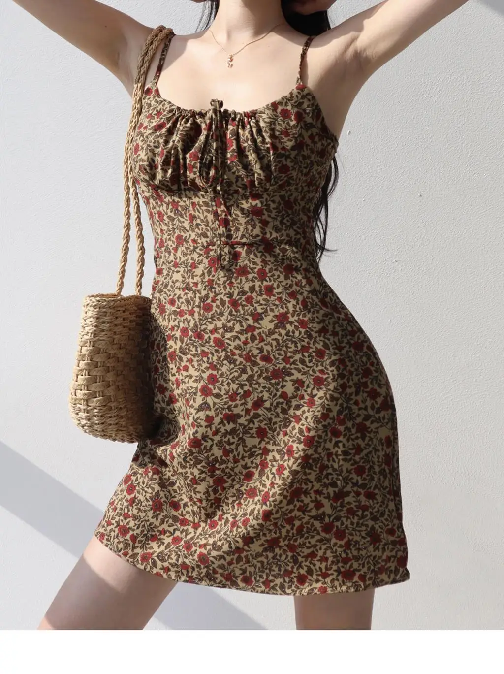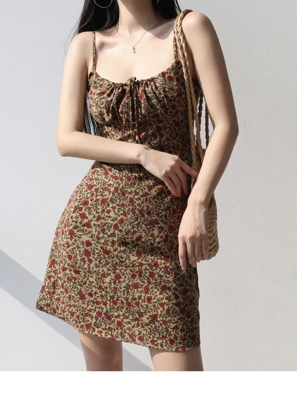Kylethomasw Summer Vintage Floral Print Dresses Women Casual Strap Lace-up Beach Holiday Vestidos Female Backless Sleeveless Clothes