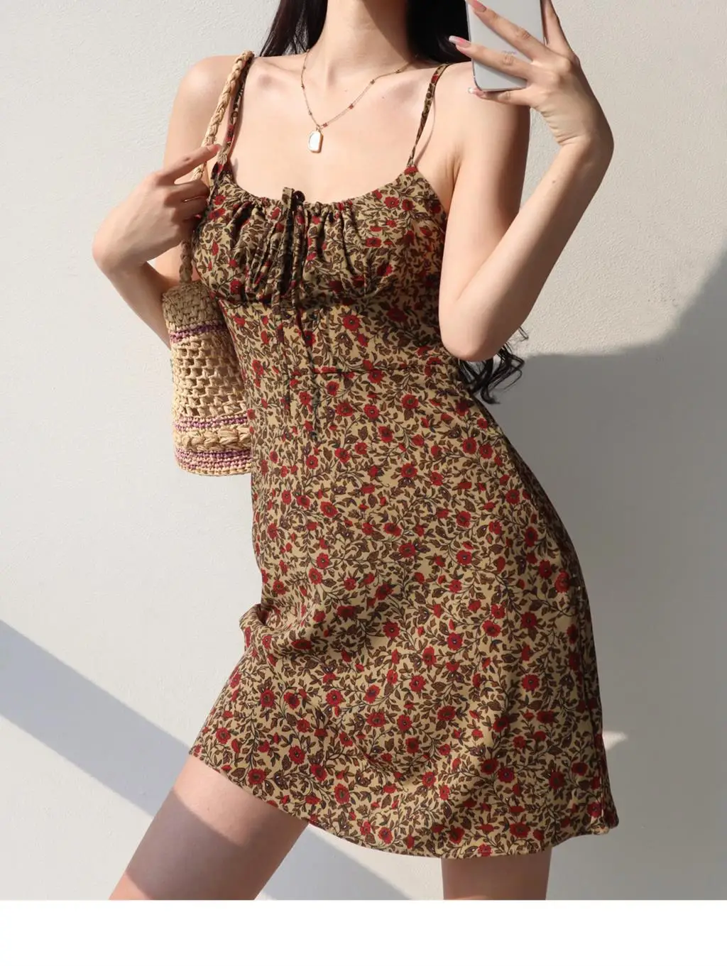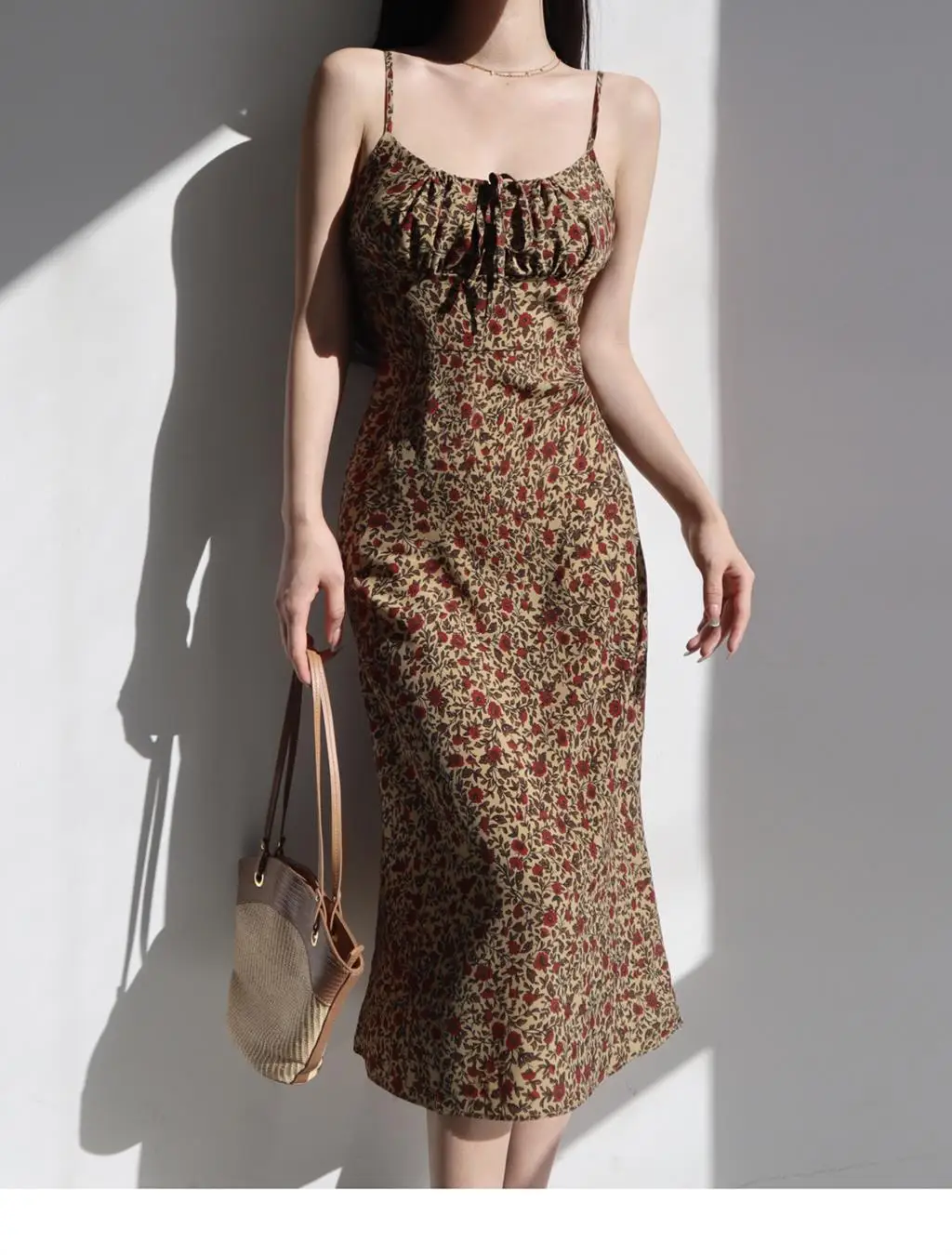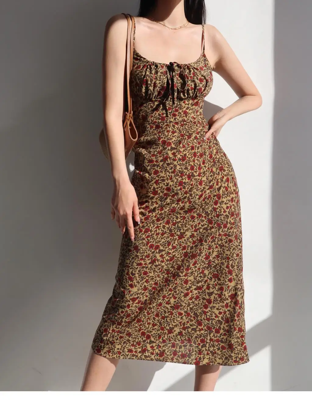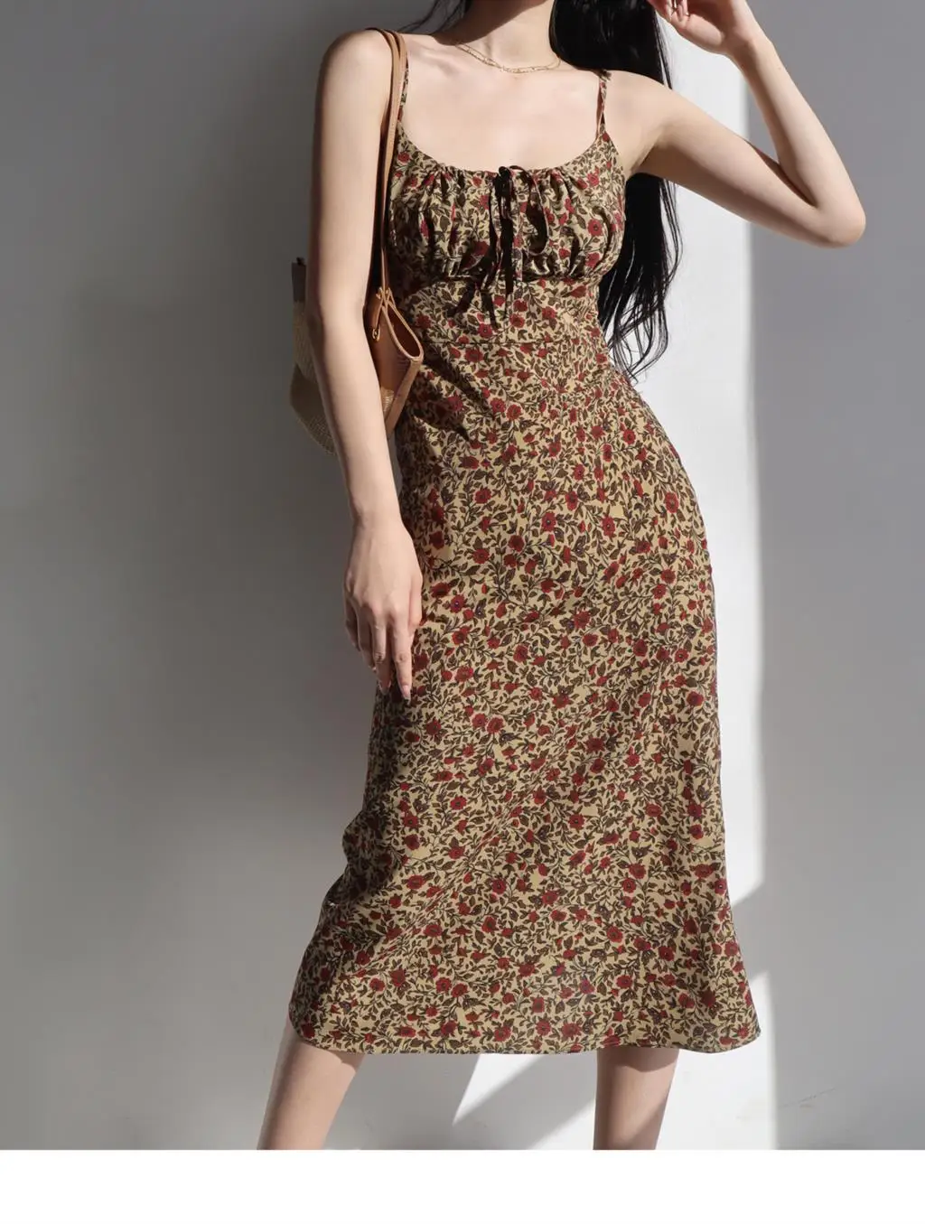 Kylethomasw Summer Vintage Floral Print Dresses Women Casual Strap Lace-up Beach Holiday Vestidos Female Backless Sleeveless Clothes