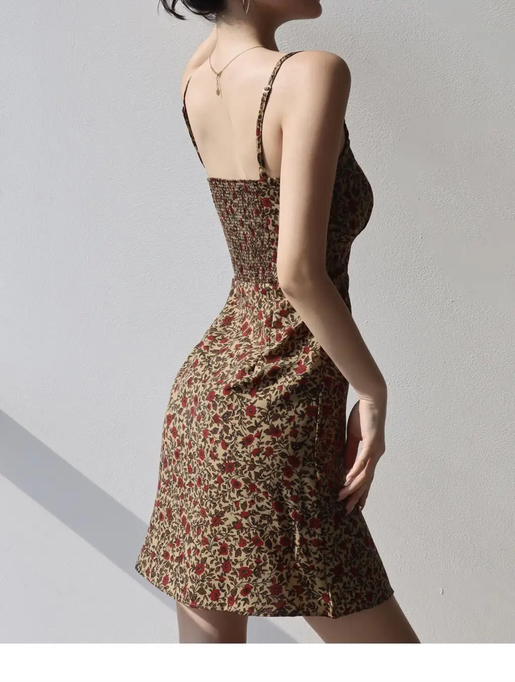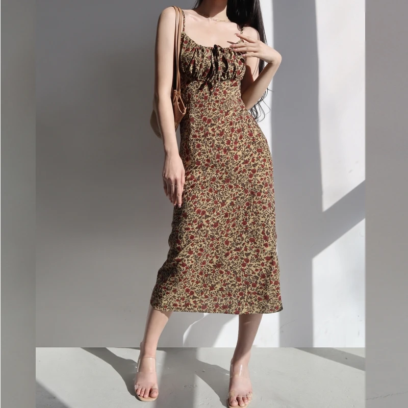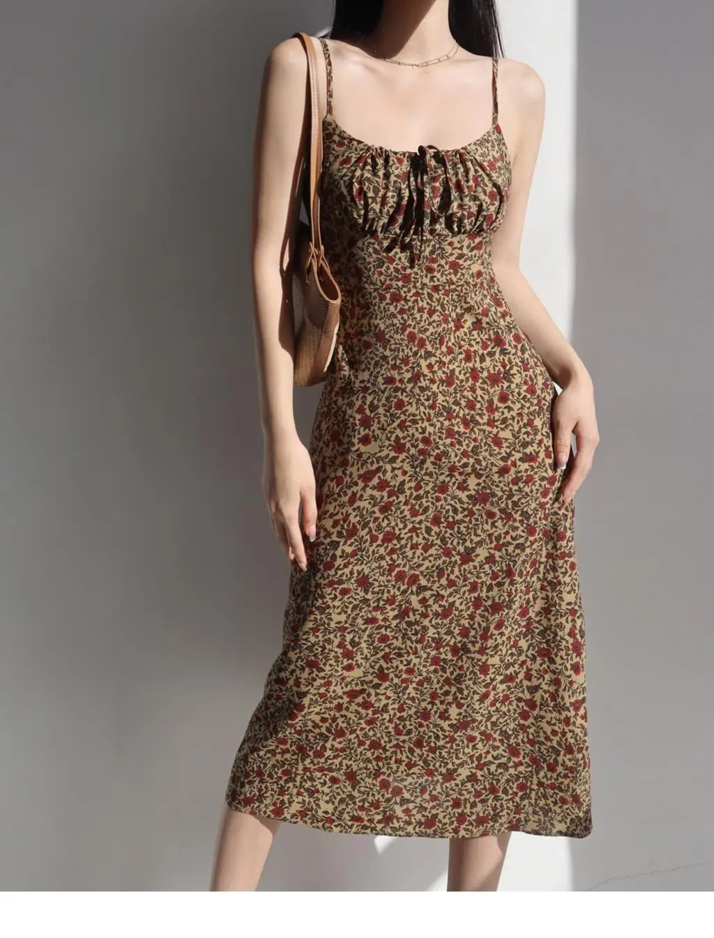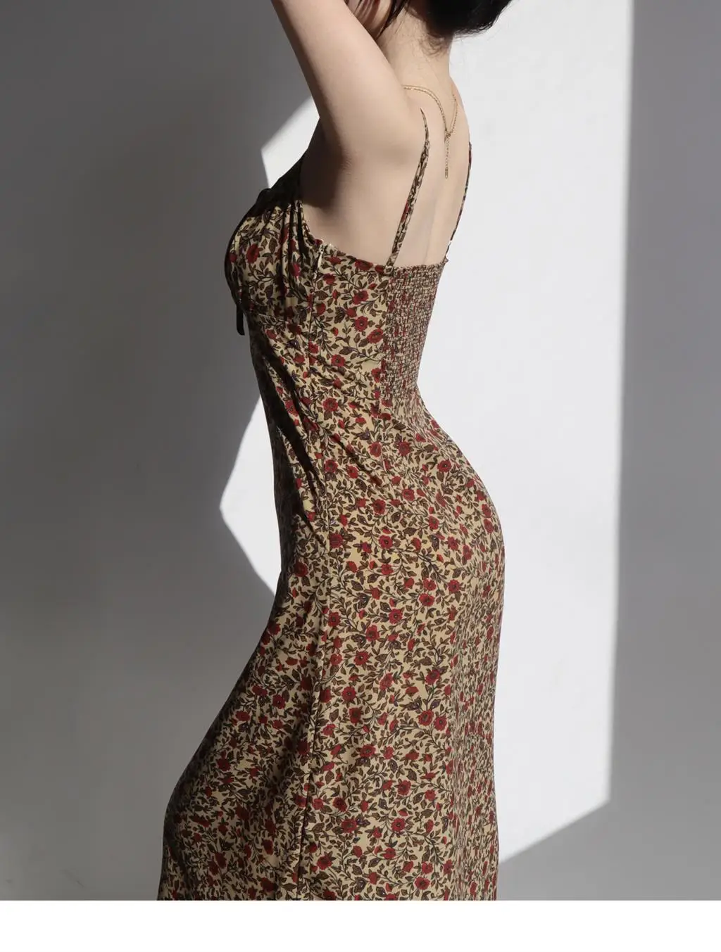 Kylethomasw Summer Vintage Floral Print Dresses Women Casual Strap Lace-up Beach Holiday Vestidos Female Backless Sleeveless Clothes