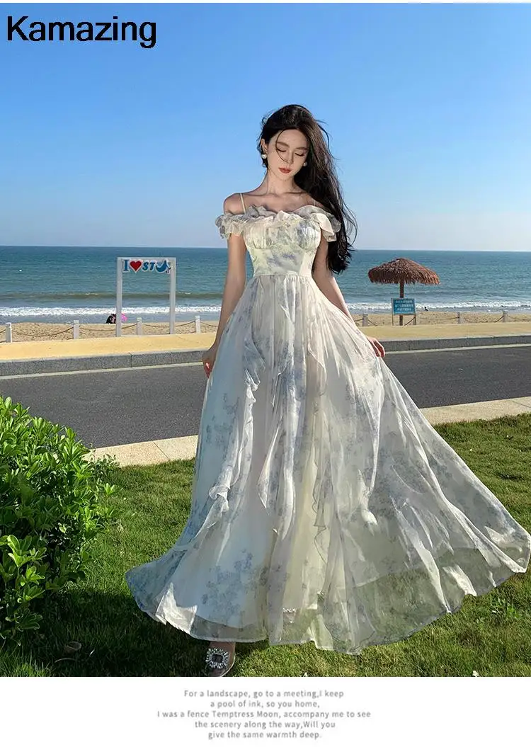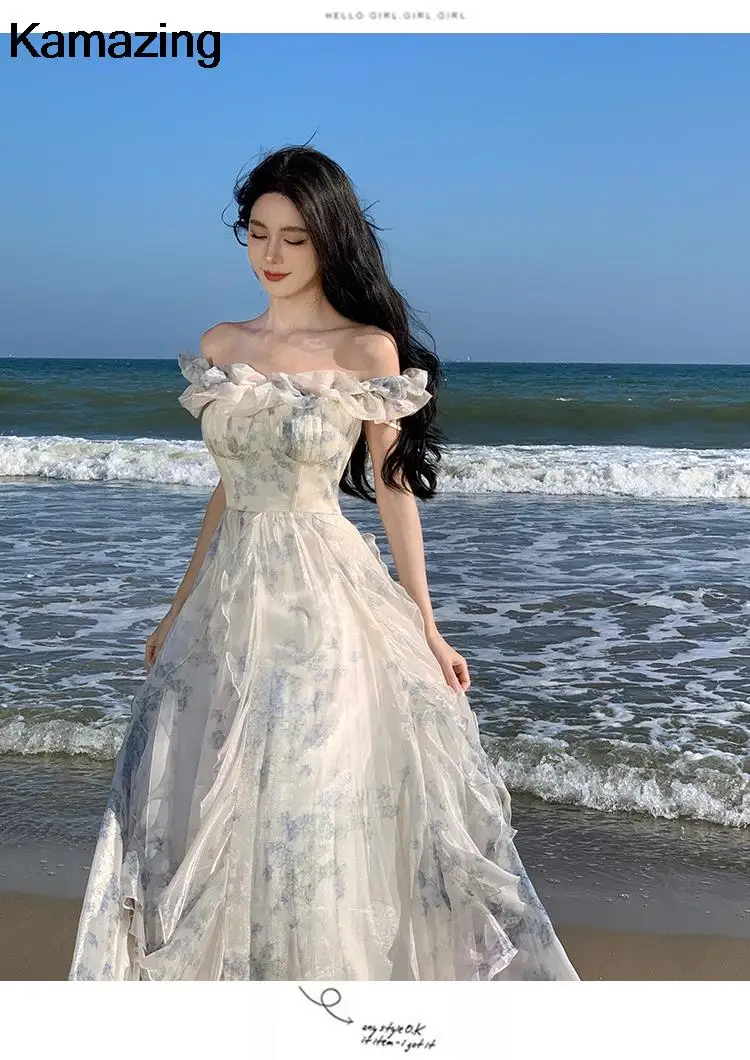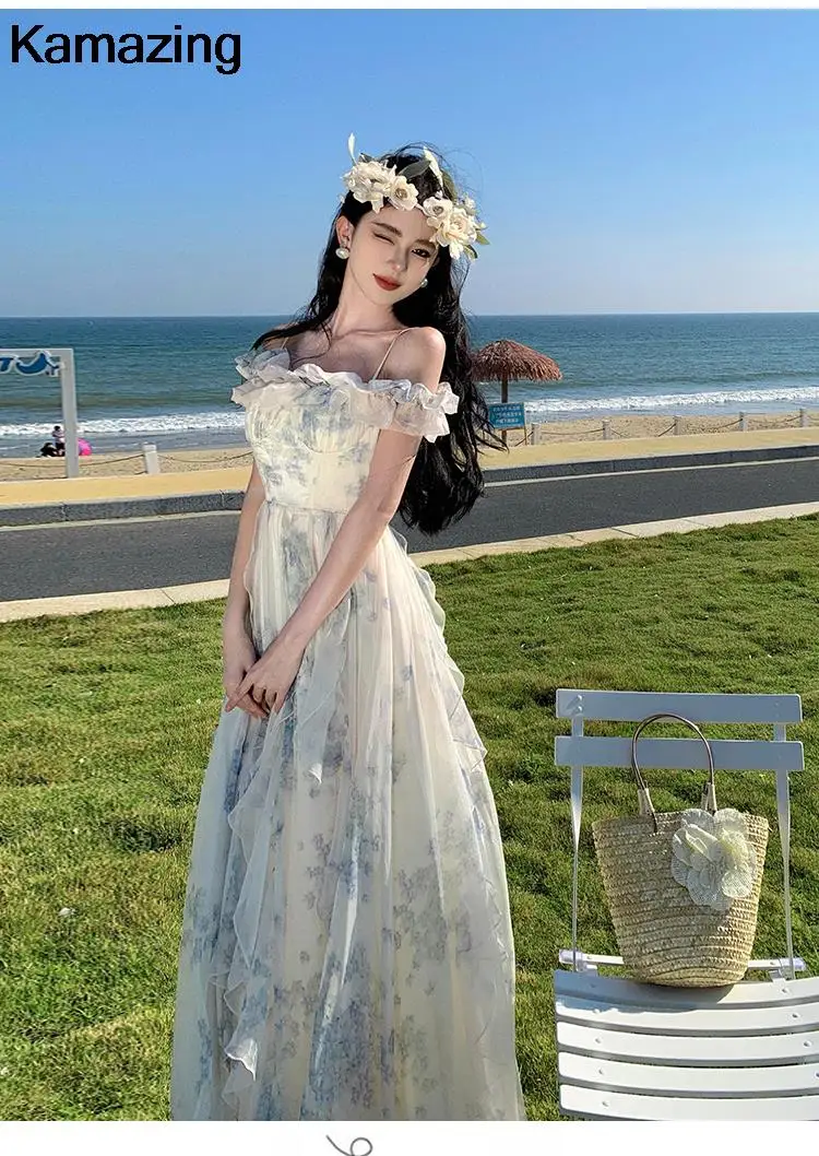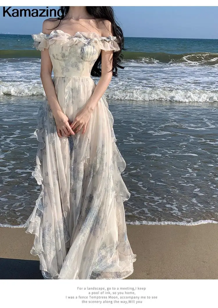 KYLETHOMASW - Summer Women Fashion Elegant Casual Floral Midi Dress Vintage Chic A-Line Ruffles Beach Holiday Clothes Female Robe Vestidos New