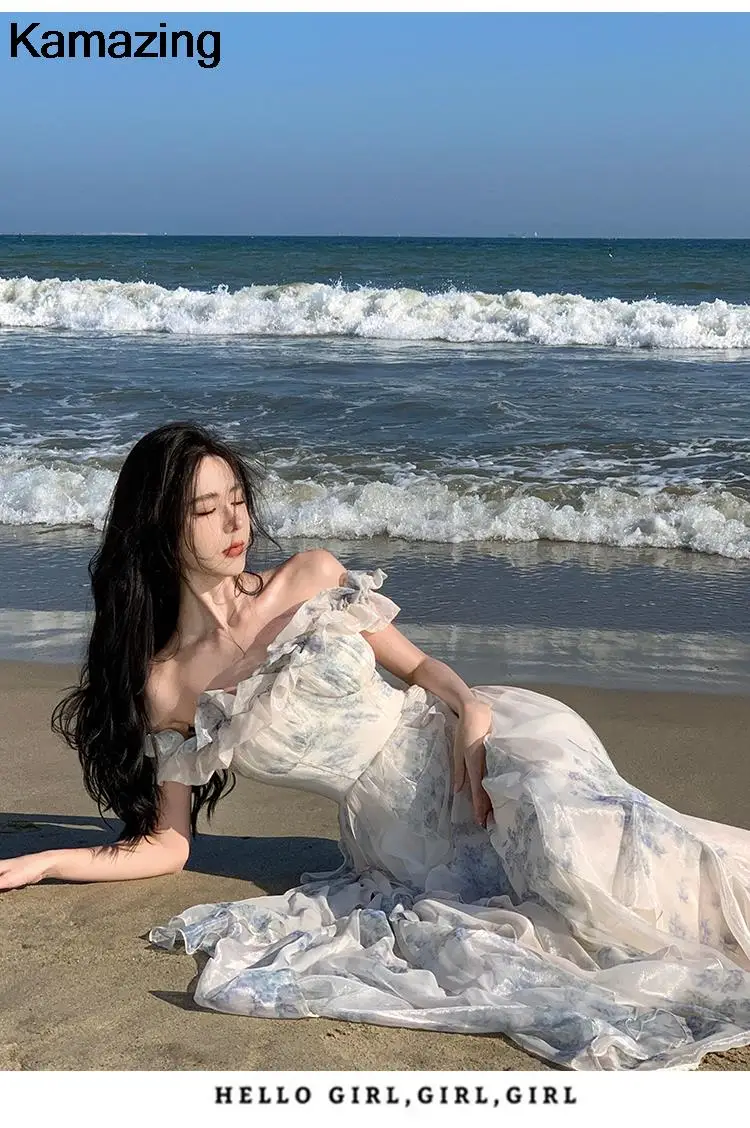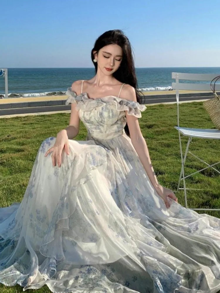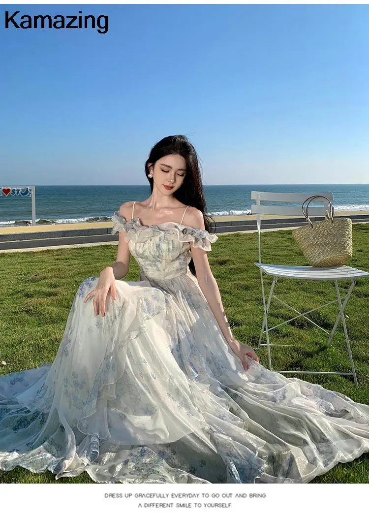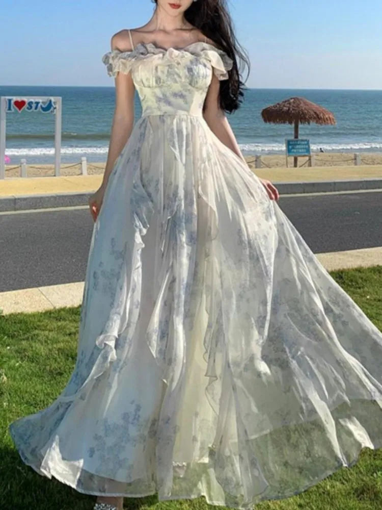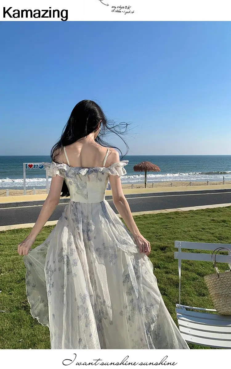 KYLETHOMASW - Summer Women Fashion Elegant Casual Floral Midi Dress Vintage Chic A-Line Ruffles Beach Holiday Clothes Female Robe Vestidos New