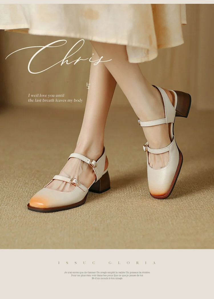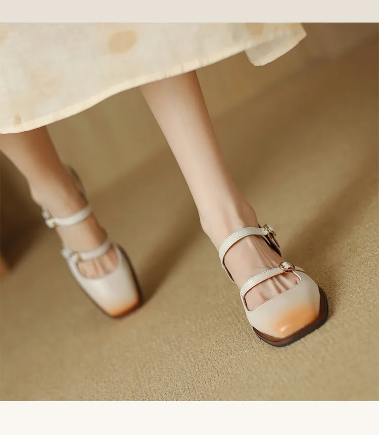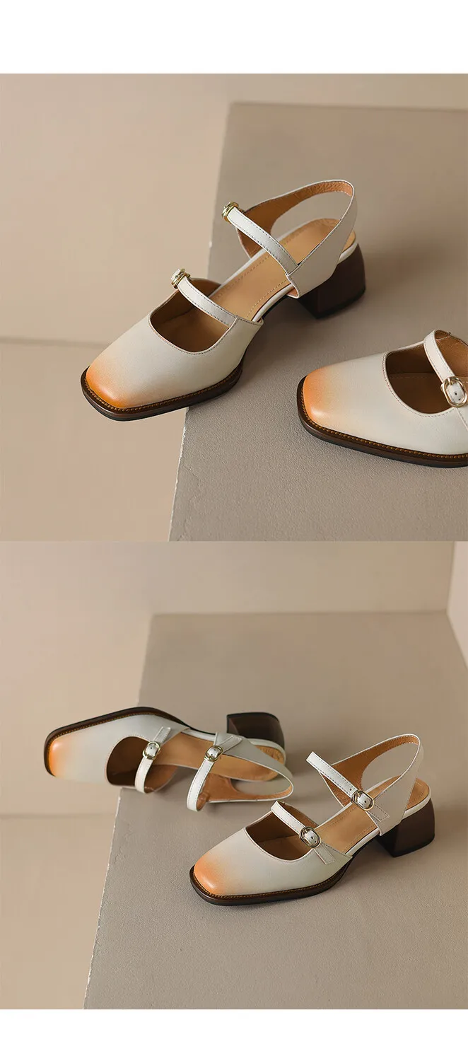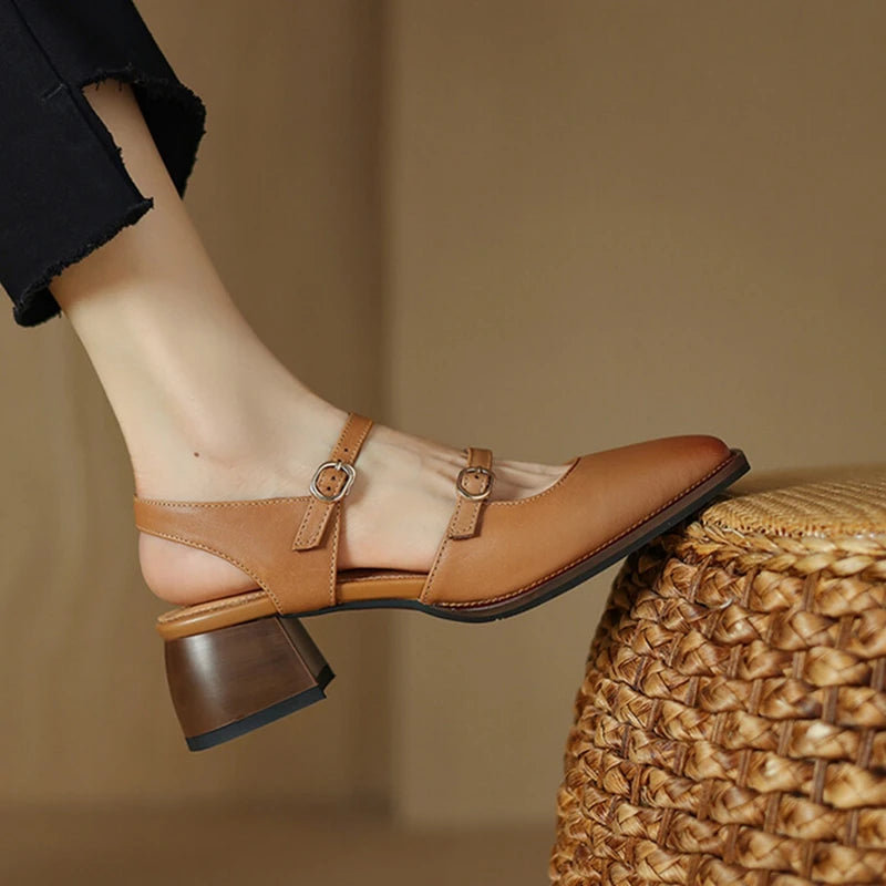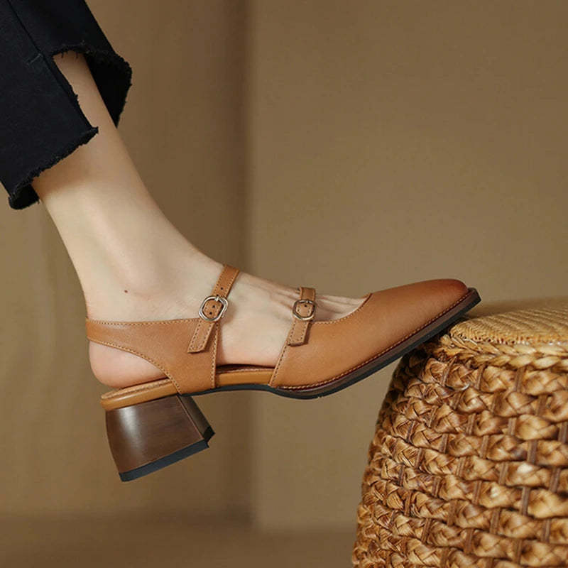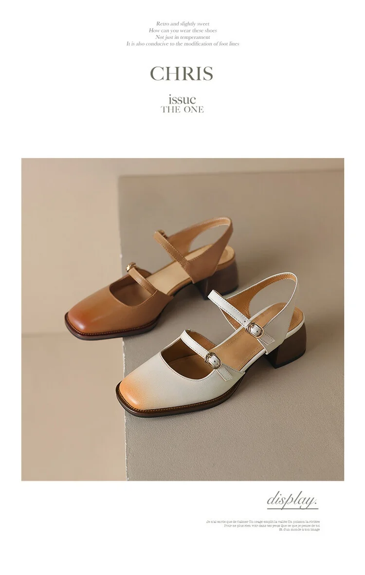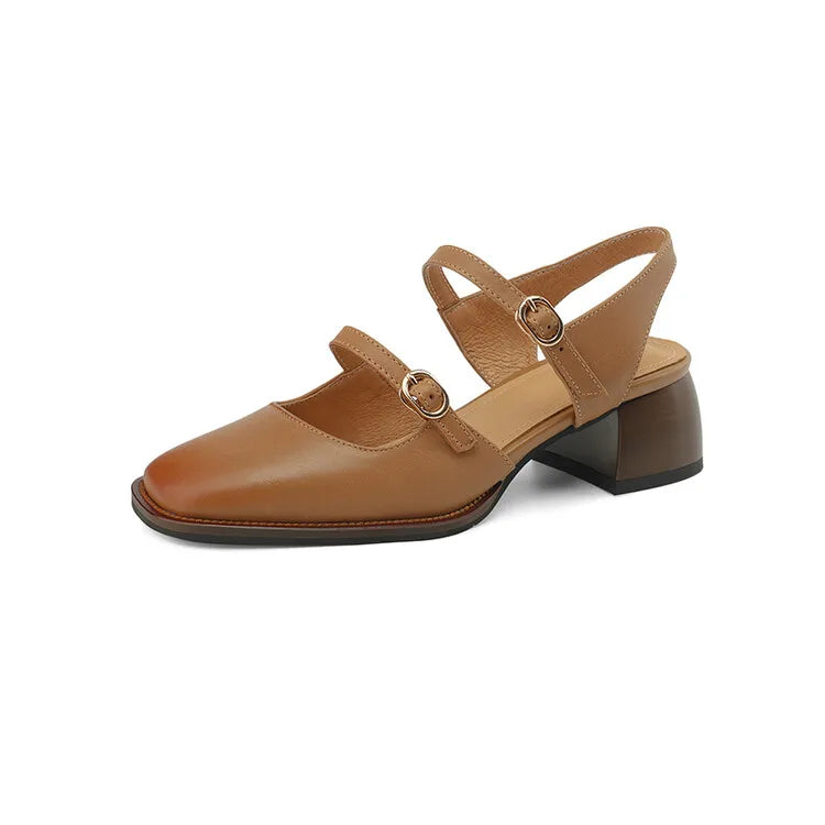 Kylethomasw Summer Women Sandals Genuine Leather Shoes for Women Square Toe Chunky Heel Plus Size Shoes Cover Toe Slingback Designer Sandals