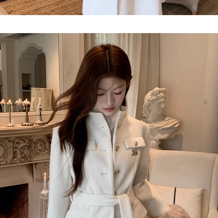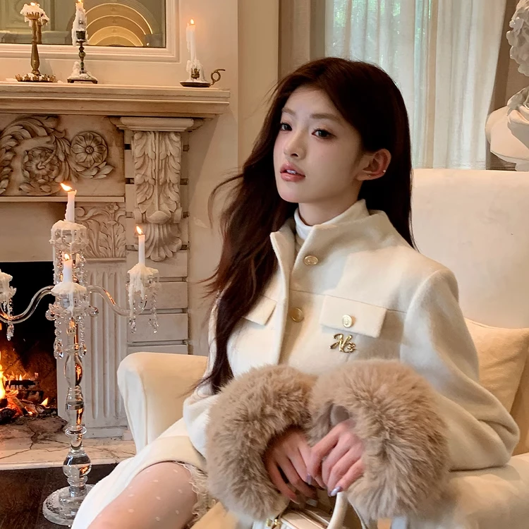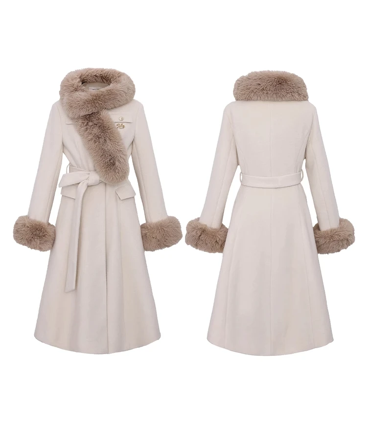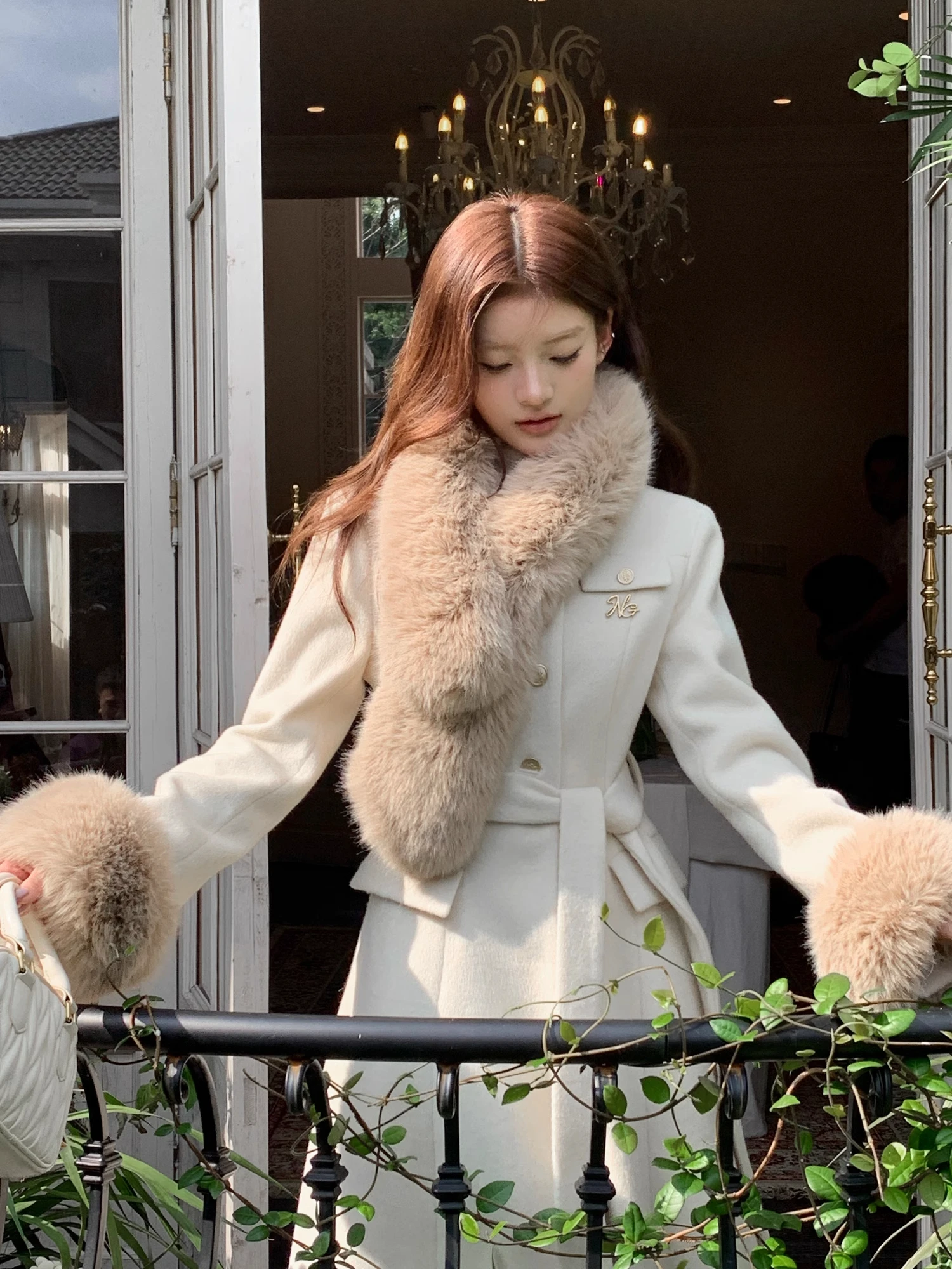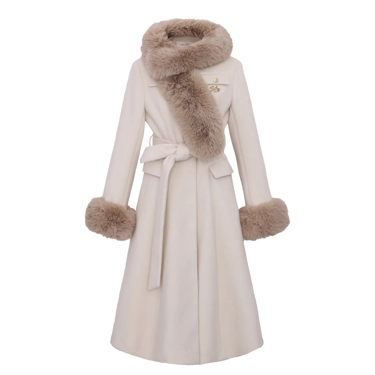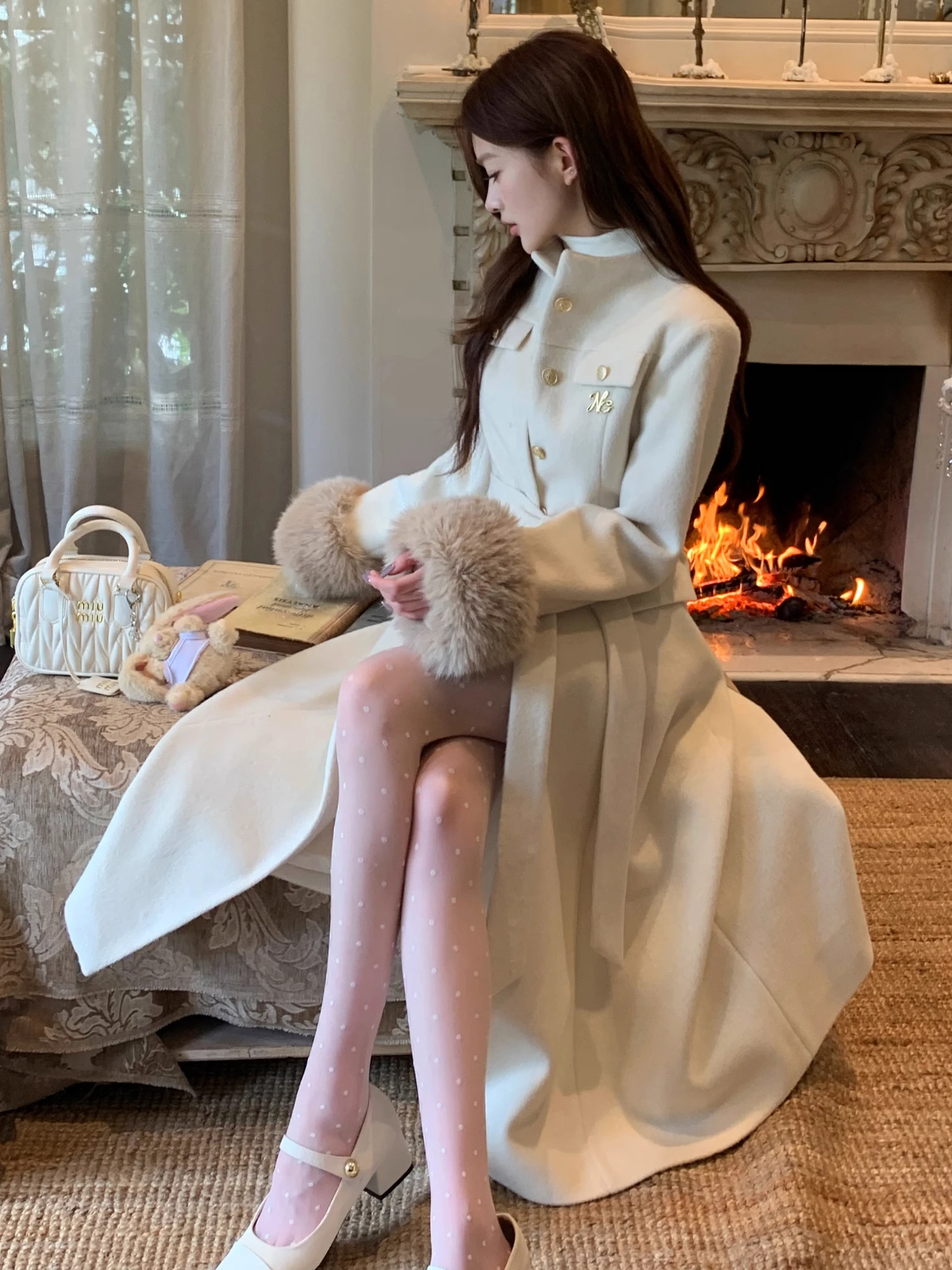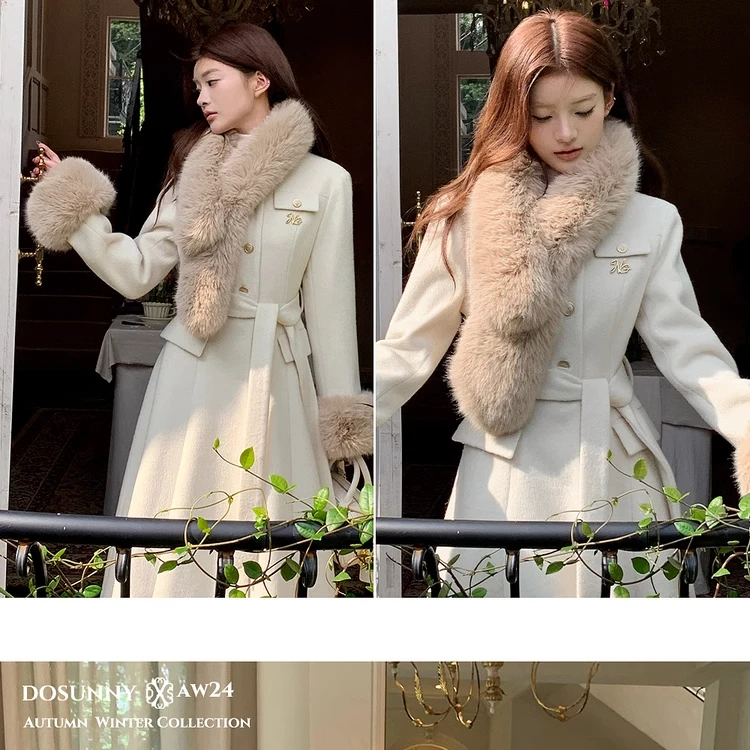 KYLETHOMASW - Sweet Hot Girl Large Fur Collar Woolen Coat Women's Winter Slim Single Breasted Belt Long-sleeved Coat Fashion Female Clothes