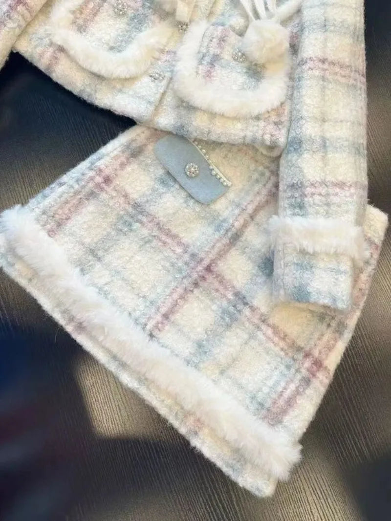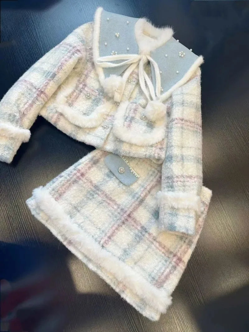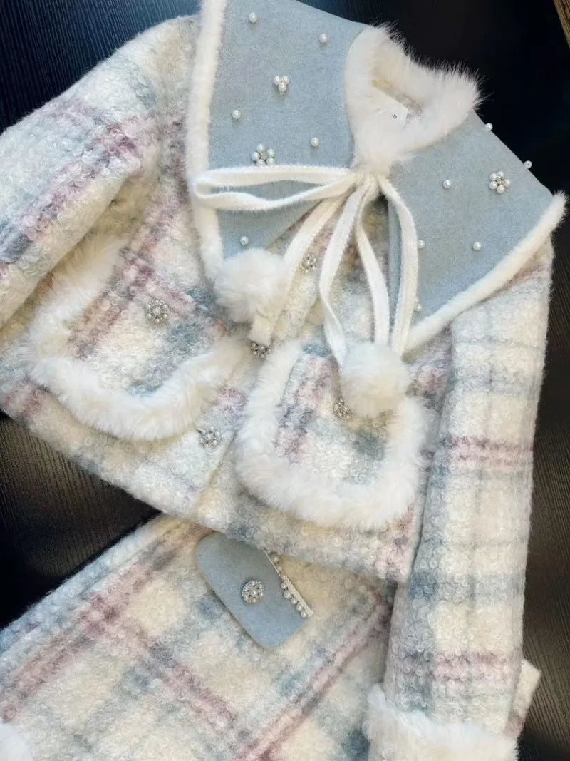 KYLETHOMASW - Sweet Hot Girl Suit Women's Autumn and Winter Long-sleeved Cotton Padded Coat High Waist A-line Skirt Fashion Two-piece Set
