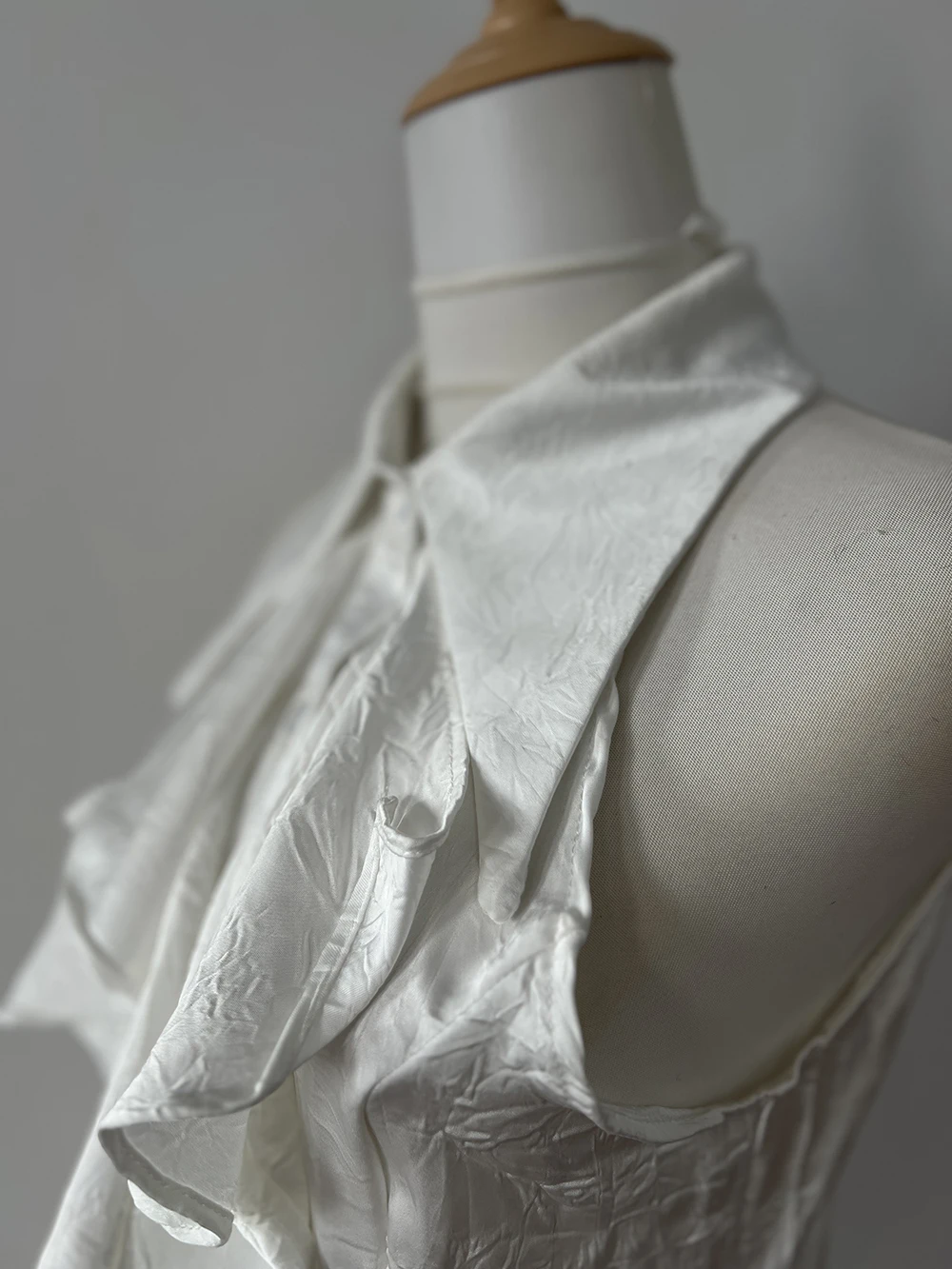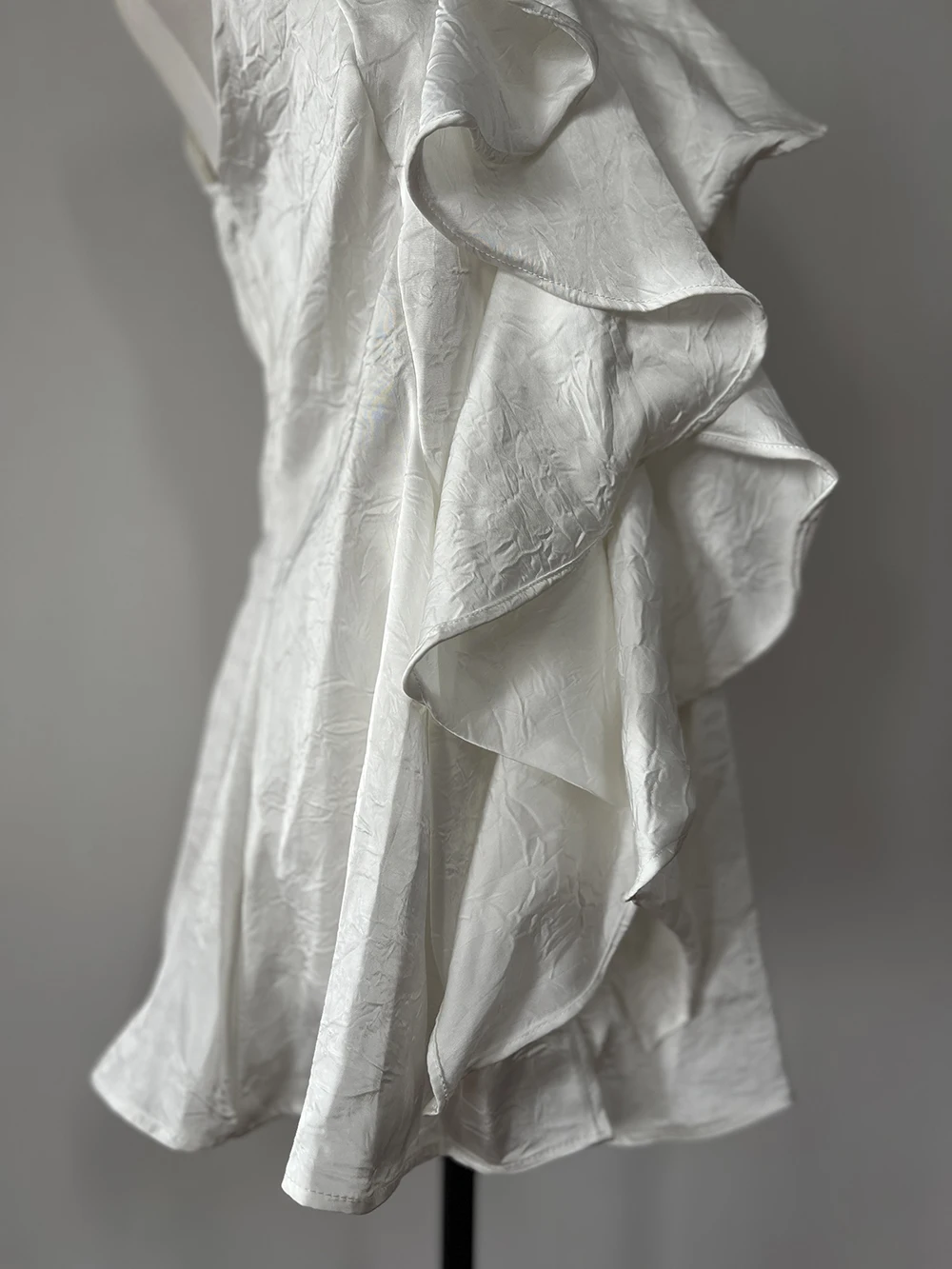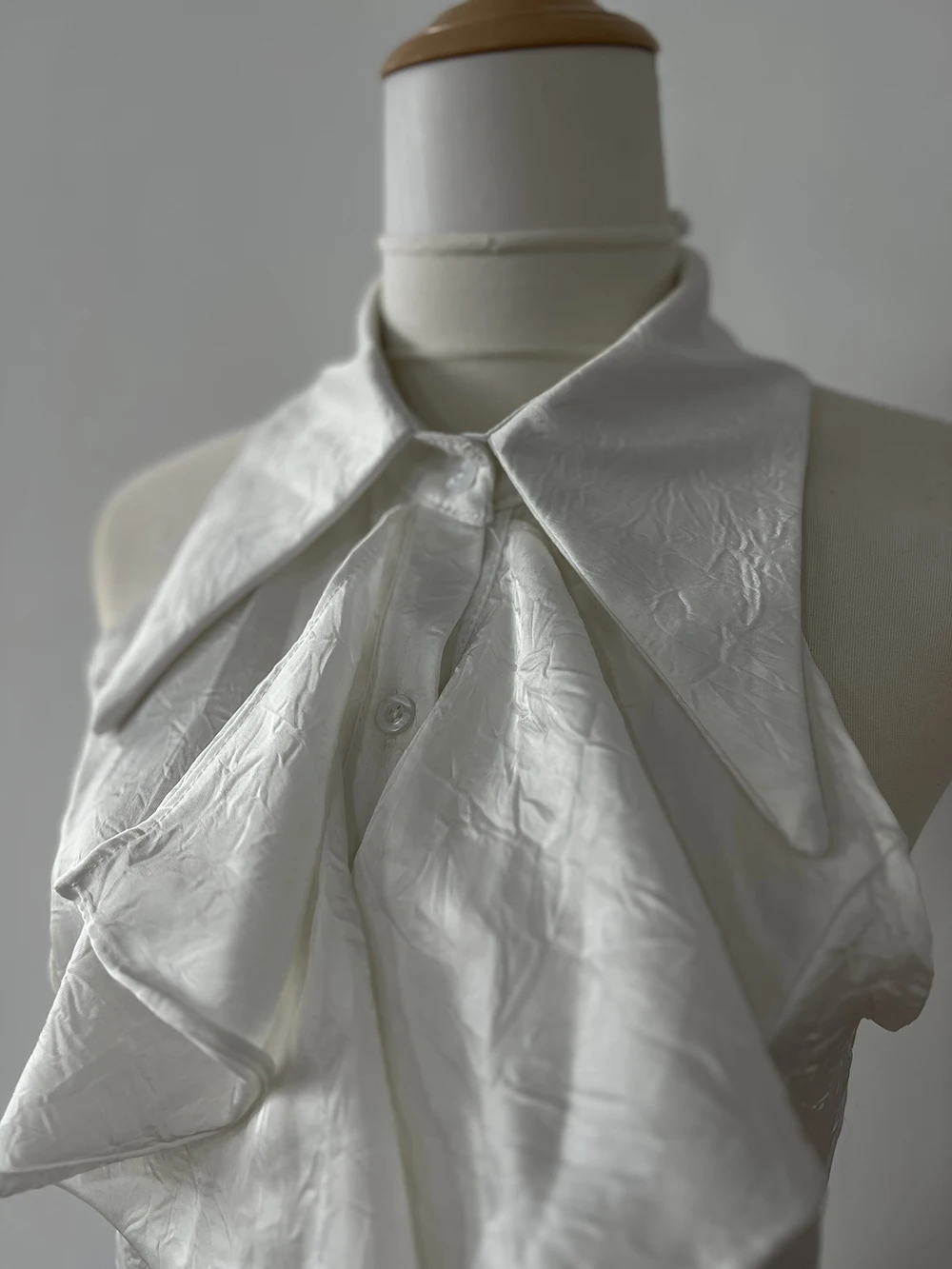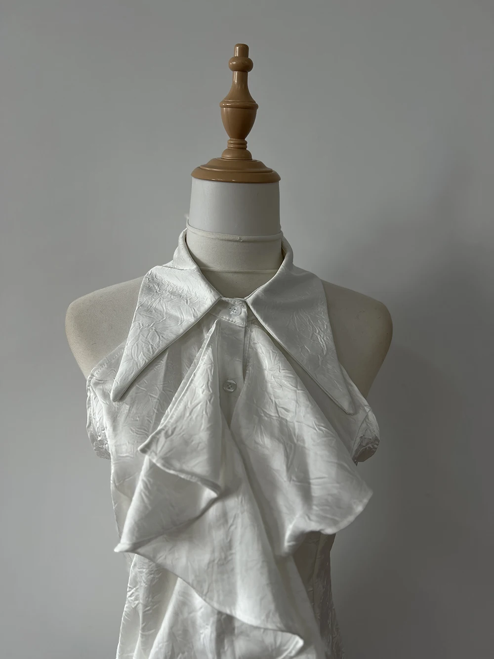 KYLETHOMASW - White Ruffle Edge Polo Neck Sleeveless Shirt Women's Top Summer French Style Mid length Waist Slim Sexy Blouses Women Clothing