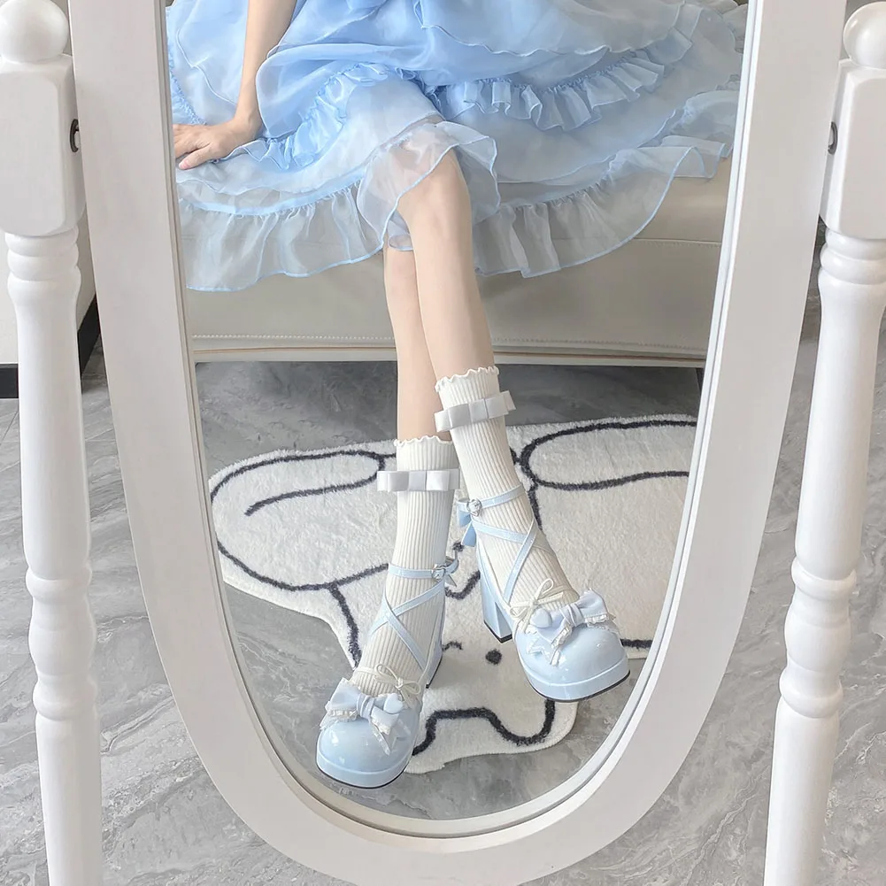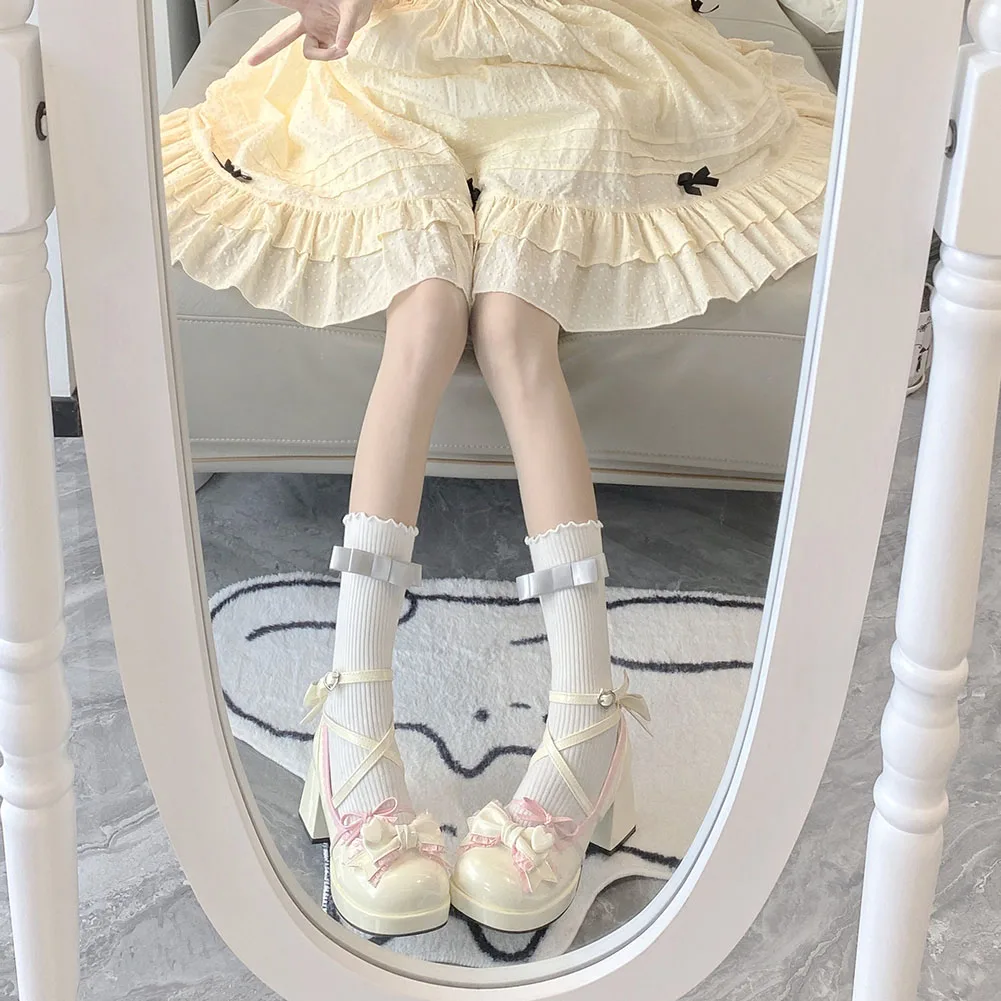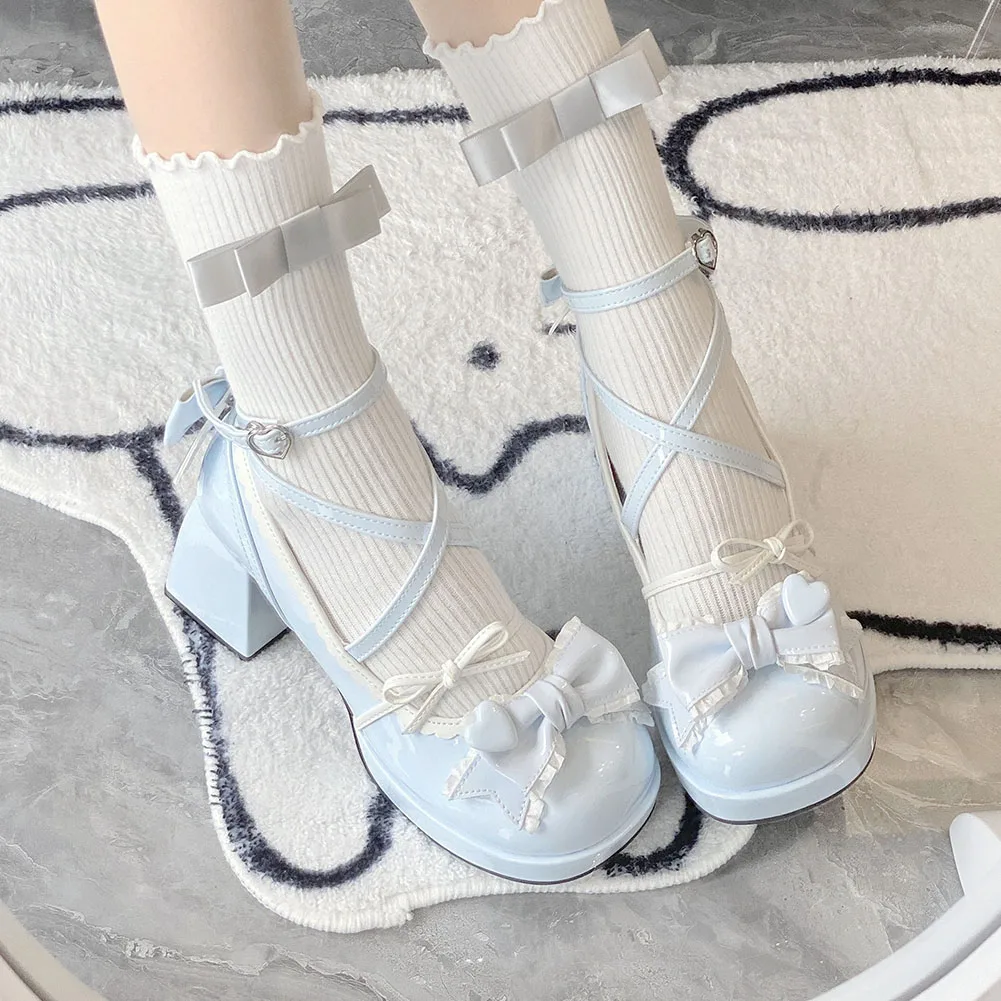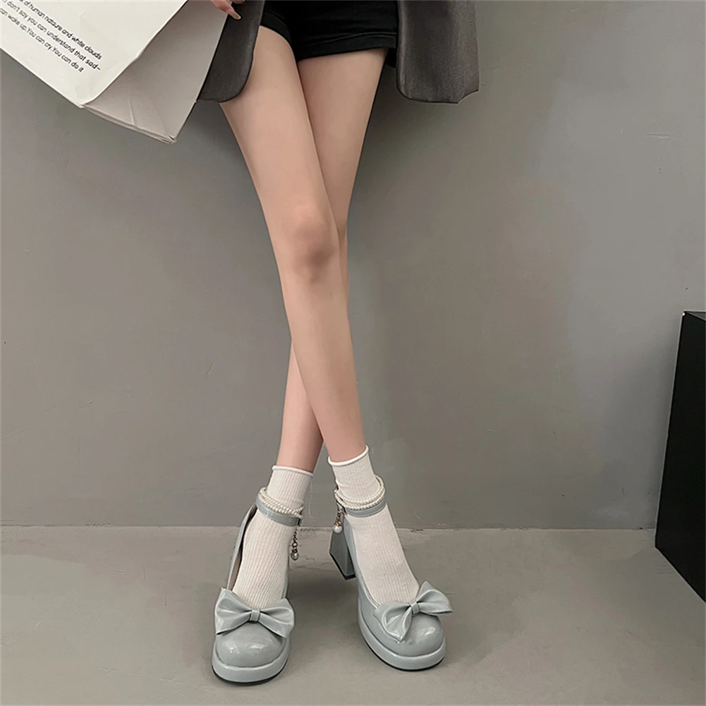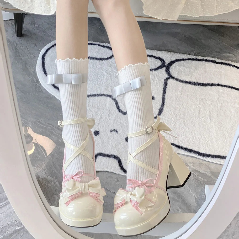 KYLETHOMASW - Women Lolita Bow Bow Decor Pumps Platform Chunky High Heels Ankle Strap Sweet Cute Elegant Pumps For Girl Elegant Shoes