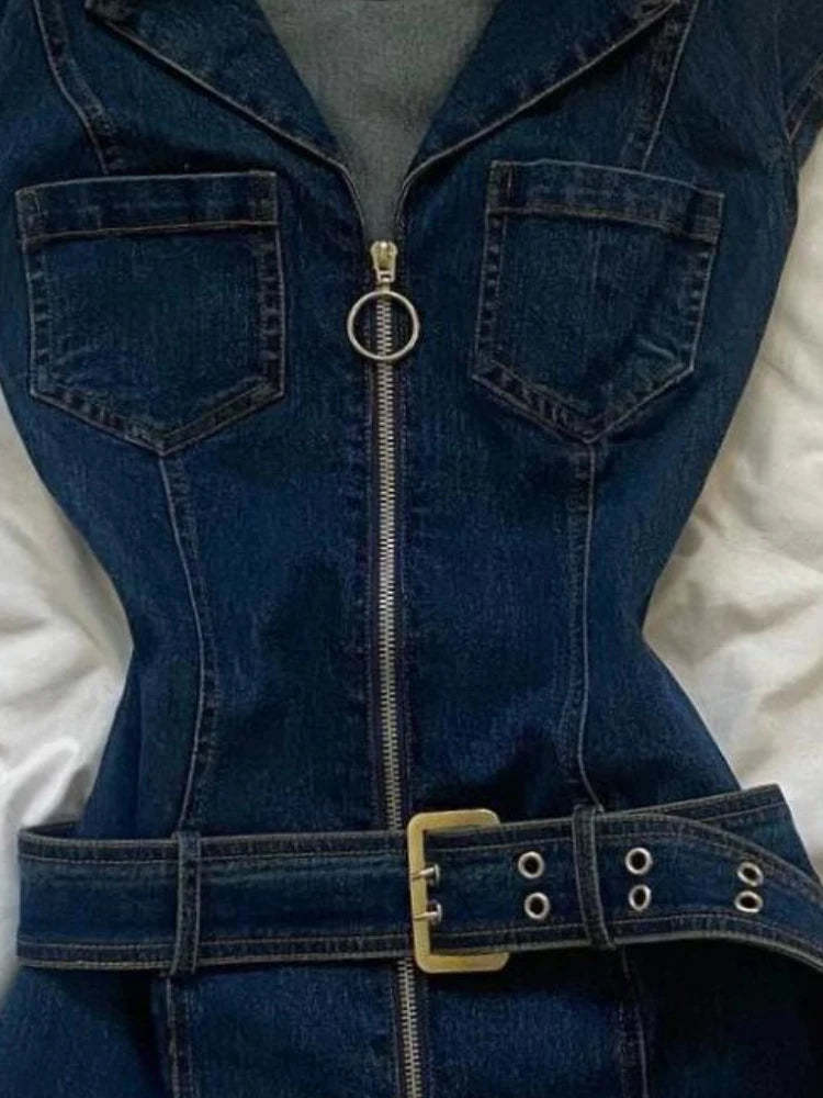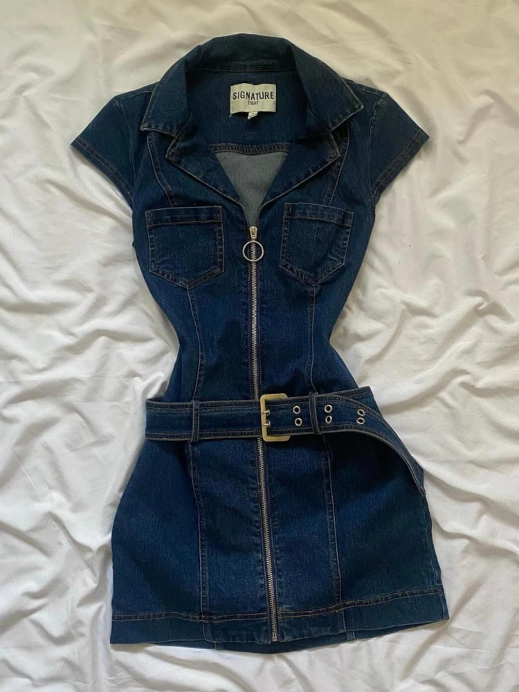 KYLETHOMASW - Y2k Denim Dresses Women Spring Summer American Retro Fashion Mini Dress Streetwear Solid Sexy Vestidos Mujer