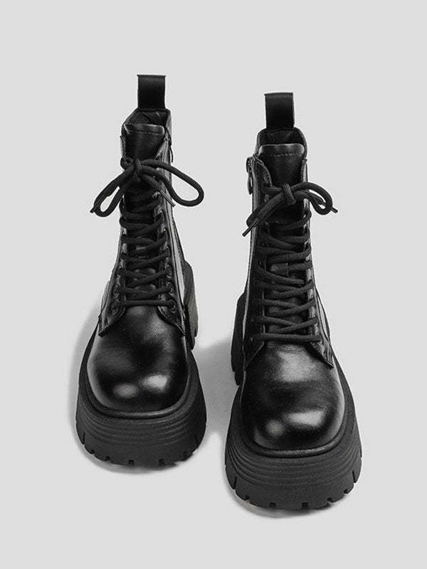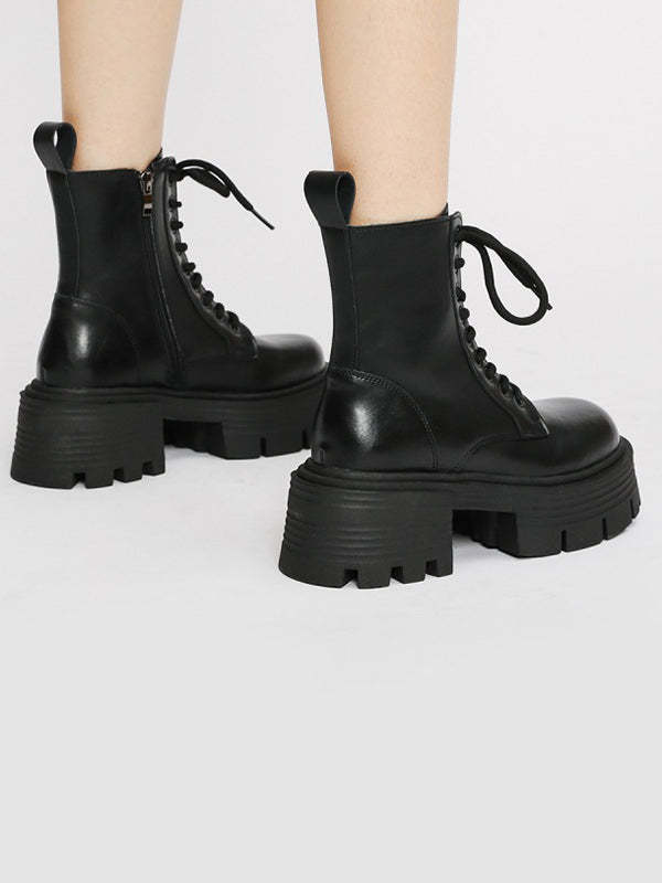 Lace-Up Round-Toe Split-Joint Boots Platform Shoes
