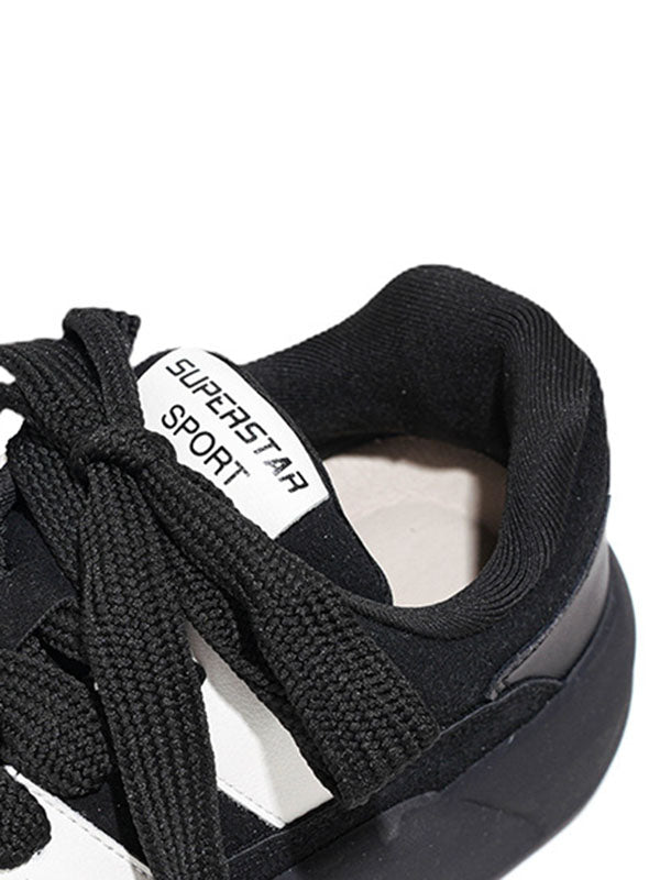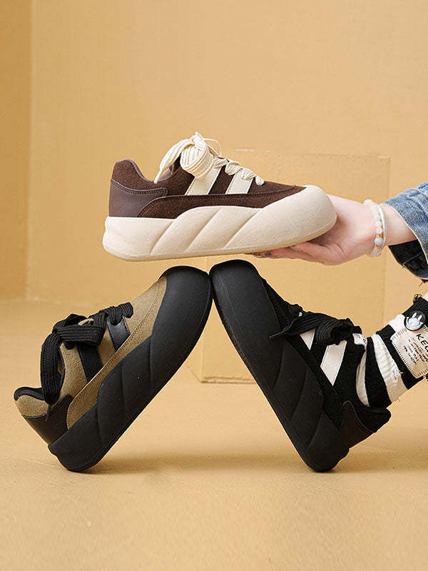 Lace-Up Round-Toe Split-Joint Flat Shoes