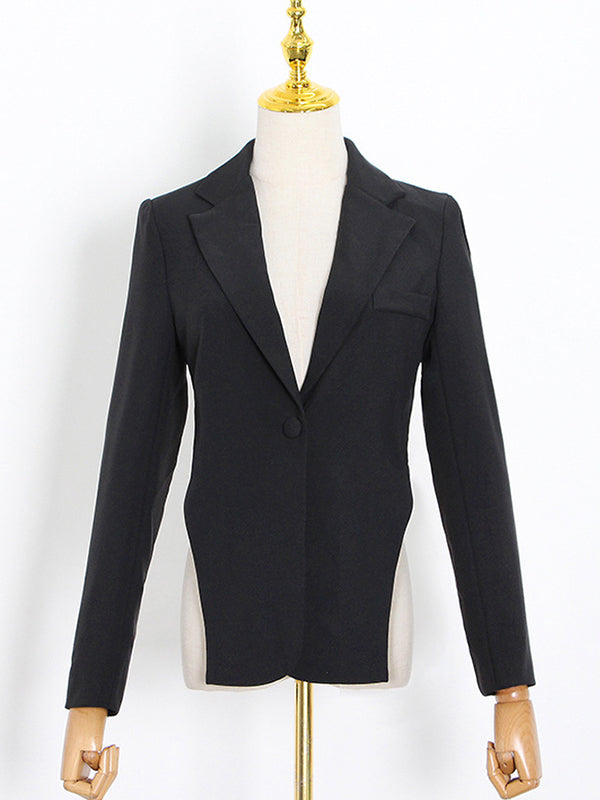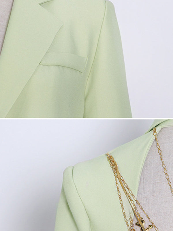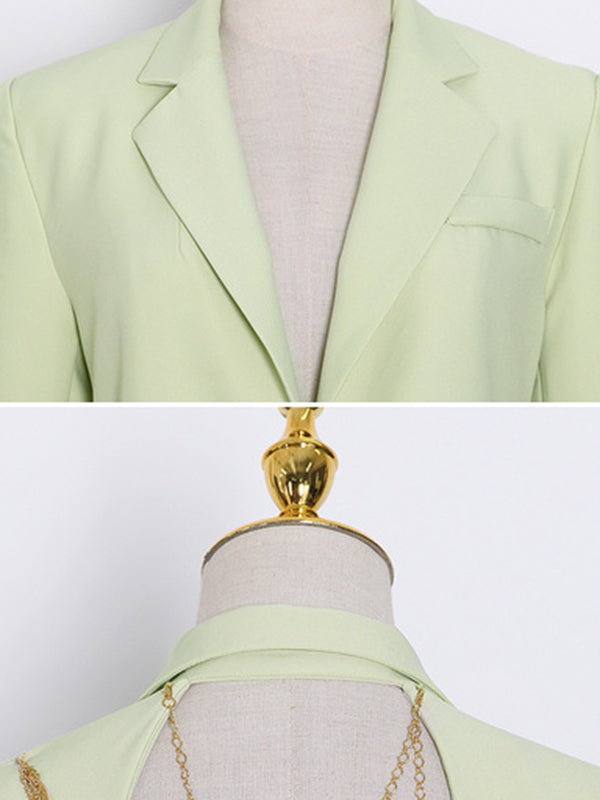 Long Sleeves Backless Chains Notched Collar Blazer Outerwear