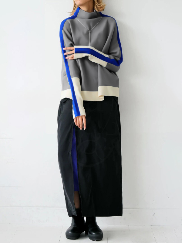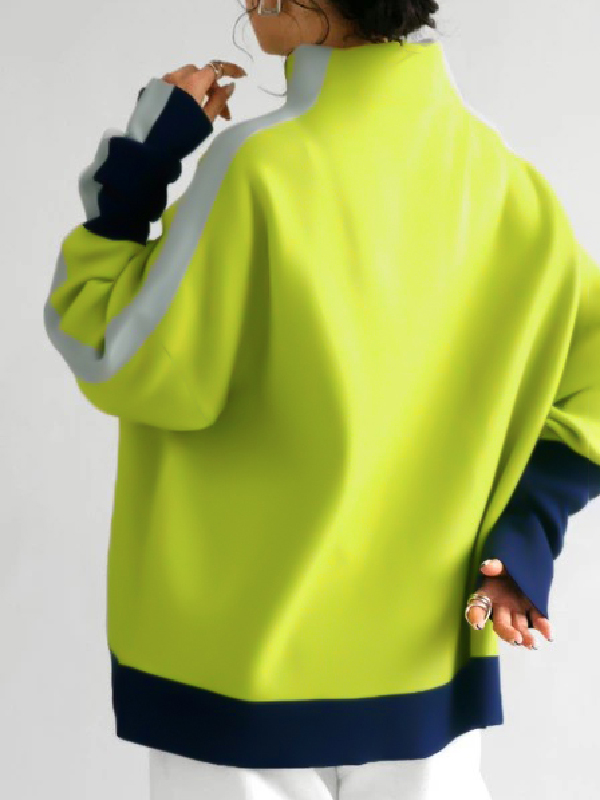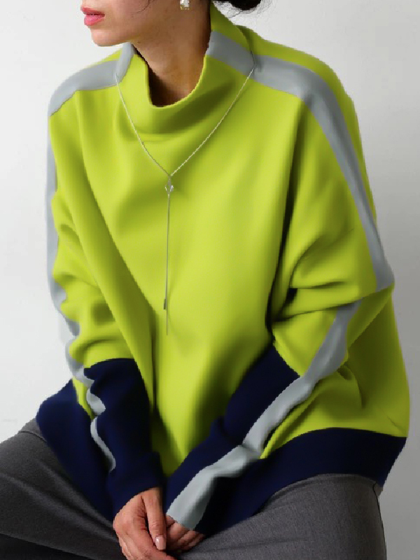 Long Sleeves Contrast Color Split-Joint High Neck Hoodies&Sweatshirt Sweatshirt Tops Tops
