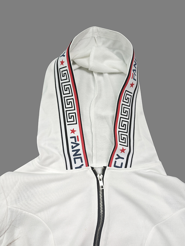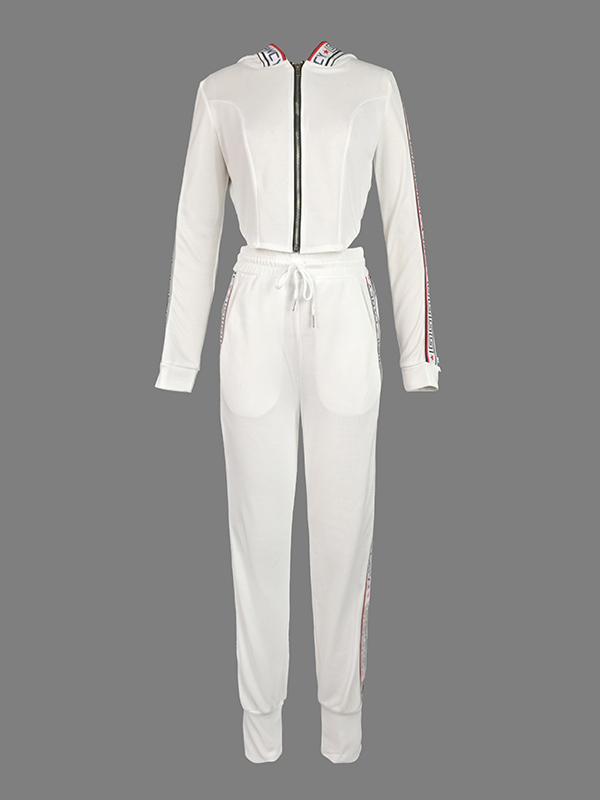 Long Sleeves Letter Print Split-Side Zipper Hooded Jackets+Pants Two Pieces Set