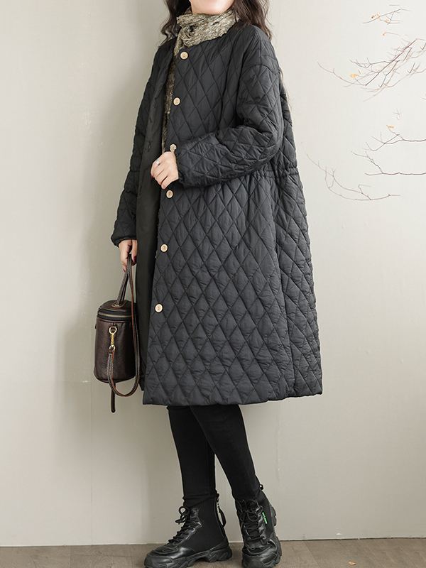 Long Sleeves Loose Buttoned Cotton-Padded Clothes Quilted Round-Neck Padded Coat Padded Coat/Down Coat