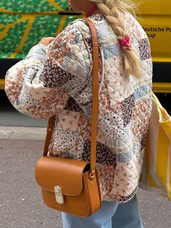 FeaturePockets , Flower Print , Buttoned , Quilted , Pleated , Split-joint