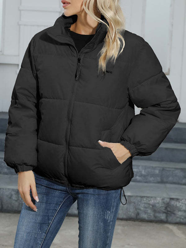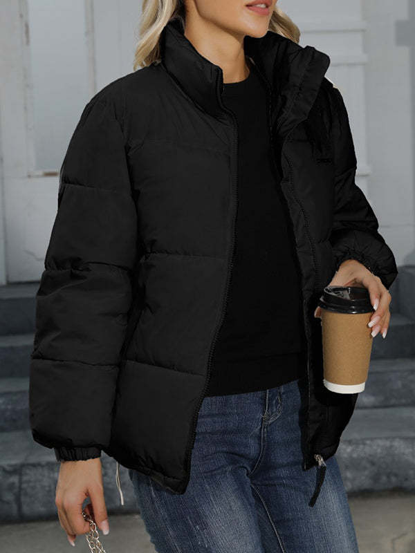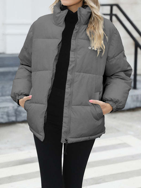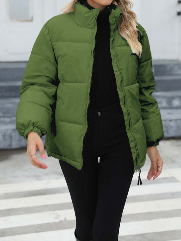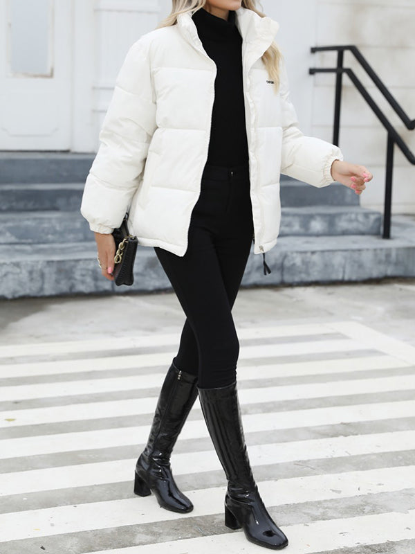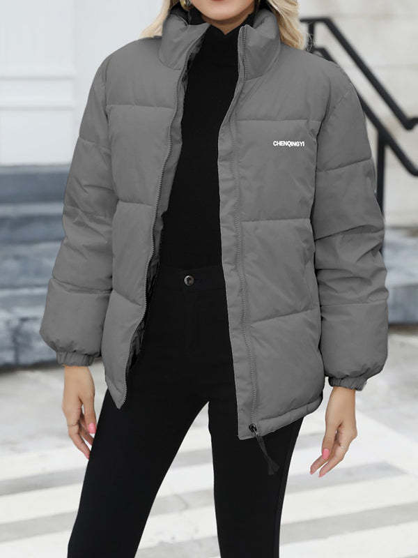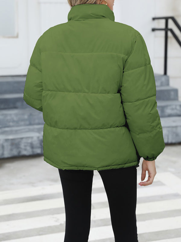 Long Sleeves Loose Keep Warm Quilted Solid Color Zipper High Neck Padded Coat