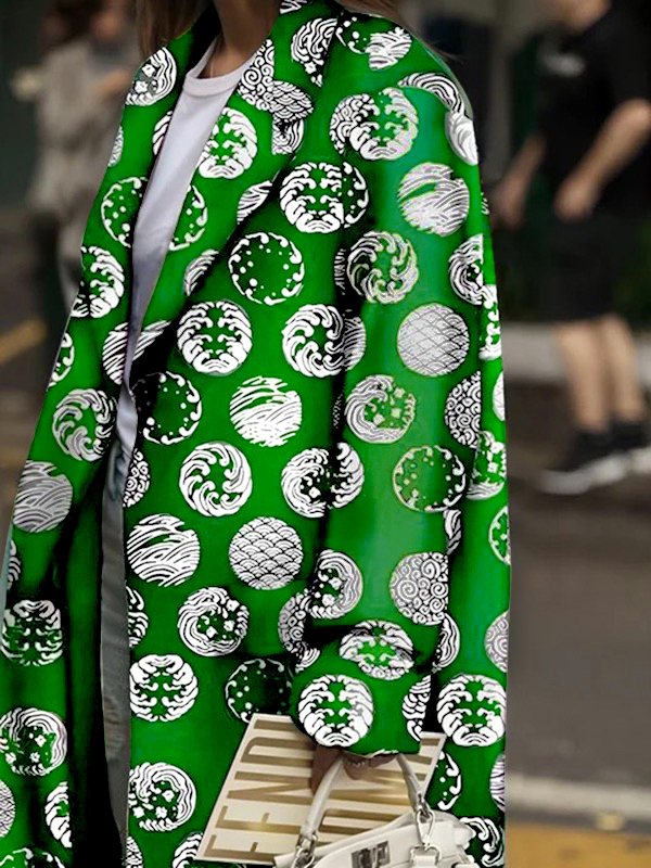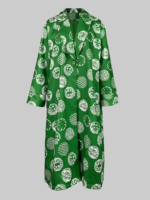 Long Sleeves Loose Pockets Printed Split-Joint Notched Collar Outerwear