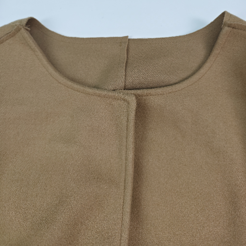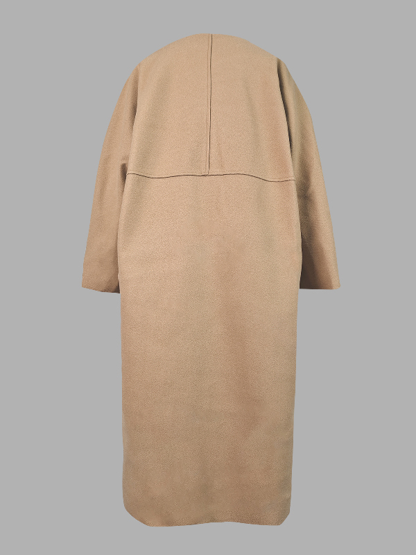 Long Sleeves Loose Solid Color Collarless Woolen Coat