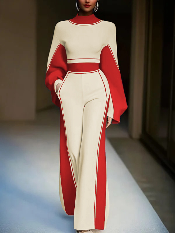 Long Sleeves Loose Striped High Neck T-Shirts Tops