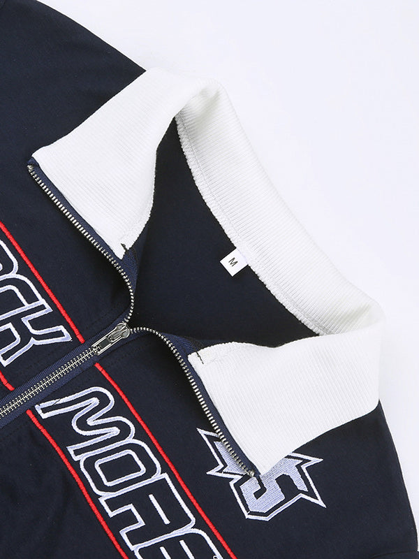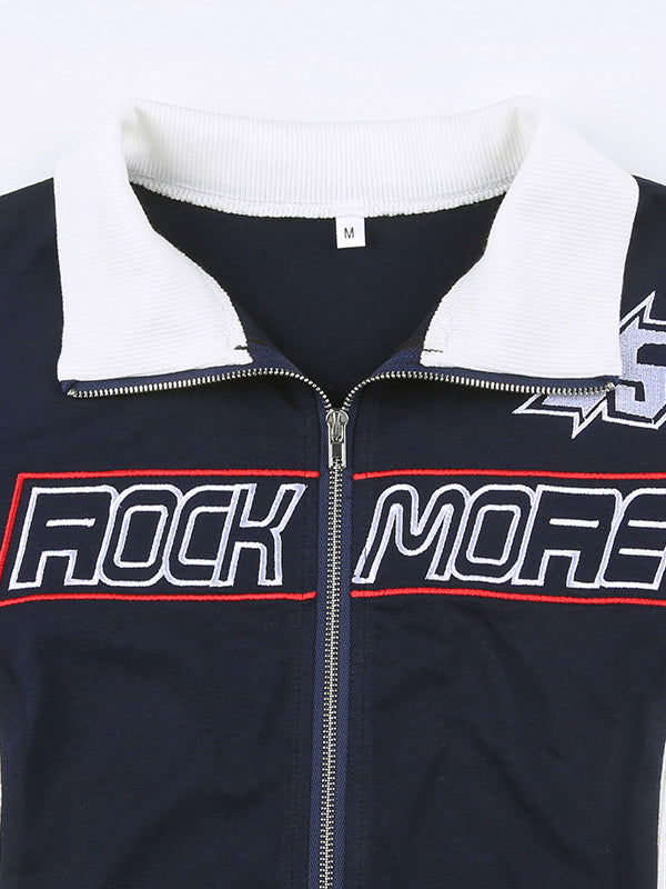 Long Sleeves Skinny Contrast Color Letter Print Split-Joint High Neck Jackets