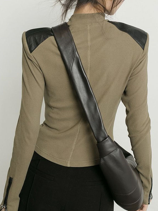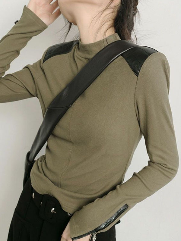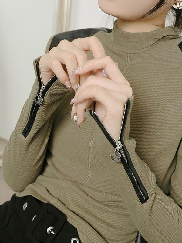 Long Sleeves Skinny Split-Joint Zipper High Neck T-Shirts