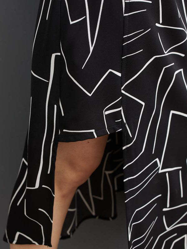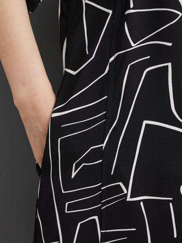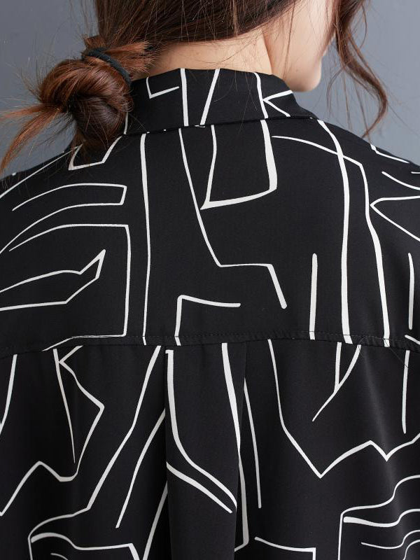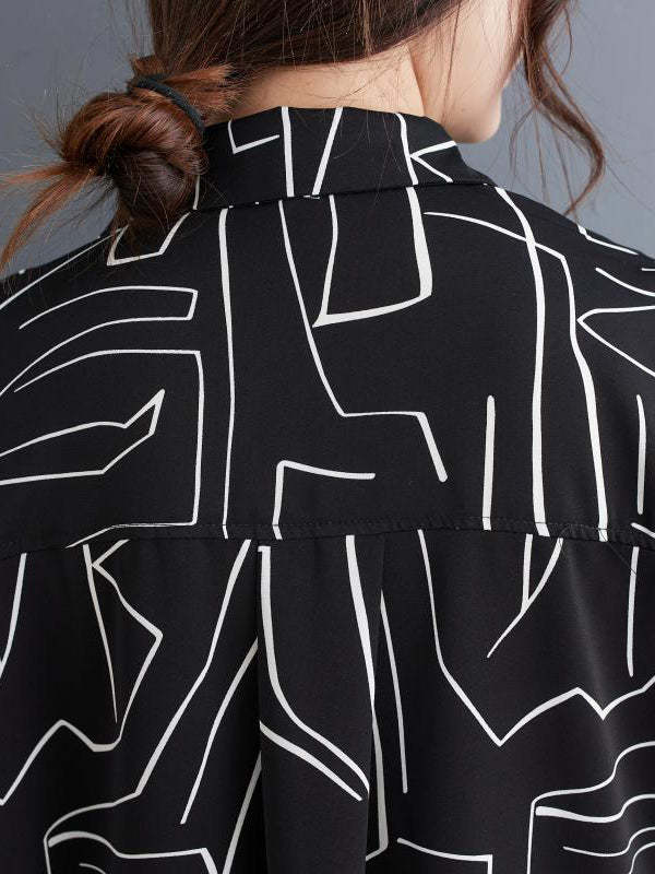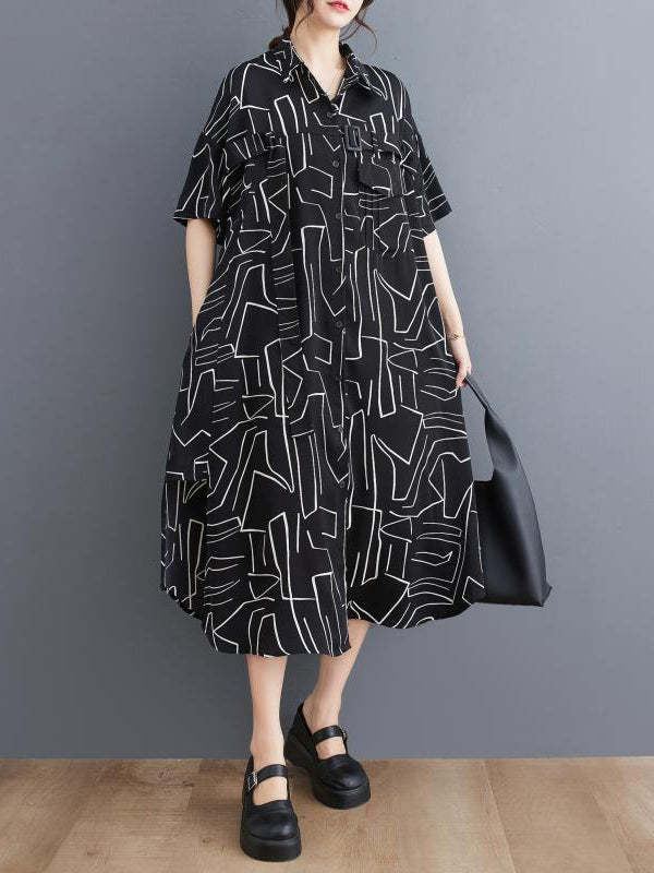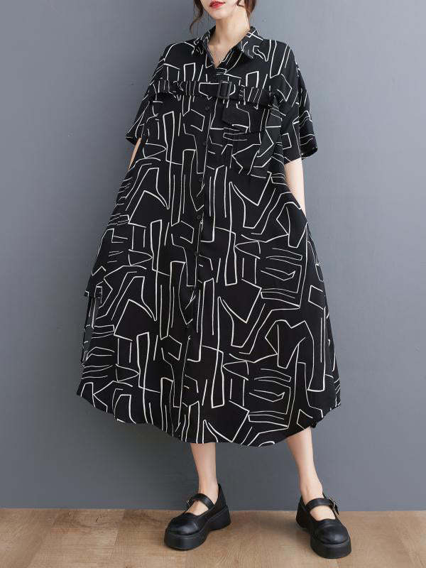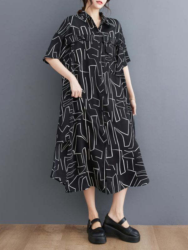 Loose Abstract Printed Lapel Midi Dresses