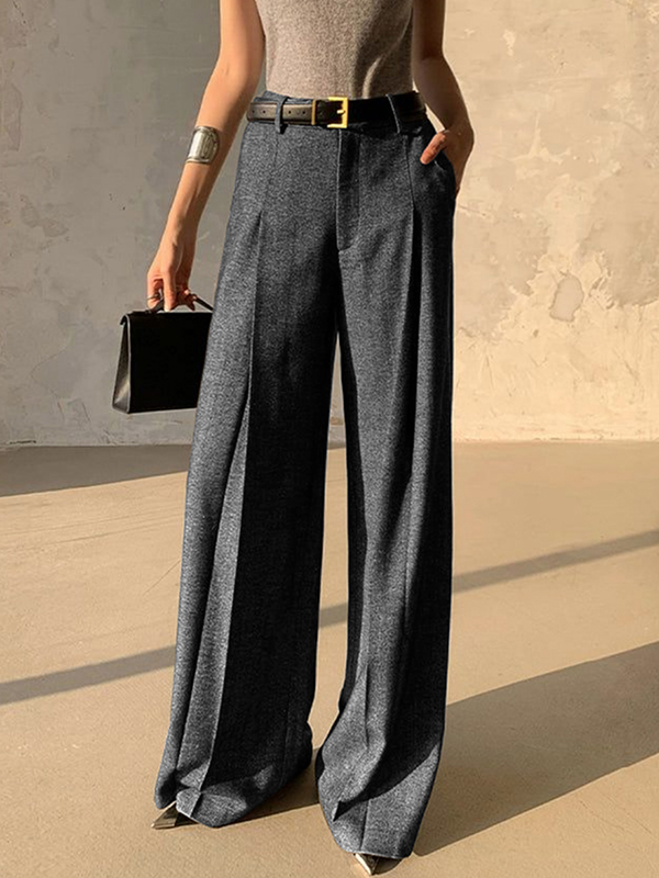 Loose Belted Solid Color Zipper Suit Pants Trousers