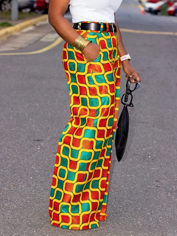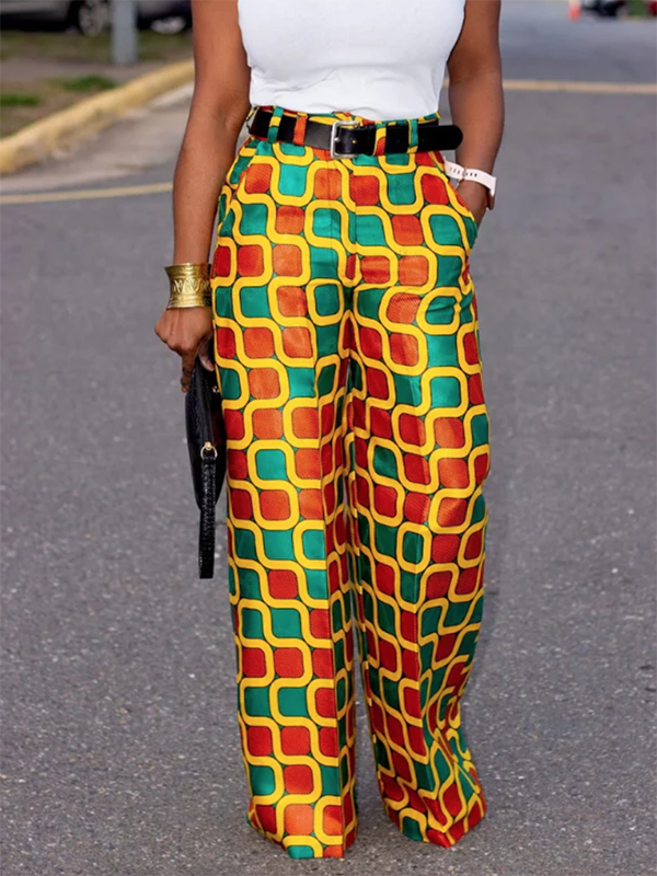 Loose Contrast Color Geometric Printed Casual Pants Bottoms