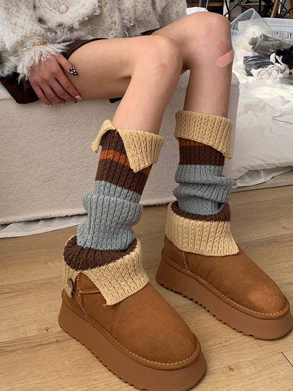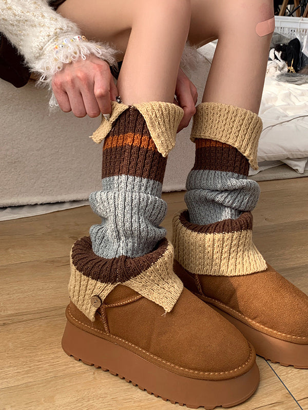 Loose Contrast Color Split-Joint Split-Side Leg Warmers Accessories