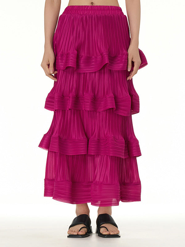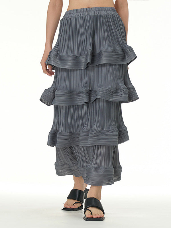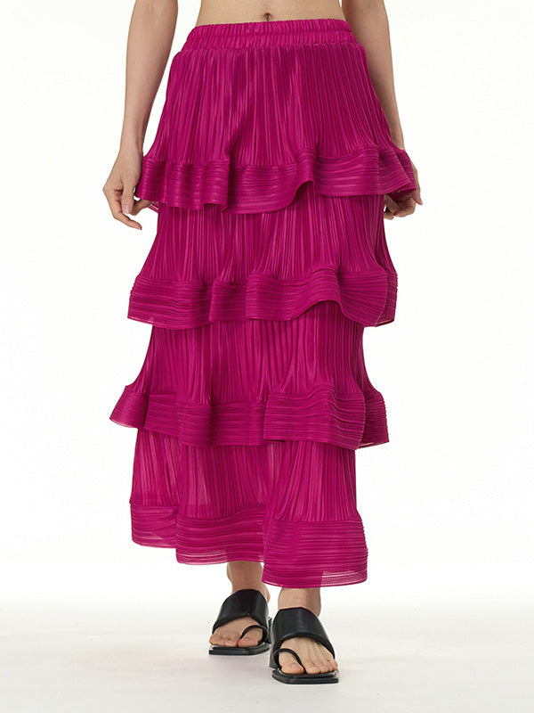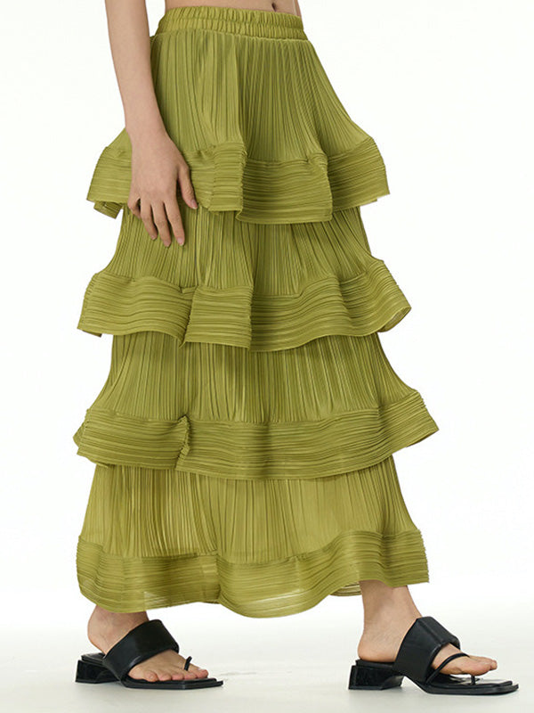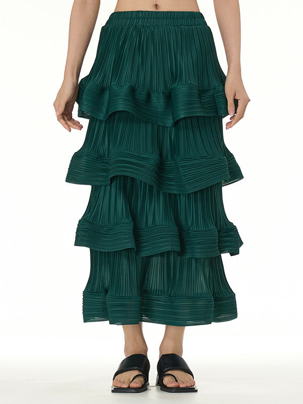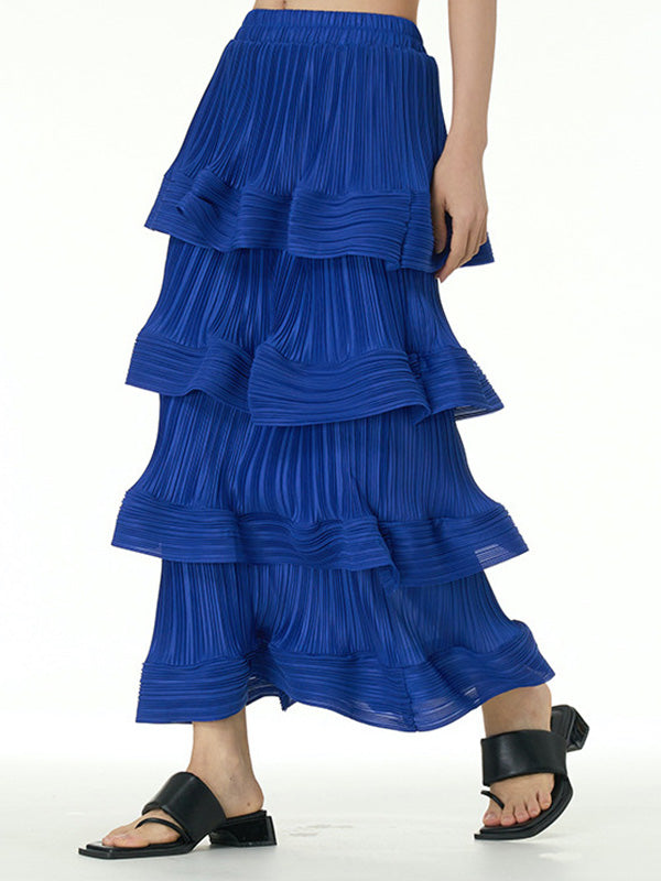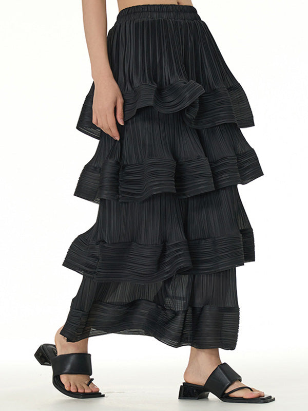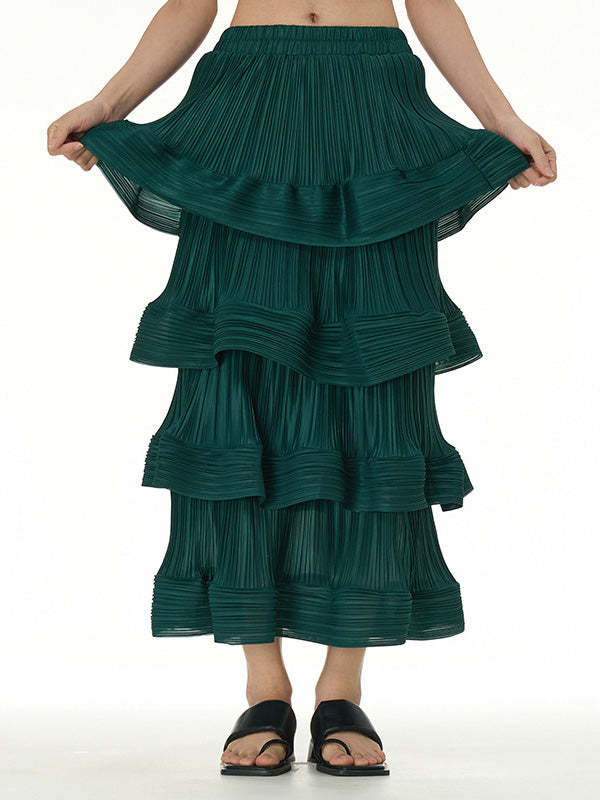 Loose Elasticity Layered Pleated Ruffled Solid Color Skirts Bottoms